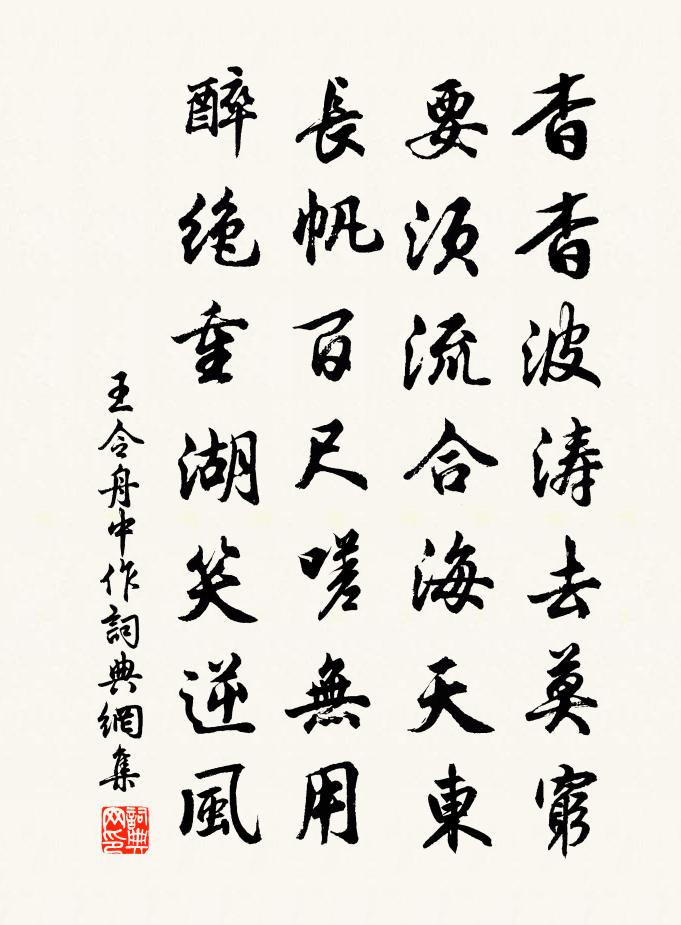 詩詞名句歷史字典書法欣賞書法字典國語詞典說文解字康熙字典古漢語字典標 題 作 者 詩 句 舟中作作者:王令 朝代:宋代舟中作原文杳杳波濤去莫窮,要須流合海天東。長帆百尺嗟無用,醉絕重湖笑逆風。詩詞問答問:舟中作的作者是誰?答:王令問:舟中作寫於哪個朝代?答:宋代王令舟中作書法欣賞舟中作書法作品詩詞推薦蕭宅二三子贈答詩二十首竹請客盧仝〔唐代〕我本泰山阿,避地到南國。主人慾移家,我亦要歸北。上客幸先歸,願托歸飛翼。唯將翛翛風,累路報恩德。偈頌一百一十七首釋紹曇〔宋代〕遠望蓬萊去學仙,途中忽遇李先生。還丹一粒吞還吐,回首空山獨自行。滿江紅(和盧國華)辛棄疾〔宋代〕漢節東南,看駟馬、光華周道。須信是、七閩還有,福星來到。庭草自生心意足,榕陰不動秋光好。問不知,何處南兵錢易〔宋代〕曾見南兵苦,征遼事亦如。金瘡寒長肉,紙甲雨生蛆。山小虀霜骨,河枯臛腐魚。黎元無處哭,丁戶日相疏。素梅 其四王冕〔元代〕歲寒風致少能解,野草安能識此情?春到玉堂渾不覺,清香疏影自分明。晚春二首宋伯仁〔宋代〕綠陰陰裹惜韶華,自縛筠梢掃落花。可笑遊人心未懶,杜鵑啼處撥琵琶。彭城縣太君輓辭二首蘇頌〔宋代〕壽考人間福,賢明閫內宗。銘傳史官筆,墓繞故鄉松。雙劍歸還合,南陔養莫容。登堂曾拜客,悽愴望新封。孔明二首陳造〔宋代〕古今深忌仇為兵,及霤師臣要力爭。白帝敗歸思孝直,端知難抗魏元成。次韻權季玉枕上偶成方回〔宋代〕邇日屢聞親藥鼎,客懷沈鬱與誰論。細參素問心無病,勤剔青燈眼未昏。九折政思為孝子,七襄未用乞天孫。察君句楊昕〔宋代〕二八玉泉分派泠,三千銀界出塵清。項王胡宏〔宋代〕快戰馬知霸術疏,烏江亭上獨欷噓。萬人三尺俱無用,可惜當年不讀書。秋宵辭白玉蟾〔宋代〕長天滑如紙,皓月寒如水。今人成古人,人生復能幾。顧此清涼夜,此情不自已。聊以寫懷抱,黯黯泣神鬼。所泣浣溪沙 春情蘇軾〔宋代〕道字嬌訛苦未成。未應春閣夢多情。朝來何事綠鬟傾。彩索身輕長趁燕,紅窗睡重不聞鶯。困人天氣近清明。過垂雲亭李新〔宋代〕西風吹秋落山谷,霜紅換盡煙邊綠。垂雲門冷一事無,只有庭松與籬菊。白日蘭堂一局棋,百年閒事無遊絲。山僧答趙尉陳宓〔宋代〕親友鄉閭恨少逢,多因遊宦得從容。他年儻過鳴珂里,只恐飛翰不許從。效孟郊體謝翱〔宋代〕落葉昔日雨,地上僅可數。今雨落葉處,可數還在樹。不愁繞樹飛,愁有空枝垂。天涯風雨心,雜佩光陸離。感此句宋太宗〔宋代〕時向玉堂尋舊跡,八花磚上日空長。賦玉岩趙希融〔宋代〕君不見陶令門前栽五柳,聊為折腰辭五斗。歸來三徑足歡娛,琴書得趣人誰有。又不見和靖卜築臨西湖,湖山勝景賦梅三篇曾豐〔宋代〕作意偷春破隊行,橫翔捷出不容爭。窗前納月神光白,水上乘風縠漏輕。違物行歸廉士潔,傲時身中聖人清。賞音陪程元詔文彧李久善游漢州天寧元詔有詩見遺郭印〔宋代〕四海豈無兄弟親,氣合行須同父母。相逢坐語忽移時,不覺朝餐輒過午。品評人物妙雌黃,議論邦家人覼縷。危言名句推薦致治之本,惟在於審。量才授職,務省官員。吳兢《貞觀政要·卷三·論擇官》 青山一道同雲雨,明月何曾是兩鄉。王昌齡《送柴侍御》 故國山川,故園心眼,還似王粲登樓。周密《一萼紅·登蓬萊閣有感》 離恨做成春夜雨。添得春江,劃地東流去楊炎正《蝶戀花·別范南伯》 夔府孤城落日斜,每依北斗望京華。杜甫《秋興八首》 事莫貴乎有驗,言莫棄乎無徴。徐幹《中論·上卷·貴驗》 是是、非非謂之知,非是、是非謂之愚。荀子《荀子·修身》 謫仙何處,無人伴我白螺杯。黃庭堅《水調歌頭·遊覽》 筆落驚風雨,詩成泣鬼神杜甫《寄李十二白二十韻》 外游者,求備於物;內觀者,取足於身。列子及其弟子《列子·仲尼》
