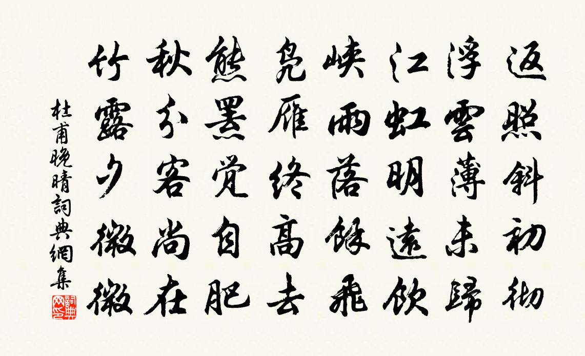 返照斜初徹,浮雲薄未歸。江虹明遠飲,峽雨落餘飛。