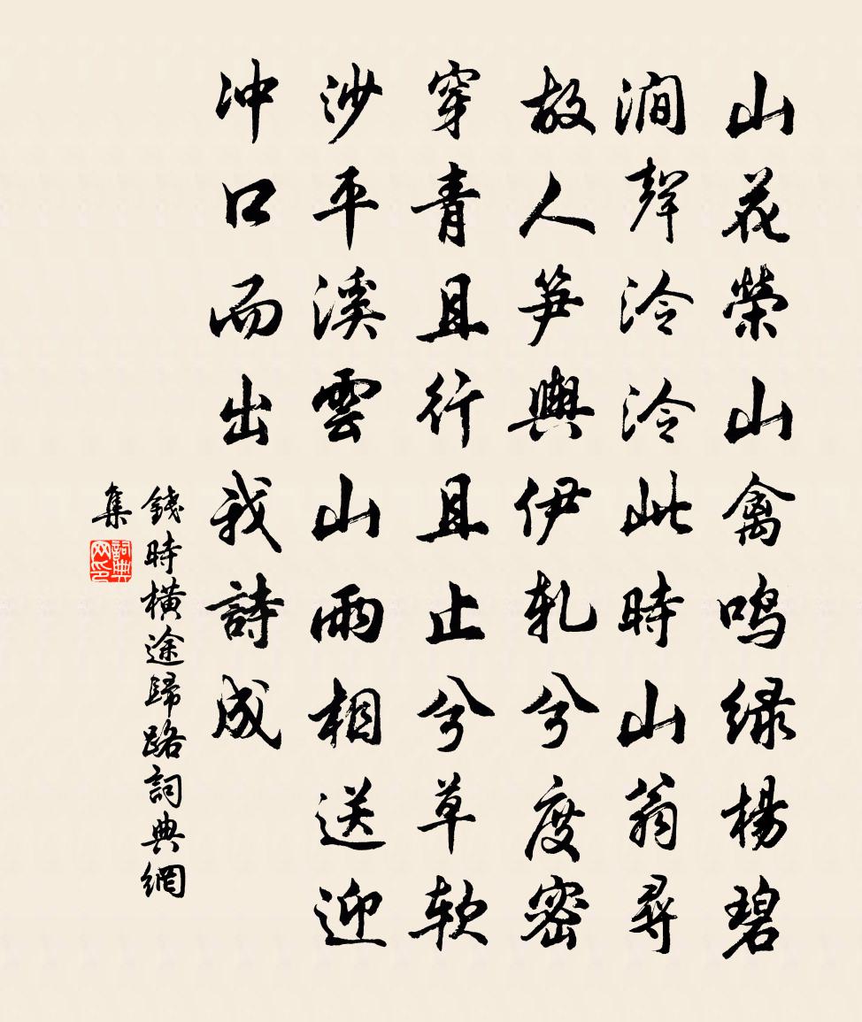 詩詞名句歷史字典書法欣賞書法字典國語詞典說文解字康熙字典古漢語字典標 題 作 者 詩 句 橫途歸路作者:錢時 朝代:宋代橫途歸路原文山花榮,山禽鳴,綠楊碧澗聲泠泠。此時山翁尋故人,筍輿伊軋兮度密穿青,且行且止兮草軟沙平。溪雲山雨相送迎,衝口而出我詩成。詩詞問答問:橫途歸路的作者是誰?答:錢時問:橫途歸路寫於哪個朝代?答:宋代錢時橫途歸路書法欣賞橫途歸路書法作品詩詞推薦舟中作陸游〔宋代〕不遷比景戍交河,三徑歸來得已多。應俗愈疏身老大,讀書漸廢意蹉跎。閒從孫叟蘇門嘯,醉和荊卿易水歌。歌罷觀校獵,上淮西相公劉長卿〔唐代〕龍驤校獵邵陵東,野火初燒楚澤空。師事黃公千戰後,身騎白馬萬人中。笳隨晚吹吟邊草,箭沒寒雲落塞鴻。三十十月三日相公花下小飲賦四題九月二十八日梅堯臣〔宋代〕香包已向青春發,又見秋深特地開。應笑菊殘無意思,不能邀賦洛陽才。人日城南登高韓愈〔唐代〕初正候才兆,涉七氣已弄。靄靄野浮陽,暉暉水披凍。聖朝身不廢,佳節古所用。親交既許來,子妷亦可從。盤蔬次韻和仲鹹送池秀才西遊王禹偁〔宋代〕夏課詩成又旅遊,離離秦樹葉驚秋。青霄路在何難到,白雪才高豈易酬。幾處讀碑尋野逕,共誰沽酒上高樓。商於楚山春曉古汴高士〔宋代〕霧散雲收宿雨乾,秦桃落盡曉風寒。晴山四望天開畫,啼鳥一聲人倚欄。送丁明府赴紫溪(一作唐山)任羅隱〔唐代〕金徽玉軫肯躇躕,偶滯良途半月余。樓上酒闌梅拆後,馬前山好雪晴初。欒公社在憐鄉樹,潘令花繁賀版輿。縣譜去歲得黟江縣牡丹數種今年開一枝蓋白者譜中韓元吉〔宋代〕黟江新樣水晶毬,冰雪肌香體更柔。彈壓風光知第一,酴醾玉蕊見應羞。采香徑楊備〔宋代〕館娃南面即香山,畫舸爭浮日往還。翠蓋風翻紅袖影,芙蓉一路照波間。南歸顧況〔唐代〕老病力難任,猶多鏡雪侵。鱸魚消宦況,鷗鳥識歸心。急雨江帆重,殘更驛樹深。鄉關殊可望,漸漸入吳音。玲瓏四犯·越中歲暮聞簫鼓感懷姜夔〔宋代〕疊鼓夜寒,垂燈春淺,匆匆時事如許。倦遊歡意少,俯仰悲今古。江淹又吟恨賦。記當時、送君南浦。萬里乾坤,初夏山居有懷長沙從游四首趙蕃〔宋代〕想見湘西路,扶疏夏木長。佛龕鐘磬寂,書屋簡編香。破霧穿晨屨,衝風喚晚航。向居嫌是客,今夢卻同鄉。東關張祁〔宋代〕山扼平湖蓄不東,地分南北指撝中。二關形勢千年壯,三國英雄一笑空。枯魚過河泣釋文珦〔宋代〕為魚當深潛,深潛身可肥。勿以風濤便,踴躍圖奮飛。風濤或遽止,處陸胡能歸。汝骸既已臘,泣河計還非。生榮奉和虢州劉給事使君三堂新題二十一詠竹溪韓愈〔唐代〕藹藹溪流慢,梢梢岸筱長。穿沙碧竿淨,落水紫苞香。和靜照詩韻釋普濟〔宋代〕各逞神通現瑞茶,非雲非雪亦非霞。夢中說夢非見見,報導從來眼不花。依韻和子充雜言晁補之〔宋代〕君不見東方朔,避世金馬門,侏儒倡郭同陸沉。滑稽突梯意已深,不如孫登閉口逃蘇門。身猶孤鳳無與鄰,心知嵇洞仙歌(木犀)趙長卿〔宋代〕芰荷已老,菊與芙蓉未。一夜秋容上岩桂。間蘩蕪、嫩黃染就瓊瑰,開未足,已早香傳十里。從前分付處,明月清偈頌七十一首釋了惠〔宋代〕今朝九月九,淵明開醉口。指點東籬菊,大罵西門柳。諸人聽得,只麽飲氣吞聲。山僧聞之,不免袖中出手。朝陽岩張浚〔宋代〕已覺雲天闊,風聲四面涼。路幽遲晚日,岩古浥流香。客舍長年靜,漁舟底事忙。相逢賢太守,不用管弦將。名句推薦粉色全無飢色加,豈知人世有榮華。杜荀鶴《蠶婦》 一葉浮萍歸大海,為人何處不相逢!吳承恩《西遊記·第四十回》 天時、地利、人和,三者不得,雖勝有殃。孫臏《孫臏兵法·月戰》 亂碧萋萋,雨後江天曉。梅堯臣《蘇幕遮·草》 林斷山明竹隱牆。亂蟬衰草小池塘。蘇軾《鷓鴣天·林斷山明竹隱牆》 見賢思齊焉,見不賢而內自省也。孔子弟子《論語·里仁篇》 銅華滄海,愁霾重嶂,燕北雁南天外。吳文英《永遇樂·乙巳中秋風雨》 悲歌可以當泣,遠望可以當歸。佚名《悲歌》 天朗氣清,惠風和暢王羲之《蘭亭集序 / 蘭亭序》 越人語天姥,雲霞明滅或可睹。李白《夢遊天姥吟留別 / 別東魯諸公》
