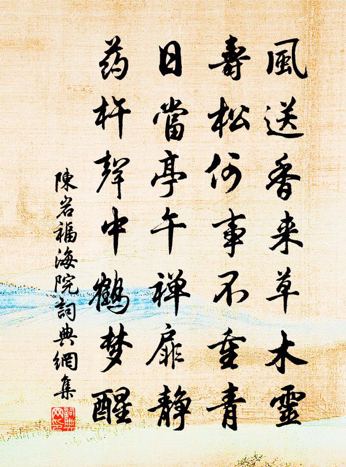 詩詞名句歷史字典書法欣賞書法字典國語詞典說文解字康熙字典古漢語字典標 題 作 者 詩 句 福海院作者:陳岩 朝代:宋代福海院原文風送香來草木靈,壽松何事不重青。日當亭午禪扉靜,藥杵聲中鶴夢醒。詩詞問答問:福海院的作者是誰?答:陳岩問:福海院寫於哪個朝代?答:宋代陳岩福海院書法欣賞福海院書法作品詩詞推薦滿庭芳 贈寧海顏先生馬鈺〔元代〕降心一著,有些法度。要你自心省悟。閒想骷髏模樣,緣甚作做。因貪氣財酒色,損精神、墮於惡趣。如恐怖,管同崔員外秋宵寓直王維〔唐代〕建禮高秋夜,承明候曉過。九門寒漏徹,萬井曙鍾多。月迥藏珠斗,雲消出絳河。更慚衰朽質,南陌共鳴珂。長安即事李頻〔唐代〕長遇豪家不敢過,此身誰與取高科。故園久絕書來後,南國空看雁去多。中夜永懷聽疊漏,先秋歸夢涉層波。愁人晚興陳師道〔宋代〕去國猶能別,逢人始欲愁。不乾遮極目,自是怯回頭。布網收漁槮,連筒下釣鉤。誰初教鮮食,澤竭未能休。大夫松王奕〔宋代〕立身地位本清寒,下界虛明孰敢幹。驚駕不因風雨惡,到頭猶守舊蒼官。金國賀正旦使人到闕宸殿宴致語口號真德秀〔宋代〕六龍扶輦下雲間,紫殿風微響佩環。朔漠遠馳鄰國信,前星親押外朝班。九賓重譯瞻宸極,萬歲三聲繞壽山。大史網戶嘆趙文〔宋代〕江南西風粳稻熟,網夫出門網婦哭。天晴黃雀飛苦高,縣吏椎門怒震屋。哨聲飛空健鶻過,遲速小誤成嗟跎,君庖出峽二首楊萬里〔宋代〕朝來入峽悶船遲,也有欣然出峽時。山色亦如人送客,送行倦了自應歸。海月岩戴應魁〔宋代〕誰把巉岩巧鑿開,分明幻出小蓬萊。風迎蜃氣樓台起,浪涌蟾光宮闕來。海闊魚龍自吞里。雲深鸞鶴共徘徊。禪師答景毫宣徽吳尚書見寄短偈宋祁〔宋代〕玉帳論兵罷,東方靜守藩。有塵都是客,無法可容言。海鳥逢觴怯,醯雞戀甕喧。因公四句惠,彌覺對酬煩。哭文溪趙文〔宋代〕滿襟和氣任天真,豈意俄成千載人。篤厚西都諸老傳,宦遊南海宰官身。竹君所倖存中子,荀氏何妨有二仁。早及題長春亭韓元吉〔宋代〕一徑清深不起塵,芳菲紅紫意隨人。應知地勝無非景,但有花開即是春。萱草自隨蘭葉茂,棠花還與桂枝新。彩衣送劉主簿歸金壇李頎〔唐代〕與子十年舊,其如離別何。宦遊鄰故國,歸夢是滄波。京口青山遠,金陵芳草多。雲帆曉容裔,江日晝清和。縣郭太滌洞留題黃敏德〔宋代〕九鎖山深斷世蹤,雲霞堆里著瑤宮。千年地勝身才到,一柱峰高路忽通。據石漱泉消俗念,捫蘿扣洞挹仙風。直疑次韻解樞乾二首陳造〔宋代〕我方首儒冠,頗亦易此人。尚友卑自漢,讀書考先秦。士或暗鄭朴,識面蘄卜鄰。計疎志空勤,敝帚浪自珍。口前和易岩雪王柏〔宋代〕豐年嘉瑞有根原,碎翦銀河倒底懸。古有諸侯延辨孟,今無令尹訪飢袁。狺狺吠犬思騷楚,茂茂貞松記漆園。險韻蔡君謨示古大弩牙梅堯臣〔宋代〕黃銅弩牙金錯花,銀闌線齒如排沙。上立準度可省括,箭溝三道前直窊。其度四寸寸五刻,鋈光歷歷無纖差。蔡侯臥病白玉蟾〔宋代〕故故抽身入翠微,頭昏背痛便相隨。只今得病緣身有,待我無身更病誰。天際寒雲糊遠岫,松梢歸鶴客枯枝。青燈富貴不能淫孟子及其弟子〔先秦〕 景春曰:“公孫衍、張儀豈不誠大丈夫哉?一怒而諸侯懼,安居而天下熄。” 孟子曰:“是焉得為大丈夫感梅屬周文顯二首趙蕃〔宋代〕嚴冬今日更天風,我與梅花瘦骨同。我縱寒生猶附火,爾能孤立亂山中。名句推薦燎沉香,消溽暑。周邦彥《蘇幕遮·燎沉香》 巧偽不如拙誠顏之推《顏氏家訓·名實篇》 掃眉才子知多少,管領春風總不如。王建《寄蜀中薛濤校書》 蚤是傷春夢雨天,可堪芳草更芊芊。韋莊《長安清明》 天仙碧玉瓊瑤,點點揚花,片片鵝毛。薛昂夫《蟾宮曲·雪》 木落雁南度,北風江上寒。孟浩然《早寒江上有懷 / 早寒有懷 / 江上思歸》 二十四橋,頗有杜書記否。劉辰翁《桂枝香· * 人去》 早梅發高樹,迥映楚天碧。柳宗元《早梅》 天門中斷楚江開,碧水東流至此回。李白《望天門山》 聖人見微以知萌,見端以知末,故見象箸而怖,知天下之不足也。韓非及後人《韓非子·說林上》
