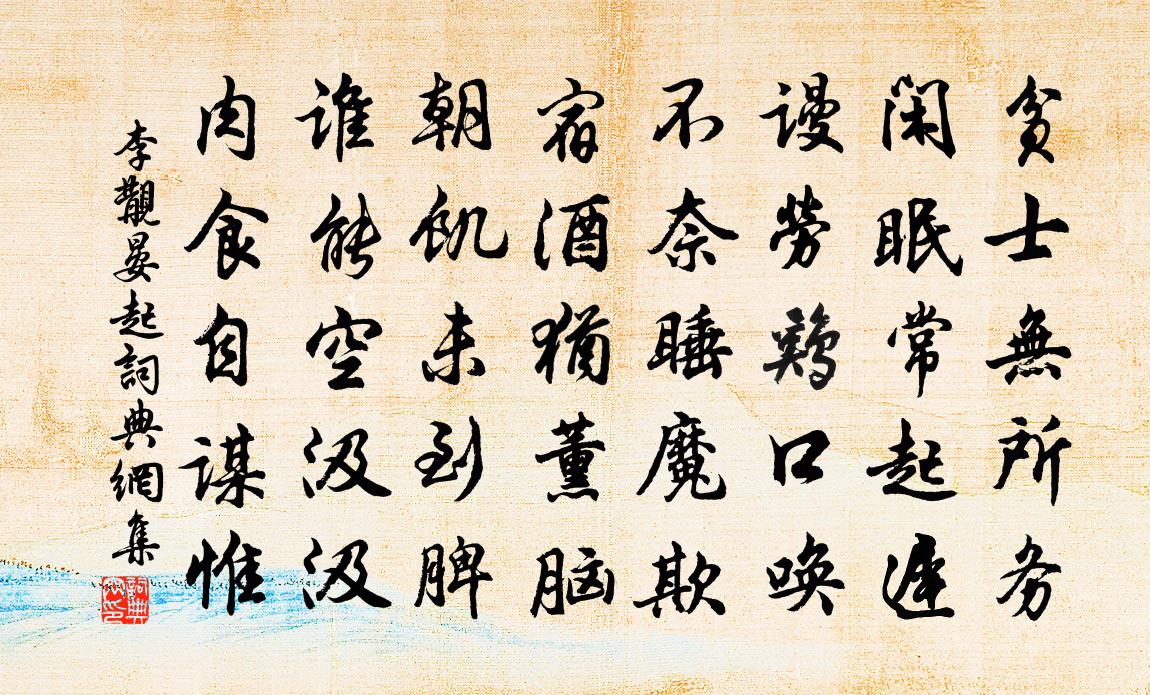 詩詞名句歷史字典書法欣賞書法字典國語詞典說文解字康熙字典古漢語字典標 題 作 者 詩 句 晏起作者:李覯 朝代:宋代晏起原文貧士無所務,閒眠常起遲。謾勞雞口喚,不奈睡魔欺。宿酒猶薰腦,朝飢未到脾。誰能空汲汲,肉食自謀惟。詩詞問答問:晏起的作者是誰?答:李覯問:晏起寫於哪個朝代?答:宋代李覯晏起書法欣賞晏起書法作品詩詞推薦過黃岩文天祥〔宋代〕魏睢變張祿,越蠡改陶朱。誰料文山氏,姓劉名是洙。魚石二首孔武仲〔宋代〕人疑魚托石,我謂石為魚。持以贈君子,端能辟蠹書。無情逐波浪,有此璠與璵。坐得江湖意,蕭然亦起予。和遠老四首吳芾〔宋代〕身居仕路夢家山,一日君恩放我還。從此便為終老計,只愁造物靳清閒。送喬判官赴福州劉長卿〔唐代〕揚帆向何處,插羽逐征東。夷落人煙迥,王程鳥路通。江流回澗底,山色聚閩中。君去凋殘後,應憐百越空。送柳道時余北還(一作送觀察李判官巡郴州)戴叔倫〔唐代〕征役各異路,煙波同旅愁。輕橈上桂水,大艑下揚州。何處成後會,今朝分舊遊。離心比楊柳,蕭颯不勝秋。元方翥〔宋代〕雨過前村湖水平,魚頭戢戢逐波生。隣家籃里收雞子,昨夜分明報五更。登玉京洞遇雨韓元吉〔宋代〕俗物只散意,市朝那復清。未能蓬島去,且上玉京行。古洞深無底,幽泉細有聲。山靈知我意,賸乞片時晴。頌古七首三聖逢人即出釋慧勤〔宋代〕城南措大騎驢子,市北郎君跨馬兒。各各四蹄俱著地,三春同到月明池。雜詠一百首李淳風劉克莊〔宋代〕逆知生女主,預說覆唐宗。誤殺五娘子,安知在後宮。賀兩府入東西府張掞〔宋代〕五仙同日集蓬萊,玉宇珠簾次第開。乍向壺中窺日月,猶疑海上見樓台。光生金鉉調元地,榮極璿樞命世才。共荷嘉禾百詠芙蓉塘張堯同〔宋代〕一發連千丈,紅雲出素波。秋負吹欲老,無奈落花何。憫雨曾幾〔宋代〕梅子黃初遍,秧針綠未抽。若無三日雨,那復一年秋。薄晚看天意,今宵破客愁。不眠聽竹樹,還有好音不。孝感堂李處權〔宋代〕孝為百行本,儒訓存六經。未有仁而遺,禮宜權重輕。哀嚴以事死,敬樂以事生。豈徒天性得,乃見人道成。顯顯次韻正仲秋晚感興舒岳祥〔宋代〕舉頭無路見長安,十月江南有朔寒。岩瀑飛來雲影濕,溪霜著處葉聲乾。相思一夜心先醉,欲話前冬鼻已酸。愛爾君用致紅梅雲不開數年矣方岳〔宋代〕山家已作枯槎看,帶雪移來卻自春。一夜揣摩花意思,寧將醉面向村人。偈頌一百二十三首釋崇岳〔宋代〕生平活計一絲頭,嘯月迎風得自由。管甚澄江興逆浪,等閒平步過滄洲。緱山月夜聞王子晉吹笙厲玄〔唐代〕緱山明月夜,岑寂隔塵氛。紫府參差曲,清宵次第聞。韻流多入洞,聲度半和雲。拂竹鸞驚侶,經松鶴對群。蟾光登丹陽北樓(一作張繼詩)郎士元〔唐代〕寒皋那可望,旅望又初還。迢遞高樓上,蕭條曠野閒。暮晴依遠水,秋興屬連山。浮客時相見,霜凋動翠顏。悲哉行王昌齡〔唐代〕勿聽白頭吟,人間易憂怨。若非滄浪子,安得從所願。北上太行山,臨風閱吹萬。長雲數千里,倏忽還膚寸。觀其朝中措(用八窗叔韻送教忠制機省親之行)李曾伯〔宋代〕燈棋三載客邊頭。江漢等萍浮。一片白雲關念,對床夜雨難留。堂堂事會,相期烝楫,供濟涇舟。今歲雁來應早,名句推薦萋萋春草秋綠,落落長松夏寒。王維《田園樂七首·其四》 正其末者端其本,善其後者慎其先。房玄齡《晉書·列傳·第二十五章》 社下燒錢鼓似雷,日斜扶得醉翁回。范成大《春日田園雜興》 算陰晴,渾似幾番,渭城故人離會。吳文英《永遇樂·乙巳中秋風雨》 羈旅長堪醉,相留畏曉鍾。戴叔倫《客夜與故人偶集 / 江鄉故人偶集客舍》 用兵之道,先勝後戰。陳壽《三國志·魏書·荀彧攸賈詡傳》 忍淚不能歌,試托哀弦語晏幾道《生查子·墜雨已辭雲》 東風有恨致玄都,吹破枝頭玉,夜月梨花也相妒。周文質《小桃紅·詠桃》 江涵秋影雁初飛,與客攜壺上翠微。杜牧《九日齊山登高》 春雨樓頭尺八簫,何時歸看浙江潮?蘇曼殊《本事詩十首·選二》