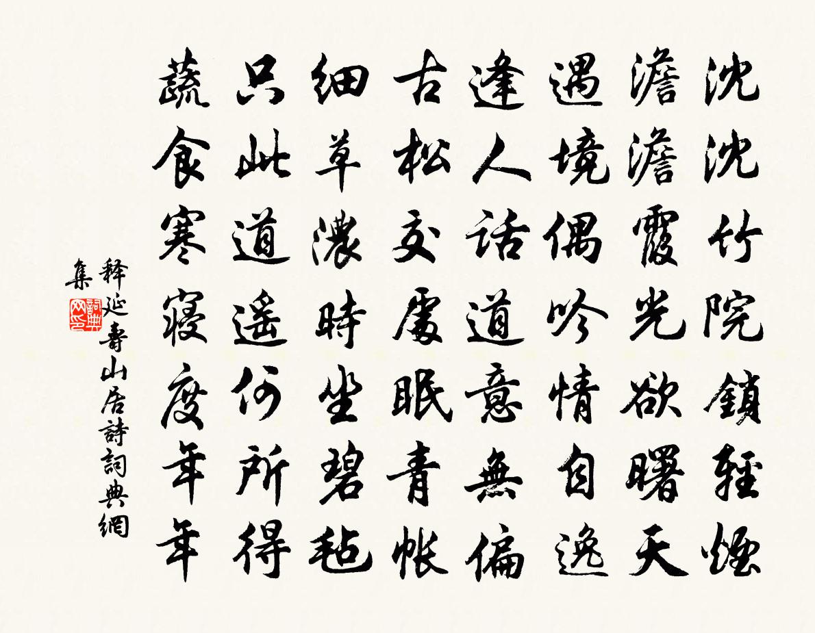 詩詞名句歷史字典書法欣賞書法字典國語詞典說文解字康熙字典古漢語字典標 題 作 者 詩 句 山居詩作者:釋延壽 朝代:宋代山居詩原文沈沈竹院鎖輕煙,澹澹霞光欲曙天。遇境偶吟情自逸,逢人話道意無偏。古松交處眠青帳,細草濃時坐碧氈。只此道遙何所得,蔬食寒寢度年年。詩詞問答問:山居詩的作者是誰?答:釋延壽問:山居詩寫於哪個朝代?答:宋代釋延壽山居詩書法欣賞山居詩書法作品詩詞推薦已涼韓偓〔唐代〕碧闌乾外繡簾垂,猩色屏風畫折枝。八尺龍鬚方錦褥,已涼天氣未寒時。念奴嬌陳三聘〔宋代〕水空高下,望沈沈一色,渾然蒼碧。天籟不鳴涼有露,金氣橫秋寂寂。玉宇瓊樓,望中何處,月到天中極。御風歸韓康公輓詞三首蘇軾〔宋代〕再世忠清德,三朝翊贊勛。功成不歸國,就訪敢忘君。舊學嚴詩律,餘威靖塞氛。何當繼韓奕,故吏總能文。穆天子傳唐彥謙〔唐代〕王母清歌玉琯悲,瑤台應有再來期。穆王不得重相見,恐為無端哭盛姬。緣識宋太宗〔宋代〕乾坤運轉是尋常,人有依違自短長。不覺貪生身外苦,如駒過隙百年光。送王宣慰中齋上溫州方回〔宋代〕夢草堂邊下榻時,隙駒四十五年馳。東嘉太守真知己,西里先生共賦詩。前輩風流元不遠,故家文獻未全衰。留耕木蘭花慢張樞〔宋代〕歌塵凝燕壘,又軟語、在雕梁。記剪燭調弦,翻香校譜,學品伊涼。屏山夢雲正暖,放東風、卷雨入巫陽。金冷紅孝靜帝善見徐鈞〔宋代〕奸臣擅國佐空臨,議禪從容尚付吟。在儉不思身未保,卻憐弊履與遺簪。子暢慰曹用贈沅陵韻作詩見示亦用韻奉酬趙蕃〔宋代〕元佑於今幾故家,要尋遺事渺難涯。虛名可愧鐵爐冒,實美當知丙穴嘉。柱後惠文余故窘,伍符尺籍子無嗟。神仙宮詞宋白〔宋代〕麝波蘭艷涌溫湯,白玉蓮花吐異香。春雪怕融偎侍女,尚衣新進蹙金裳。仁宗皇帝輓詞七首蔡襄〔宋代〕儉勤追禹績,恭讓體堯仁。措枉朝多直,除苛吏盡循。遵儒恩禮異,左戚賞刑均。立子知天意,超然即上賓。春寒黃庚〔宋代〕客思重重山色外,詩愁點點雨聲中。著人料峭東風急,牆角桃花未肯紅。四字令/醉太平張炎〔宋代〕鶯吟翠屏。簾吹絮雲。東風也怕花瞋。帶飛花趕春。鄰娃笑迎。嬉遊趁晴。明朝何處相尋。那人家柳陰。西山蘭若試茶歌劉禹錫〔唐代〕山僧後檐茶數叢,春來映竹抽新茸。宛然為客振衣起,自傍芳叢摘鷹觜。斯須炒成滿室香,便酌砌下金沙水。驟雨題蜀州修覺寺宋祁〔宋代〕蜀嶂紛重沓,祇園隱寂寥。花供法界雨,江助梵音朝。海水聞鐘下,天風引磬遙。少陵佳句後,物色付吾僚。六州歌頭(屬得疾,暴甚,醫者莫曉其狀。小愈,困臥無聊,戲作以自釋)辛棄疾〔宋代〕晨來問疾,有鶴止庭隅。吾語汝。只三事,太愁予。病難扶。手種青松樹。礙梅塢。妨花逕,才數尺。如人立。卻再次前韻王安石〔宋代〕秋燈一點映籠紗,好讀楞嚴莫念家。能了諸緣如夢事,世間唯有妙蓮花。登雄州南門偶書呈知府張皇城陳襄〔宋代〕城如銀瓮萬兵環,悵望孤城野蓼間。池面綠陰通易水,樓頭青靄見狼山。漁舟掩映江南浦,使驛差池古北關。雅愛覺圓居士釋祖欽〔宋代〕妙覺圓明,離諸聞見。才涉安排,雲遮日面。若言即此是山僧,三尺竹篦如制電,好好看方便。王誠之分惠臥龍新茶數語為謝虞儔〔宋代〕臥龍驤首奮輕雷,一一槍旗次第開。遽浼春風歸七碗,寧容卯酒困三杯。森嚴莫訝先嘗苦,雋永方知後味回。不羨名句推薦君子崇人之德,揚人之美,非諂諛也;正義直指,舉人之過,非毀疵也。荀子《荀子·不苟》 老來多健忘,唯不忘相思。白居易《偶作寄朗之》 公生明,偏生暗荀子《荀子·不苟》 載酒買花年少事,渾不似,舊心情。盧祖皋《江城子·畫樓簾暮卷新晴》 長恨此身非我有,何時忘卻營營。蘇軾《臨江仙·夜飲東坡醒復醉》 驛路侵斜月,溪橋度曉霜。呂本中《南歌子·驛路侵斜月》 秋陰時晴漸向暝,變一庭淒冷周邦彥《關河令·秋陰時晴漸向暝》 移風易俗,莫善於樂。孔子及其弟子《孝經·廣要道》 水墨畫疏窗,孤影淡瀟湘。納蘭性德《木蘭花慢·立秋夜雨送梁汾南行》 兩岸月橋花半吐。紅透肌香,暗把遊人誤。真德秀《蝶戀花·兩岸月橋花半吐》