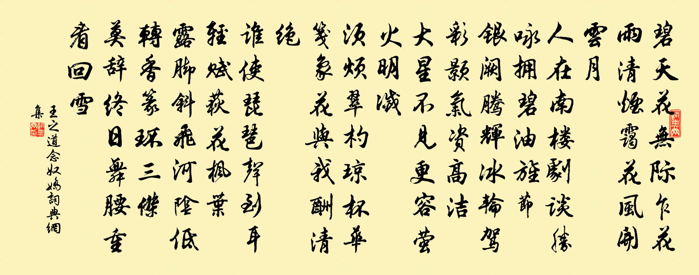 - 長安故人別後,料征鴻聲里,畫闌憑偏。王月山《齊天樂·夜來疏雨鳴金井》