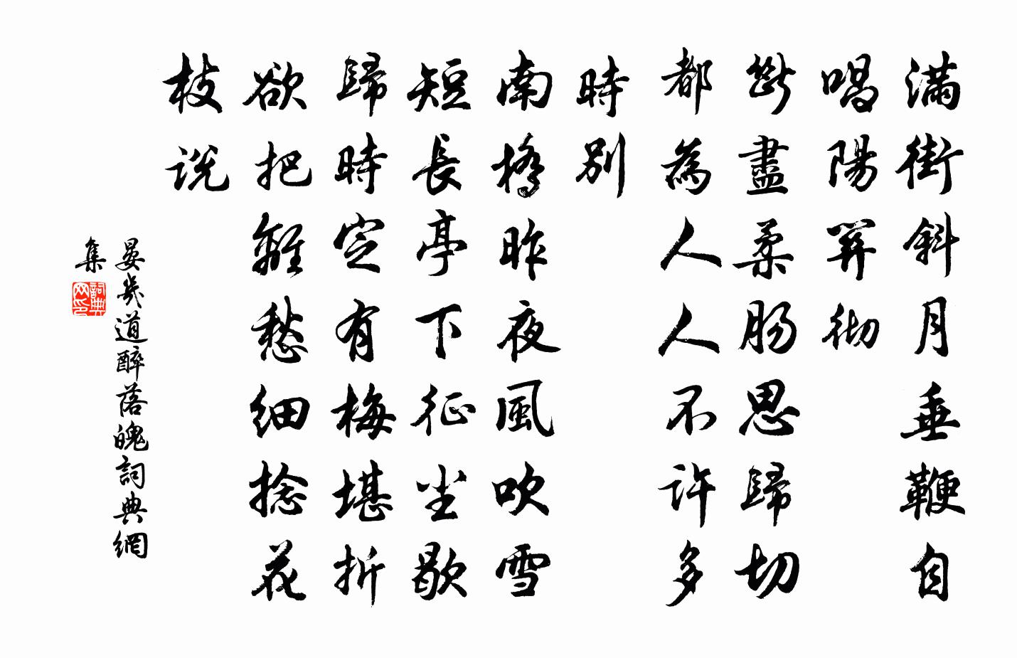 滿街斜月,垂鞭自唱陽關徹。斷盡柔腸思歸切,都為人人,不許多時別。