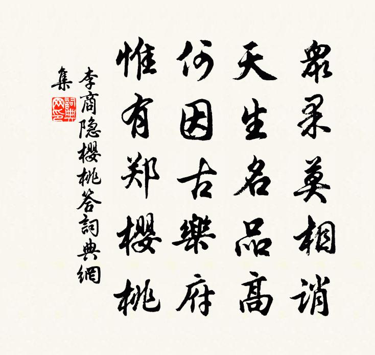 眾果莫相誚,天生名品高。何因古樂府,惟有鄭櫻桃。