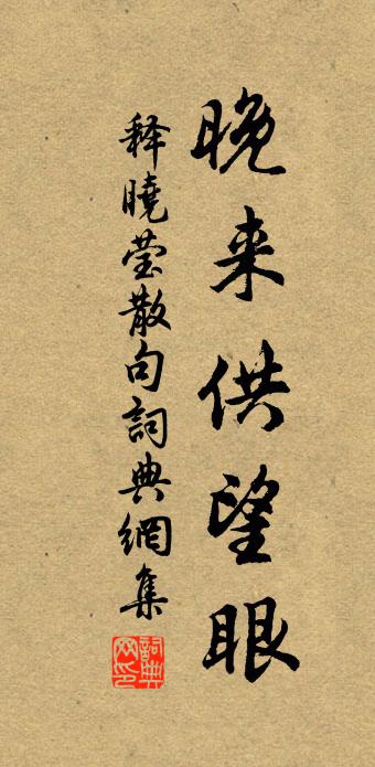 詩詞名句歷史字典書法欣賞書法字典國語詞典說文解字康熙字典古漢語字典標 題 作 者 詩 句 句作者:釋曉瑩 朝代:宋代句原文晚來供望眼。詩詞問答問:句的作者是誰?答:釋曉瑩問:句寫於哪個朝代?答:宋代釋曉瑩句書法欣賞句書法作品詩詞推薦離京後作七首張耒〔宋代〕灌畦沽酒兩三家,春去芳叢有晚花。莫道長安在天上,女牛猶有客乘槎。游趙提乾園董嗣杲〔宋代〕有亭可洗心,亟 * 呼命。蠹葉下井枯,空江鼓風勁。幸藉賢主人,尋勝愁盡屏。平生性不污,惟喜眼界淨。笑睨偈頌一百五十首釋心月〔宋代〕與麽也在我,不與麽也在我。明眼漢擔拄杖繞天下橫行,為什麼透這些子不得。謁金門(春晚)吳禮之〔宋代〕風乍扇。簾外落紅千片。飛盡落花春不管。斗忙鶯與燕。往事上心撩亂。睡起日高猶倦。料得伊家情眷眷。近來長縣齋讀書(在陽山作)韓愈〔唐代〕出宰山水縣,讀書松桂林。蕭條捐末事,邂逅得初心。哀狖醒俗耳,清泉潔塵襟。詩成有共賦,酒熟無孤斟。青竹採桑子晏幾道〔宋代〕前歡幾處笙歌地,長負登臨。月幌風襟,猶憶西樓著意深。鶯花見盡當時事,應笑如今。一寸愁心,日日寒蟬夜夜減字木蘭花黃庭堅〔宋代〕中秋多雨。常是尊罍狼藉去。今夜雲開。須道姮娥得得來。不知雲外。還有清光同此會。笛在層樓。聲徹摩圍頂上曹村觀落日張鎡〔宋代〕日欲西時暮靄凝,何嘗落向遠山層。分明萬丈青羅幕,遮卻銷金罩里燈。偈頌一百零二首釋慧遠〔宋代〕五四三二一,日向東畔出。照見洞庭湖,烏龜眼睛赤。天無門,地無壁。一陣任風射回,吹起兩須無孔笛。次韻答陳殿丞李覯〔宋代〕不能隨薄俗,非是向深山。自喜道無屈,所嗟心未閒。酒鄉貧更入,詩債病猶還。一字成虛美,通宵只厚顏。哭胡處士曹松〔唐代〕丘中久不起,將謂詔書來。及見凌雲說,方知掩夜台。白衣歸北路,玄造亦遺才。世上亡君後,詩聲更大哉。登多景樓口占立成衛宗武〔宋代〕新霽登多景,斯游亦快哉。雙尖浮殿塔,千堞里樓台。瀲灩琉璃合,微茫圖畫開。江山仍似舊,投紱慨重來。上留田貫休〔唐代〕父不父,兄不兄。上留田,蝥賊生。徒陟岡,淚崢嶸。我欲使諸凡鳥雀,盡變為鶺鴒。我欲使諸凡草木,盡變為田宿平江寺汪儀鳳〔宋代〕行盡江東又復西,連天汀草淡煙迷。回頭悵望家何處,雲外青山一抹低。席上別諸公晁說之〔宋代〕西城別袂望東城,勇發徵車卻怯行。朋肯聲前金闕恨,胡盧歌里玉關情。鶯啼有意因風斷,山影無垠為月橫。人世喜晴晚歸宋庠〔宋代〕八月高空卷斷霓,落霞殘照掖門西。仙城氣暖猶藏霧,輦路塵清不雜泥。殿里風回聞禁漏,闕邊雲斂見丹梯。迎寒留侯論蘇軾〔宋代〕古之所謂豪傑之士者,必有過人之節。人情有所不能忍者,匹夫見辱,拔劍而起,挺身而斗,此不足為勇也。天下小亭夜坐即景趙必常〔宋代〕小亭夜坐滌炎蒸,頓覺風清趣已成。數點流螢亭外度,兒童戲逐月邊星。歲日作劉長卿〔唐代〕建寅回北斗,看歷占春風。律變滄江外,年加白髮中。春衣試稚子,壽酒勸衰翁。今日陽和發,榮枯豈不同。清平樂(鄭長卿資政惠以龍焙絕品。余方釀薌林春色恨不得持去戲有此贈)向子諲〔宋代〕薌林春色。杯麵雲腴白。醉里不知天地窄。真是人間歡伯。風流玉友爭妍。酪奴可與忘年。空誦少陵佳句,飲中誰名句推薦金玉其外,敗絮其中劉基《賣柑者言》 攜籮驅出敢偷閒,雪脛冰須慣忍寒。范成大《雪中聞牆外鬻魚菜者求售之聲甚苦有感》 以近知遠,以一知萬,以微知明。荀子《荀子·非相》 清談可以飽,夢想接無由。韓愈《洞庭湖阻風贈張十一署·時自陽山徙掾江陵》 勞而不伐,有功而不德,厚之至也。佚名《易傳·繫辭傳上·第八章》 安危在出令,存亡在所任。司馬遷《史記·楚元王世家》 雙燕飛來,陌上相逢否?撩亂春愁如柳絮。馮延巳《鵲踏枝·幾日行云何處去》 縱被無情棄,不能羞。韋莊《思帝鄉·春日游》 芳洲拾翠暮忘歸,秀野踏青來不定。張先《木蘭花·乙卯吳興寒食》 千里澄江似練,翠峰如簇。王安石《桂枝香·登臨送目》