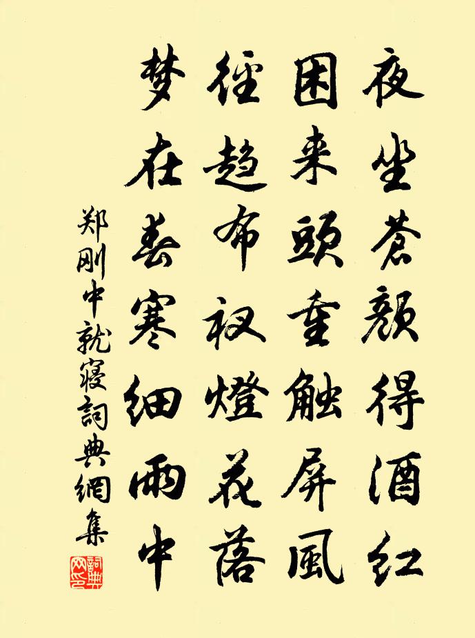 詩詞名句歷史字典書法欣賞書法字典國語詞典說文解字康熙字典古漢語字典標 題 作 者 詩 句 就寢作者:鄭剛中 朝代:宋代就寢原文夜坐蒼顏得酒紅,困來頭重觸屏風。徑趨布衩燈花落,夢在春寒細雨中。詩詞問答問:就寢的作者是誰?答:鄭剛中問:就寢寫於哪個朝代?答:宋代鄭剛中就寢書法欣賞就寢書法作品詩詞推薦山水圖唐寅〔明代〕淡霧滃山腰,清風集樹梢。聽泉人習靜,佇立面平橋。自儆陸游〔宋代〕牛解謹 * ,羊亡密補牢。達人憂祿厚,奇禍出名高。所要懷全璧,寧當恥縕袍?世間俱癬疥,何事苦爬搔?浣溪沙 方城仙翁山北水莊成,而良佐以事系元好問〔金代〕百折清泉繞舍鳴。隔年楊柳綠陰成。藕花多處一舟輕。行處自由皆樂事,得來無用是虛名。等閒榮辱不須驚。詔取永豐柳植禁苑感賦白居易〔唐代〕一樹衰殘委泥土,雙枝榮耀植天庭。定知玄象今春後,柳宿光中添兩星。江城子(和呂丞送進士赴省)張綱〔宋代〕寶津樓下柳陰重。畫橋東。戲魚龍。聞喜當時,開宴盛儀容。遙想新年尋故事,扶醉帽,夕陽中。可憐衰鬢颯霜叢靈池縣見早梅(時太尉中書令京兆公奉詔討蜀余在幕中)吳融〔唐代〕小園晴日見寒梅,一寸鄉心萬里回。春日暖時拋笠澤,戰塵飛處上琴台。棲身未識登龍地,落筆元非倚馬才。待勒薄晚絕句二首楊萬里〔宋代〕暫出嫌喧可得除。漫遊久廢未全無。路逢鹽里知城近,店有雞聲覺月脯。《綺疏遺恨》之繡床唐寅〔明代〕月沈花謝事堪傷,春樹紅顏夢短長;只有繡床針線在,殘絨留得口脂香。和吳守賦秋閱之什虞儔〔宋代〕秋郊小隊暫徘徊,誰信儒門出將才。千騎控弦吳月滿,一聲鳴角楚天開。賦詩已是夸橫槊,看劍何妨更引杯。收取孟子自暴自棄陳普〔宋代〕所性自來非不善,居參豚犬豈人情。昭昭日月明如鏡,瞑目甘心冒昧行。書事趙蕃〔宋代〕山溪急宵舂,野市赴朝糴。人言非踴貴,富者猶露積。豐年且不飽,惡歲真可豐。懸釜以待炊,衾裯寧許直。清涼寺劉克莊〔宋代〕塔廟當年甲一方,千層金碧萬緇郎。開山佛已成胡鬼,住院僧猶說李王。遺像有塵龕壞壁,斷碑無首立斜陽。惟應寄鄭公老王洋〔宋代〕一投魚目得雙珠,恍覺光寒照坐隅。郡政已知先歲課,高文何不副時須。法官屬籍忠勞久,吊死傷孤里俗蘇。已分求仙行張籍〔唐代〕漢皇欲作飛仙子,年年採藥東海里。蓬萊無路海無邊,方士舟中相枕死。招搖在天回白日,甘泉玉樹無仙實。九皇和清源太保寄湖州潘郎中徐鉉〔唐代〕老大離群一倍愁,谿山風物且淹留。{左酉右昷}成春酒誰斟酌,抄得新書自校讎。莫似牧之矜曠達,須教子重讓久病陸游〔宋代〕臥疾閱三時,冥冥不自持。婢諳曾製藥,犬識舊迎醫。質貸交親厭,呻吟里巷知。有時推枕起,清嘯尚能奇。菩薩蠻(定空賞梅)毛滂〔宋代〕含章檐下眉如月。融酥和粉描疏雪。桃杏莫爭春。凌風台畔人。如今千萬樹。零亂孤村雨。和雨滴瑤觴。歸來肌骨春貼子詞太皇太后閣六首司馬光〔宋代〕慶壽風煙接未央,飛樓復道郁相望。春來無以銷長日,閒取經書教小生。解冤結 今丹陽下山權與陸仙作伴王哲〔元代〕我行符水。公修藥餌。一居山,一居*市。兩處崇真暗相洽,即非彼此。無為漏、共成不二。扶風儒士。同為教旨呈吳守虞儔〔宋代〕風流正始孰追回,沈謝曹劉豈乏才。詩律恢長憐我老,吟編端的賴君開。秋懷拍拍須千首,世事悠悠付一杯。已是名句推薦不在其位,不謀其政。孔子弟子《論語·泰伯篇》 北窗高臥,莫教啼鳥驚著。辛棄疾《念奴嬌·賦雨岩》 莫笑賤貧夸富貴,共成枯骨兩何如?白居易《放言五首·其四》 口言之,身必行之。墨子《墨子·48章 公孟》 地勢,坤;君子以厚德載物。佚名《易傳·象傳上·坤》 無功不賞,無罪不罰。荀子《荀子·王制》 玉人垂釣理纖鉤。月明池閣夜來秋。吳文英《浣溪沙·秋情》 紅蓮相倚渾如醉,白鳥無言定自愁。辛棄疾《鷓鴣天·鵝湖歸病起作》 飛光飛光,勸爾一杯酒。李賀《苦晝短》 畫地為牢勢不入,削木為吏議不對班固《漢書·傳·司馬遷傳》
