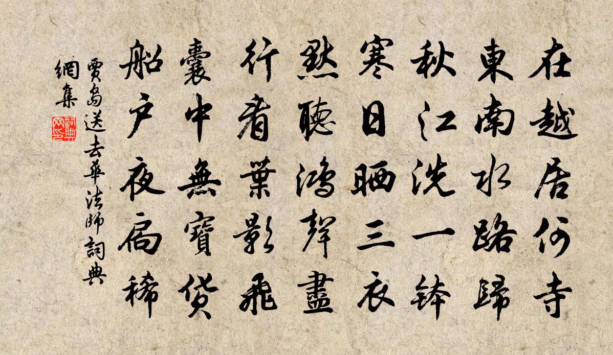 在越居何寺,東南水路歸。秋江洗一缽,寒日曬三衣。