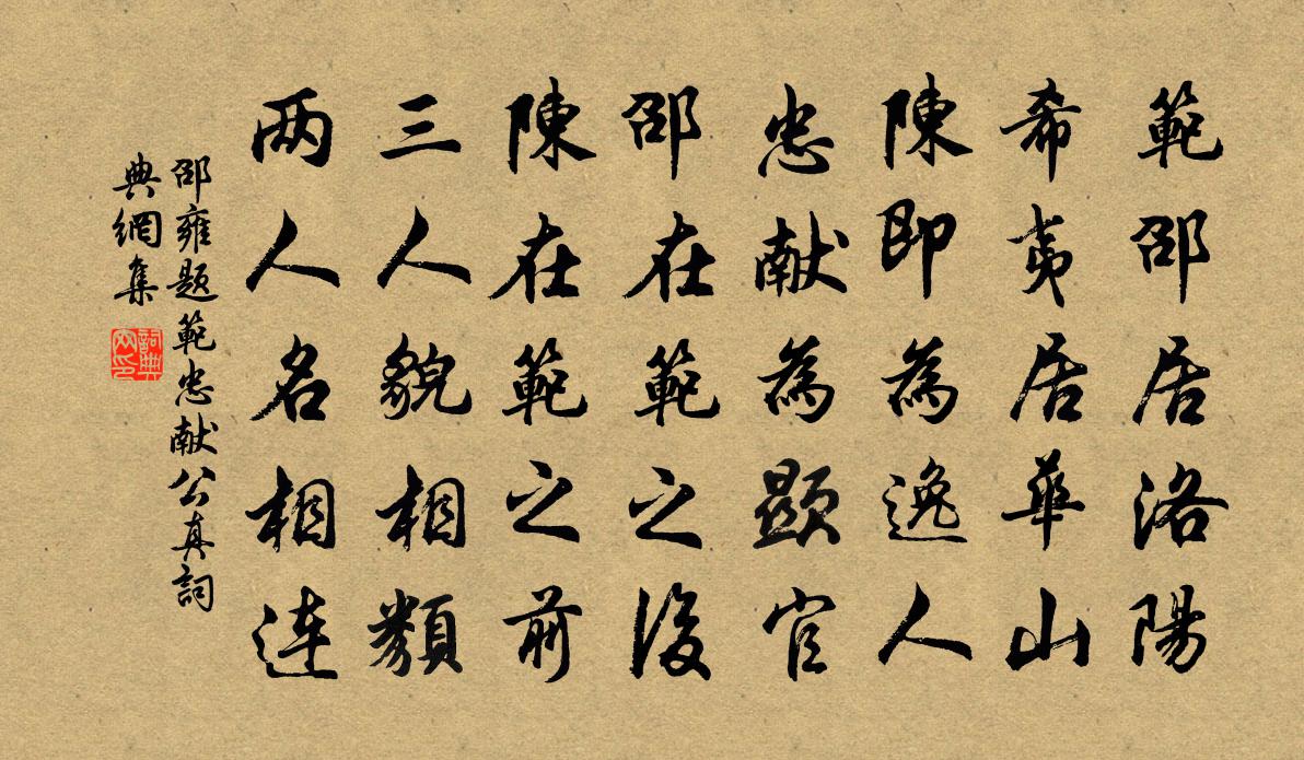 詩詞名句歷史字典書法欣賞書法字典國語詞典說文解字康熙字典古漢語字典標 題 作 者 詩 句 題范忠獻公真作者:邵雍 朝代:宋代題范忠獻公真原文范邵居洛陽,希夷居華山。陳即為逸人,忠獻為顯官。邵在范之後,陳在范之前。三人貌相類,兩人名相連。詩詞問答問:題范忠獻公真的作者是誰?答:邵雍問:題范忠獻公真寫於哪個朝代?答:宋代邵雍題范忠獻公真書法欣賞題范忠獻公真書法作品詩詞推薦賀新郎辛棄疾〔宋代〕陳同父自東陽來過余,留十日,與之同游鵝湖,且會朱晦庵於紫溪,不至,飄然東歸。既別之明日,余意中殊戀戀和固道韻問谹父小疾三首王洋〔宋代〕舊傳傳箭聊城,海內群工舊名。況有文章老伴,朱顏碧落仙卿。怨詩行佚名〔〕天德悠且長,人命一何促。百年未幾時,奄若風吹燭。嘉賓難再遇,人命不可贖。齊度游四方,各系太山錄。人間酬范記室雲何遜〔南北朝〕林密戶稍陰,草滋階欲暗。風光蕊上輕,日色花中亂。相思不獨歡,佇立空為嘆。清談莫共理,繁文徒可玩。高唱酬釋法平史浩〔宋代〕團團璧月印寒潭,時有清風掃碧嵐。照見山人方隱几,洒然無物自沈酣。宿雲岩山陳造〔宋代〕名山邦域中,每嘆夢境隔。如何夏而春,共苦沽水厄。向來夢中山,真作緣雲升。夜氣與僧話,凜凜冰壺清。初宵過松江姚鉉〔宋代〕句吳奇勝絕無儔,更見松江八月秋。震澤波光連別派,洞庭山影落中流。汀蘆擁雪藏魚市,岸橘風香趁客舟。冷興和曇穎師四明十題宴坐岩梅堯臣〔宋代〕心危身亦危,衽席尚顛墜。如何岩石上,來坐自安意。能諭死生間,無論寤與寐。龍池禱雨虞儔〔宋代〕御府金奩出寶薰,爇來池上定知聞。龍應覆手能為雨,岫豈無心漫出雲。秧插高田猶未遍,泉流幽澗恐難分。奉常詠史下殷浩陳普〔宋代〕王蒙謝尚不堪論,庾翼桓溫亦浪言。兩晉士風真可笑,盡將管葛許深源。慶東宮生辰四首周必大〔宋代〕季秋日在房,房心乃明堂。煌煌心前星,於茲侍天王。休符協上象,九月誕元良。太史言有證,重暉照無疆。玉樹花王之道〔宋代〕幾年埋沒亂荊榛,軒檻移來特地新。何事臨風忍相對,傷心一曲舊亡陳。朝中措洪咨夔〔宋代〕滂葩七十二灘春。鍾瑞石麒麟。流水行雲才思,光風霽月精神。金蕉進酒,斑衣起舞,喜氣津津。群玉峰頭環佩,二月二日出郊王庭珪〔宋代〕日頭欲出未出時,霧失江城雨腳微。天忽作晴山卷幔,雲猶含態石披衣。煙村南北黃鸝語,麥壠高低紫燕飛。誰似枕上陸游〔宋代〕香冷燈昏夢自驚,清愁冉冉帶餘酲。夜長誰作幽人伴,惟是蛩聲與月明。送惟德上人還黿溪周弼〔宋代〕為愛林間寺,幽閒少是非。因拋蓽門業,來著稻田衣。石蕨沖雲細,山蔬膩雨肥。禪居安穩後,更莫啟柴扉。和棲霞寂照庵僧雲渺王安石〔宋代〕蕭然一世外,所樂有誰同。宴坐能忘老,齋蔬不過中。無心為佛事,有客問家風。笑謂西來意,雖空亦不空。臨江仙 朝元觀,請以詞許之尹志平〔元代〕自別都門人事少,心頭不掛微塵。閒歌閒詠默頤神。有中皆妄想,無內卻全真。取性逍遙雲水客,無情淡泊閒人。望江南黃公紹〔宋代〕思晴好,試卜那朝晴。古木荒村雲淰淰,孤燈敗壁夜冥冥。不寐聽檐聲。北至太原李益〔唐代〕炎祚昔昏替,皇基此郁盤。玄命久已集,撫運良乃艱。南厄羊腸險,北走雁門寒。始於一戎定,垂此億世安。唐風名句推薦酒盈杯,書滿架,名利不將心掛。李珣《漁歌子·荻花秋》 香霧雲鬟濕,清輝玉臂寒。杜甫《月夜》 強欲登高去,無人送酒來。岑參《行軍九日思長安故園》 悲莫悲生離別,樂莫樂新相識,兒女古今情。辛棄疾《水調歌頭·壬子三山被召陳端仁給事飲餞席上作》 名花傾國兩相歡,常得君王帶笑看。李白《清平調·名花傾國兩相歡》 別離還有經年客,悵望不如河鼓星。徐凝《七夕》 食必常飽,然後求美;衣必常暖,然後求麗;居必常安,然後求樂劉向《說苑·反質》 不信樓頭楊柳月,玉人歌舞未曾歸。謝枋得《蠶婦吟》 世人結交須黃金,黃金不多交不深。張謂《題長安壁主人》 鳥下綠蕪秦苑夕,蟬鳴黃葉漢宮秋。許渾《鹹陽城東樓 / 鹹陽城西樓晚眺 / 西門》