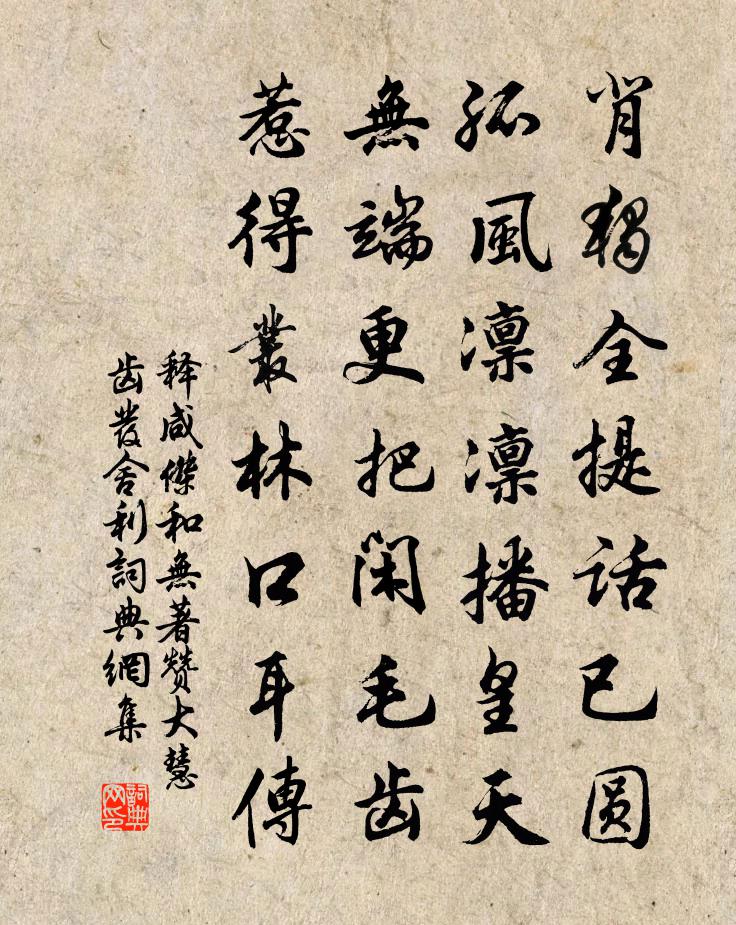 詩詞名句歷史字典書法欣賞書法字典國語詞典說文解字康熙字典古漢語字典標 題 作 者 詩 句 和無著贊大慧齒髮舍利作者:釋鹹傑 朝代:宋代和無著贊大慧齒髮舍利原文背獨全提話已圓,孤風凜凜播皇天。無端更把閒毛齒,惹得叢林口耳傳。詩詞問答問:和無著贊大慧齒髮舍利的作者是誰?答:釋鹹傑問:和無著贊大慧齒髮舍利寫於哪個朝代?答:宋代釋鹹傑和無著贊大慧齒髮舍利書法欣賞和無著贊大慧齒髮舍利書法作品詩詞推薦十二月二十八日立春次韻王山長俊甫方回〔宋代〕餘生橄欖蠖求伸,久作屠酥最後人。萬事不關閒處眼,三朝聊喜歲前喜。草芽地已回生意,雪霽天應念小民。船活得節二首姜特立〔宋代〕風雲際會少人同,玉殿宣麻出禁中。聖主念親催賜鉞,老臣們淚痛遺弓。謝邱行之曾豐〔宋代〕剝啄屨聲寒,夫誰闖我關。芝開眉宇紫,豹露管中斑。客有志鑽孔,得無人儔顏。倘余化砂法,其敢為君慳。和宋次道答弟中道寄懷梅堯臣〔宋代〕陸家兄弟苦西東,黃耳傳書近已通。共嘆流年同轉轂,各驚華發似飛蓬。河冰夜合知霜勁,塞霧朝開見日紅。臘盡過鶯斗湖三首楊萬里〔宋代〕忽聞江上四驩呼,知近吳江鶯斗湖。火炬燈籠不須辨,使家行住按程塗。榴花竹石鶴釋善珍〔宋代〕剪翮花前老可哀,寄聲鷹隼莫相猜。舊遊赤壁君如不,曾伴坡仙作賦來。寄陳侍御黃滔〔唐代〕千年二相未全夸,猶闕閩城賀降麻。何必錦衣須太守,別無蓮幕勝王家。醴泉涌處休論水, * 開時獨是花。九級夏冰歌韋應物〔唐代〕出自玄泉杳杳之深井,汲在朱明赫赫之炎辰。九天含露未銷鑠,閶闔初開賜貴人。碎如墜瓊方截璐,粉壁生寒象筵遇行人孔武仲〔宋代〕我托南車去,君挐北轡還。相看一夢裹,好入畫圖間。對菊有感宋祁〔宋代〕吹菊佳辰念物華,顏生不飯重咨嗟。故園舊種猶存否,露損風搖著幾花。蜀綿州越王樓詩樊宗師〔唐代〕危樓倚天門,如星辰宮。!榱薄龍虎怪,洄洄繞雷風。徂秋試登臨,大靄屯喬空。不見西北路,考懷益雕窮。石瀨李無玷自左正言出守永州召為吏曹外郎尚阻敘李復〔宋代〕初伏青蒲拜皂囊,忽驅五馬下瀟湘。入承上合尚書牒,分掌中銓吏部郎。焚藁舊垣猶寂寞,拱樞列宿頓輝光。聞歸宿峨橋化城寺二首楊萬里〔宋代〕忽從平地上高城,乃是圩塘堤上行。厚賽柳神銷底物,長腰雲子闊腰菱。再答趙汝騰〔宋代〕人間姚魏總輿台,獨占神仙上品開。絕代詞華三峽倒,當時諫草九天回。晚晴大白檐前舉,春暖小車花下來。筆補謝章平遠惠筆黃庚〔宋代〕管城二子樣尖新,分惠山房勝饋金。淮兔拔毛夸匠巧,魯魚正字見功深。抄書未得纖毫力,握管難忘一寸心。揮翰句宋孝宗〔宋代〕閭閻多勃鬱,有愧此閒身。舉場語佚名〔唐代〕欲入舉場,先問蘇張。蘇張猶可,三楊殺我。鷓鴣天·晚日寒鴉一片愁辛棄疾〔宋代〕晚日寒鴉一片愁。柳塘新綠卻溫柔。若教眼底無離恨,不信人間有白頭。腸已斷,淚難收。相思重上小紅樓。情知送江州孫膳部歸闕兼寄承旨侍郎王禹偁〔宋代〕九江為郡鬢成霜,淮海相逢共黯傷。放逐翰林同李白,蹉跎郎署是馮唐。才名各負詩千首,離別無辭酒一觴。歸見田將軍書院賈島〔唐代〕滿庭花木半新栽,石自平湖遠岸來。筍迸鄰家還長竹,地經山雨幾層苔。井當深夜泉微上,閣入高秋戶盡開。行背名句推薦曉風不散愁千點,宿雨還添淚一痕。曹雪芹《詠白海棠》 同是人,類不齊,流俗眾,仁者希。李毓秀《弟子規·親仁》 冥冥寒食雨,客意向誰親?劉一止《冥冥寒食雨》 孤之有孔明,猶魚之有水也。陳壽《隆中對》 窮且益堅,不墜青雲之志。王勃《滕王閣序》 隔牖風驚竹,開門雪滿山。王維《冬晚對雪憶胡居士家》 此中有真意,欲辨已忘言。陶淵明《飲酒·其五》 松竹翠蘿寒,遲日江山暮。曹組《卜運算元·蘭》 梳洗罷,獨倚望江樓。溫庭筠《望江南·梳洗罷》 細雨魚兒出,微風燕子斜。杜甫《水檻遣心二首》