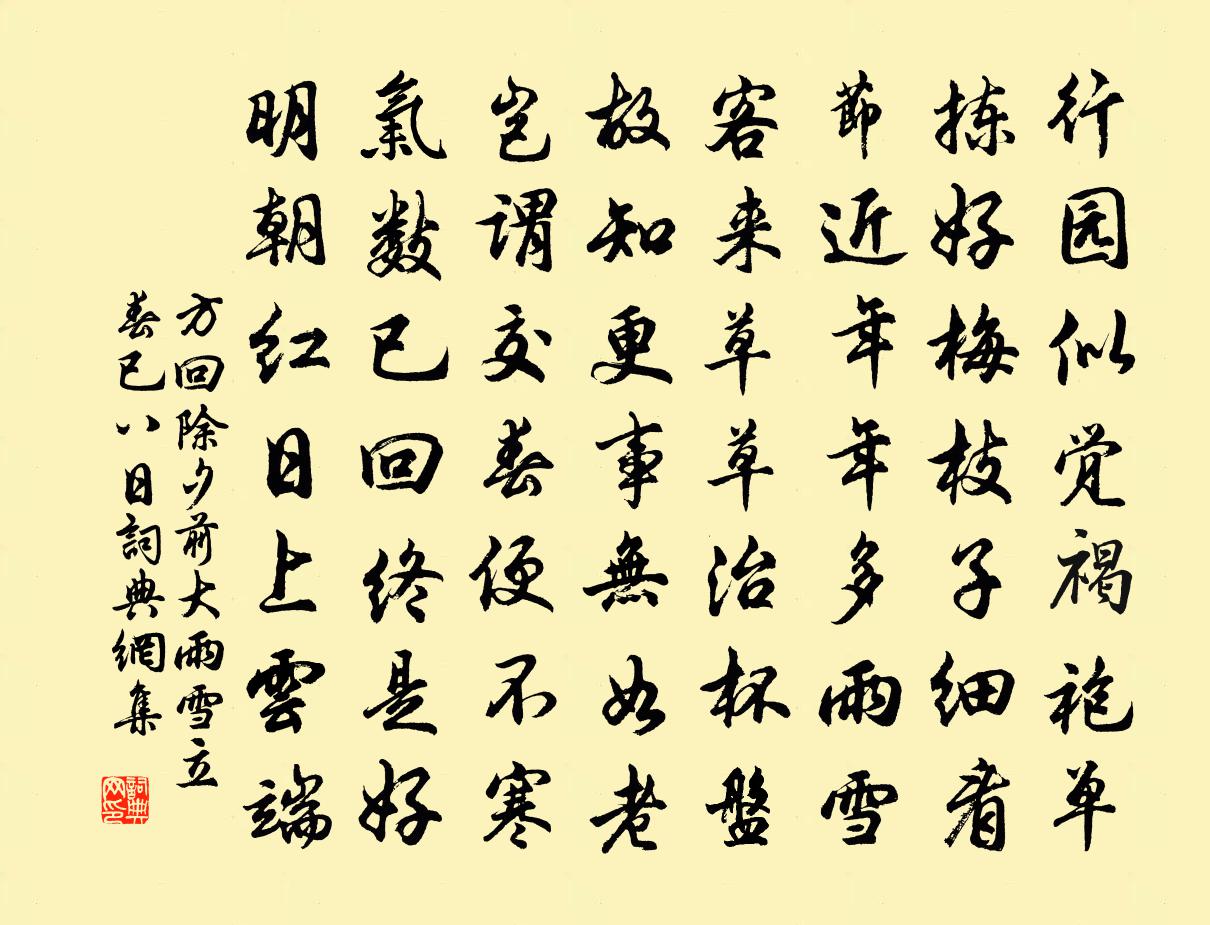 詩詞名句歷史字典書法欣賞書法字典國語詞典說文解字康熙字典古漢語字典標 題 作 者 詩 句 除夕前大雨雪立春已八日作者:方回 朝代:宋代除夕前大雨雪立春已八日原文行園似覺褐袍單,揀好梅枝子細看。節近年年多雨雪,客來草草治杯盤。故知更事無如老,豈謂交春便不寒。氣數已回終是好,明朝紅日上雲端。詩詞問答問:除夕前大雨雪立春已八日的作者是誰?答:方回問:除夕前大雨雪立春已八日寫於哪個朝代?答:宋代方回除夕前大雨雪立春已八日書法欣賞除夕前大雨雪立春已八日書法作品詩詞推薦霽後宋庠〔宋代〕小雨春膏潤,微波晚照空。壺光遙送電,梁影半傾虹。珍樹疏煙合,幻塘暗溜通。羲皇誰可上,靖節有窗風。再飲枕流和王景文韻曾協〔宋代〕乞得微官本為閒,生贈簿領積如山。鼎來佳客無陶謝,向後微言到孔顏。安得朱弦起秋思,預愁清淚落陽關。壯懷和子楚二首王洋〔宋代〕我知黃卷能遮眼,豈識紅襦解對棋。且要此心無墨白,憐渠勝負自相期。烏麻頭賈似道〔宋代〕烏麻頭路透銀絲,項闊毛臊肉帶梨。更若翅烏牙鉗赤,得遇此蟲真是奇。病中對竹陳文蔚〔宋代〕窗外修篁僅百竿,相看不待報平安。何時得我身強健,共爾青青到歲寒。群玉殿賜宴蔡襄〔宋代〕治道承炎歷,皇基亘萬年。深仁涵海岳,至德著坤乾。文物歸元首,臣鄰必巨賢。蓼蕭思及下,奕葉力追先。昕色泗州畫贊林之奇〔宋代〕稽首泗州普照王,曩以寶塔接群品。塔今敗壞成微塵,隨意分身無不在。我觀世間有為法,無常遷變同一空。假饒訴衷情朱敦儒〔宋代〕青垂柳線水平池。芳徑燕初飛。日長事少人靜,山繭換單衣。簫鼓遠,篆香遲。捲簾低。半床花影,一枕松風,午白髮顧逢〔宋代〕一莖白一莖,兩鬢忽然更。難把黃金買,從教青鏡明。染來不似舊,鑷去又重生。多少人無此,相看未可輕。周五聲調曲 羽調曲 一庾信〔南北朝〕樹君所以牧人。立法所以靜亂。首惡既其南巢。元兇於是北竄。居休氣而四塞。在光華而兩旦。是以雨施作解。是瑞龍吟陳允平〔宋代〕長安路。還是燕乳鶯嬌,度簾遷樹。層樓十二闌乾,繡簾半卷,相思處處。漫憑佇。因念彩雲初到,瑣窗瓊戶。梨獲鹿再詠乾隆〔清代〕秋鹿合群正此時,乘閒偶爾試虞為。鐵丸穿過牝先倒,藥氣存傷牡逸弛。不謂目精尚猶故,分頒眾喜有如斯。苗凶再送蒙寺丞赴郢州梅堯臣〔宋代〕彎弓落飛鳥,少也向幽州。來作漢官屬,恥為戎國留。身輕拋馬轡,地暖厭狐裘。慣見顏如玉,江邊問莫愁。閨怨四首趙蕃〔宋代〕紅芳不可待,綠蔭忽已成。妾貌愧花好,郎姿如柳明。總題葛紹體〔宋代〕車馬不來山意朴,市廛都遠土風淳。又無僧寺閒鐘鼓,流水聲中自有春。龜堂雜興陸游〔宋代〕閩溪紙被軟於綿,黎峒花紬暖勝氈。一夜山中三尺雪,未妨老子日高眠。中秋夜泊武昌劉淑柔〔唐代〕兩城相對峙,一水向東流。今夜素娥月,何年黃鶴樓。悠悠蘭棹晚,渺渺荻花秋。無奈柔腸斷,關山總是愁。病足趙庚夫〔宋代〕老病侵陵藥不靈,雪窗燈火冷如螢。未應安隱青蓮足,便學蹁躚病鶴形。意蛩夢中輕獻璞,怒思天上去鞭霆。露華池上晚雨陸游〔宋代〕鳥紗白葛一枝筇,罨畫池邊溯晚風。雲葉初生高樹外,雨聲已到亂荷中。憑闌頓覺氛埃遠,回首方知暑毒空。閱世沅陵契丈用蕃將至辰州寄在伯兄韻作詩見屬用趙蕃〔宋代〕能事豈工刀與筆,閒情聊付詠而觴。生前憂累須陶寫,身後聲名盡在亡。名句推薦人生不相見,動如參與商。杜甫《贈衛八處士》 時有官船橋畔過,白鷗飛去落前灘。姜夔《釣雪亭》 天地有正氣,雜然賦流形。文天祥《正氣歌》 解落三秋葉,能開二月花。李嶠《風》 君有妒臣,則賢人不至。荀子《荀子·大略》 但使情親千里近,須信。無情對面是山河。辛棄疾《定風波·席上送范廓之游建康》 相思已是不曾閒,又那得、工夫咒你。蜀妓《鵲橋仙·說盟說誓》 琵琶金翠羽,弦上黃鶯語。韋莊《菩薩蠻》 不近人情,舉世皆畏途;不察物情,一生俱夢境。陳繼儒《小窗幽記·集醒篇》 日初出大如車蓋,及日中則如盤盂,此不為遠者小而近者大乎?列禦寇《兩小兒辯日》