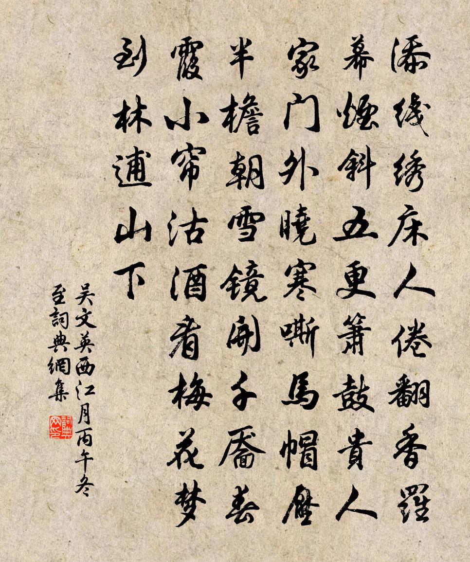 添線繡床人倦,翻香羅幕煙斜。五更簫鼓貴人家。門外曉寒嘶馬。