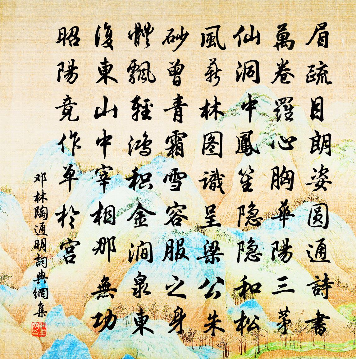 詩詞名句歷史字典書法欣賞書法字典國語詞典說文解字康熙字典古漢語字典標 題 作 者 詩 句 陶通明作者:鄧林 朝代:宋代陶通明原文眉疏目朗姿圓通,詩書萬卷羅心胸。華陽三茅仙洞中,鳳笙隱隱和松風。薪林圖識呈梁公,硃砂曾青霜雪容。服之身體飄輕鴻,積金澗泉東復東。山中宰相那無功,昭陽竟作單于宮。詩詞問答問:陶通明的作者是誰?答:鄧林問:陶通明寫於哪個朝代?答:宋代鄧林陶通明書法欣賞陶通明書法作品詩詞推薦偈頌八十七首釋慧開〔宋代〕燕國當年植福田,身如水月印三千。渠無生死歸何處,春早梅華放曉煙。行路難·其三李白〔唐代〕有耳莫洗潁川水,有口莫食首陽蕨。含光混世貴無名,何用孤高比雲月?吾觀自古賢達人,功成不退皆殞身。子胥和黃遇卿二白韻王邁〔宋代〕晚來雲色半濃淡,雲外青山知有無。纏出六花夸舞女,又飛一白慰農夫。久無人說平淮事,空有天生訪戴圖。憂國湘雲吳商浩〔唐代〕□滿湘江雲瑩空,紛紛長對水溶溶。日西遙望自歸處,盡掛九疑千萬峰。諷諫歌蕭瑟瑟〔遼代〕勿嗟塞上兮暗紅塵,勿傷多難兮畏夷人;不如塞奸邪之路今,選取賢臣。直須臥薪嘗膽兮,激壯士之捐身,可以朝滿江紅侯善淵〔元代〕春花秋月,古往今來暫時間。貴賤賢愚,曾經換幾番。死生似蟻任循環。咫尺仙鄉人不到,出塵徑路,如隔萬山。採桑子佚名〔宋代〕幽芳瑩白前村里,豈藉春工。勝盡群紅。瓊拈凝酥向不同。一聲羌管愁人處,片片西東。睹此遺蹤。不怨狂風怨馬四時般若釋法泰〔宋代〕飄飄黃葉墜幽庭,萬里無雲宇宙清。颯颯涼飈生戶外,韶陽三句轉分明。天池寺夜與主僧覺翁圓上共坐談浯溪山水之勝董嗣杲〔宋代〕空雲駕我登天池,江山秋渺無津涯。涉溪驀棧借杖藜,光景體認裁詩。崢嶸寺門窩風低,塔鈴喧風際天吹。方丈軒摸魚子 中都餞荀平叔都事赴大都許有壬〔元代〕正荒寒似逃空谷,佳人又話離別。風低白草天無際,漠漠平沙如雪。心欲折。看落日飛鴻,一線明還滅。長歌激烈長門怨張喬〔唐代〕御泉長繞鳳凰樓,自是恩波別處流。閒揲舞衣歸未得,夜來砧杵六宮秋。過磨盤得風掛帆楊萬里〔宋代〕兩岸黃旗小隊兵,新晴皈路馬蹄輕。全番長笛橫腰鼓,一曲春風出塞聲。鵲噪鴉啼俱喜色,船輕風須更兼程。卻思與鄭幾夫晏幾道〔宋代〕小白長紅又滿枝,築球場外獨支頤。春風自是人間客,主張繁華得幾時?寄浙漕王子文野以思君令人老五字為韻得詩五五邁〔宋代〕長沙一傾蓋,情好如塤篪。間關十寒暑,何時不相思。君為睢邸教,再挹冰玉姿。升堂拜壽母,摩機識馨兒。敘舊和遠老四首吳芾〔宋代〕事好休時便好休,不應人盡覓封侯。歸來已快平生志,況有高人來聚頭。閒吟贈皇甫郎中親家翁(新與皇甫結姻)白居易〔唐代〕誰能嗟嘆光陰暮,豈復憂愁活計貧。忽忽不知頭上事,時時猶憶眼中人。早為良友非交勢,晚接嘉姻不失親。最喜送陳郎中知和州梅堯臣〔宋代〕藹藹尚書郎,出為二千石。伯公曆將相,兄弟皆烜赫。前罷永嘉守,民俗遮阡陌。獨將海松歸,夸與都下客。今去時事吟邵雍〔宋代〕時久則患生,事久則弊生。弊患相仍,人何以寧。敬和老人覽鏡洪咨夔〔宋代〕西谷柴車手自巾,風吹不到庾郎塵。迴光返照千江月,復命歸根一點春。永晝同窗陶處士,涼宵專席竹夫人。徐公行香子譚處端〔元代〕朝也防心。暮也防心。恐心生、熟景來侵。多能術藝,書畫棋琴。更不生貪,不著愛,步瑤岑。善也由心。惡也由名句推薦蕙風如薰,甘露如醴。左思《三都賦》 風蕭蕭而異響,雲漫漫而奇色。江淹《別賦》 擢擢當軒竹,青青重歲寒。呂太一《詠院中叢竹》 得寵思辱,居安思危。佚名《增廣賢文·上集》 守分安命,順時聽天。朱柏廬《朱子家訓·全文》 百二禁兵辭象闕,三千宮女下龍舟。許渾《汴河亭》 吃一分虧,受無量福。馮夢龍《警世通言·卷三》 花門樓前見秋草,豈能貧賤相看老。岑參《涼州館中與諸判官夜集》 所敬者寡,而悅者眾,此之謂要道也。孔子及其弟子《孝經·廣要道》 綠葉翠莖,冒霜停雪。左思《三都賦》