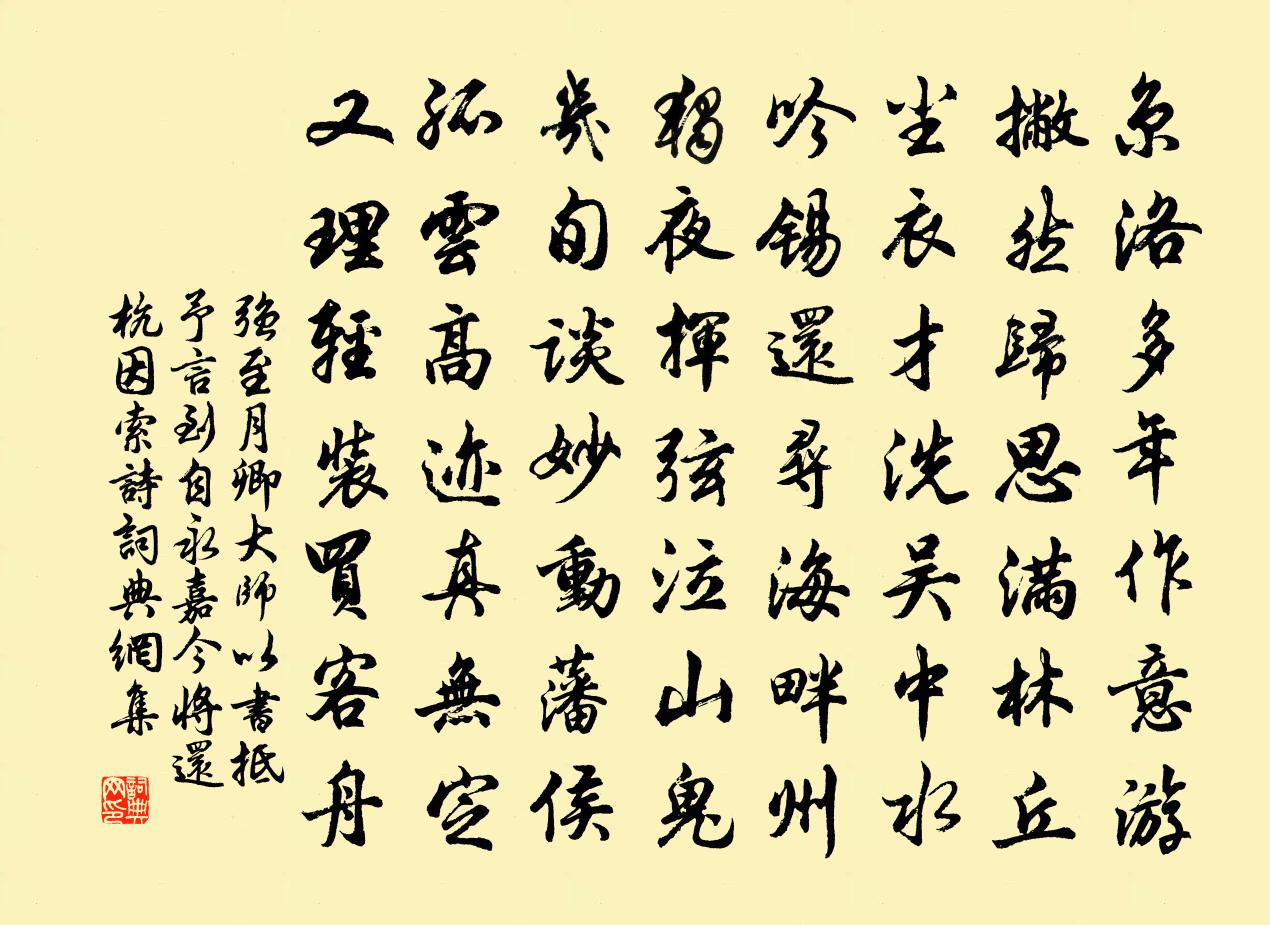 詩詞名句歷史字典書法欣賞書法字典國語詞典說文解字康熙字典古漢語字典標 題 作 者 詩 句 月卿大師以書抵予言到自永嘉今將還杭因索詩作者:強至 朝代:宋代原文京洛多年作意游,撇然歸思滿林丘。塵衣才洗吳中水,吟錫還尋海畔州。獨夜揮弦泣山鬼,幾旬談妙動藩侯。孤雲高跡真無定,又理輕裝買客舟。詩詞問答問:《月卿大師以書抵予言到自永嘉今將還杭因索詩》的作者是誰?答:強至問:該詩寫於哪個朝代?答:宋代書法欣賞月卿大師以書抵予言到自永嘉今將還杭因索詩書法作品詩文賞析【原題】:月卿大師以書抵予言到自永嘉今將還杭因索詩送行聊書短章塞來請之勤詩詞推薦觀梅方岳〔宋代〕老樹槎枒只一花,氣條亦不放橫斜。無風無雨無煙月,獨立人間莫怨嗟。樂耕吟金朋說〔宋代〕黃鸝語後麥初熟,鴻春來時稻正香。但獲新倉豐稔足,床頭新釀酒盈缸。蘆花道人換被圖王冕〔元代〕高昌野人見幾早,發須不待秋風老。脫身放浪煙水間,富貴功名盡除掃。坐對漁翁交有道,青綾何似蘆花好?從時舟宿會昌十裡間曾豐〔宋代〕石是窪樽樣,山如土鼓然。空猶余樹木,了不見人煙。辦治豈容緩,拊摩那得專。意中無限事,夜半不成眠。太常引 武候劉秉忠〔元代〕至人視有一如無。見義處,便相扶。三顧出茅廬。莫不是、先生有圖。拯危當世,覺民斯道,佩玉已心枯。遺恨失殘句青山南蘇軾〔宋代〕青山南,白石北,此地嵯峨人不識。和孫公善李仲同金櫻餌唱酬二首黃庭堅〔宋代〕人生欲長存,日月不肯遲。百年風吹過,忽成甘蔗滓。傳聞上世士,烹餌草木滋。千秋垂綠髮,每恨不同時。李侯一萼紅(夜聞南婦哭北夫)劉天迪〔宋代〕擁孤衾,正朔風淒緊,氈帳夜生寒。春夢無憑,秋期又誤,迢遞煙水雲山。斷腸處、黃茅瘴雨,恨驄馬、憔悴只空武林春遊即事李德真〔宋代〕風光如此莫傷春,雲樹煙花一色新。杜宇不啼真解事,帝鄉誰是肯歸人。奉和翁文堯戲寄黃滔〔唐代〕掘蘭宮裡數名郎,好是乘軺出帝鄉。兩度還家還未有,別論光彩向冠裳。次韻劉叔貢舍人從駕蘇頌〔宋代〕鰲頭星掖貴兼清,不似南宮散六卿。繼踵棣華聯禁直,並時蘭玉占高名。甘泉法從皆才低傑,皇佑孤臣獨老生。自次韻不浮弟自金陵相過高斯得〔宋代〕老夫睡眼方昏花,夢中忽聞歌隸華。暮春逢此晴雨好,足慰飄零少陵老。知君重踏東華塵,先訪雪堂老師兄。大篇九日方壺鄧深〔宋代〕返照重城暮色催,人家十萬出樓台。江流湛湛洞庭去,山色青青衡岳來。佳處綠樽窮日飲,故園 * 向誰開。人間浣溪沙向子諲〔宋代〕短句贈行樽俎風流意氣傾。一杯相屬忍催行。離歌更作斷腸聲。袞袞大江前後浪,娟娟明月短長亭。水程山驛總關庚戍正月三,約同舍游西湖十首楊萬里〔宋代〕南北高峰巧避人,旋生雲霧半腰橫。縰然遮得青蒼面,玉塔雙尖分外明。辛丑歲暮三首戴復古〔宋代〕臘盡無多日,吾生有幾年。老於人事懶,貧覺世情偏。獨枕江湖夢,閉門風雪天。三杯動詩興,得句落梅邊。夕陽劉筠〔宋代〕夕陽堪極目,況復近秋殘。寒逈橫煙紫,江清照葉丹。伍胥嗟路遠,潘子念行難。更有蕪城恨,城空逼夜寒。泛舟鑑湖同程致道趙叔問聯句趙子泰〔宋代〕詩見程俱七。《泛舟鑑湖同趙來叔子泰趙問聯句》寄宣城宗言姪林逋〔宋代〕春水涵波綠渺瀰,江南芳草又離離。謝家元住青山郭,郄氏近攀丹桂枝。衣下香囊非爾好,床頭詩卷愧吾痴。中林踏莎行蔡伸〔宋代〕佩解江皋,魂消南浦。人生惟有別離苦。別時容易見時難,算來卻是無情語。百計留君,留君不住。留君不住君須名句推薦胭脂雪瘦熏沉水,翡翠盤高走夜光。蔡松年《鷓鴣天·賞荷》 策馬自沙漠,長驅登塞垣。高適《薊中作》 冰炭不同器而久,寒暑不兼時而至韓非及後人《韓非子·顯學》 含愁獨倚閨幃,玉爐煙斷香微。毛熙震《清平樂·春光欲暮》 寂寞離亭掩,江山此夜寒。王勃《江亭夜月送別二首》 天闕象緯逼,雲臥衣裳冷杜甫《游龍門奉先寺》 繡袂捧琴兮,登君子堂。貫休《善哉行·傷古曲無知音》 造物無言卻有情,每於寒盡覺春生。張維屏《新雷》 獨有宦遊人,偏驚物候新。杜審言《和晉陵陸丞早春遊望》 明日相思莫上樓,樓上多風雨。游次公《卜運算元·風雨送人來》