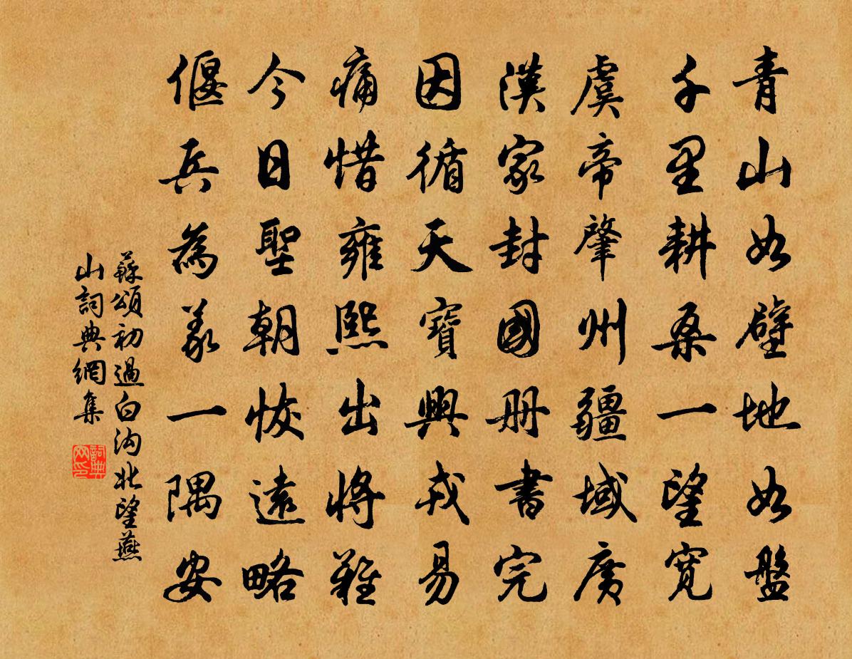 詩詞名句歷史字典書法欣賞書法字典國語詞典說文解字康熙字典古漢語字典標 題 作 者 詩 句 初過白溝北望燕山作者:蘇頌 朝代:宋代初過白溝北望燕山原文青山如壁地如盤,千里耕桑一望寬。虞帝肇州疆域廣,漢家封國冊書完。因循天寶興戎易,痛惜雍熙出將難。今日聖朝恢遠略,偃兵為義一隅安。詩詞問答問:初過白溝北望燕山的作者是誰?答:蘇頌問:初過白溝北望燕山寫於哪個朝代?答:宋代蘇頌初過白溝北望燕山書法欣賞初過白溝北望燕山書法作品詩詞推薦商山道者貫休〔唐代〕五千言外得玄音,石屋寒棲隔雪林。多傍松風梳綠髮,只燒崖藥點黃金。澄潭龍氣來縈砌,月冷星精下聽琴。曾夢郡中上元燈減舊例三之二而又迎送使客七首楊萬里〔宋代〕村里風回市里聲,月中人看雪中燈。滿城只道歡猶少,不道譙門冷似冰。蝶戀花程垓〔宋代〕小院菊殘煙雨細。天氣淒涼,惱得人憔悴。被暖橙香羞早起。玉釵一任慵雲墜。樓上珠簾鉤也未。數尺遙山,供盡水調歌頭夏元鼎〔宋代〕聞道不嫌晚,悟了莫悠悠。遇時不煉,今生烏兔恐難留。些子乾坤簡易,不問在朝居市,達者盡堪修。火候無斤兩泊姑蘇城外大雪二首楊萬里〔宋代〕今日晴光滿碧空,也無霧雨也無風。寂然窗戶黃昏後,霍地瓊瑤一望中。千里湖山銀作地,半篙舴艋玉為宮。丁寧送無演歸成都文同〔宋代〕曾讀契嵩輔教編,浮屠氏有不可忽。後於京師識懷璉,彼上人者尤奇掘。余嘗從容問其友,璉復為余道民訥。是三黃薔薇花方回〔宋代〕春工借露染鶯裳,欲學東籬一樣黃。輸與菊花在何處,止禁晴暖不禁霜。寄題江外草堂(梓州作,寄成都故居)杜甫〔唐代〕我生性放誕,雅欲逃自然。嗜酒愛風竹,卜居必林泉。遭亂到蜀江,臥疴遣所便。誅茅初一畝,廣地方連延。經營詞笑令(⑥盼盼)秦觀〔宋代〕詩曰:百尺樓高燕子飛。樓上美人顰翠眉。將軍一去音容遠,只有年年舊燕歸。春風昨夜來深院。春色依然人不見馮深居輓詞釋文珦〔宋代〕天地一深翁,匡廬氣所鍾。親傳厚齋業,優得考亭宗。勁筇霜崖竹,高標雪嶠松。滄溟含雅量,乾莫避辭鋒。元老和徐季功舒蘄道中二十首王之道〔宋代〕草滿池塘水滿川,雨余溪溜正濺濺。黃梅恰在山多處,披霧時看一握天。寄老溪上人蒲壽宬〔宋代〕已知山是石,掛起碧筇條。家在黃梅樹,門當獨木橋。寡交因犬惡,默坐聽蟬調。同道何時過,心慵不見招。以西省齋事被差孟夏景靈宮朝饔跪進茶酒齋宿程公許〔宋代〕承明三入笑陳人,藥砌翻紅又一春。英轂並馳騁慚領袖,斐章何自稱絲綸。駿奔數幸天顏近,駑拙難勝寵渥頻。朋袷饗太廟佚名〔宋代〕皇矣烈祖,次於僖祖。燕貽憑厚,德遠而隆。尊昭綴穆,全食惟豈。孝孫奠爵,福嘏來同。次范宰韻李石〔宋代〕在仙白雲鄉,地與人境異。金卮老翁泉,玉盤秋水芰。誰歟肯下食,三仙入夢寐。一笑謂我言,隨處類投畀。蟆頤行香子 行化王處一〔元代〕遇行緣,逢知友。法水澆心,滴滴靈明透。收在爐中無外走。二氣升騰,顛倒祥輝湊。貫泥丸,通肘後。晝夜殷勤冥鴻辭白玉蟾〔宋代〕夜來烏鵲棲寒楓,蒼天萬里煙霞濃。海神洶湧翻怒濤,風伯鼓舞吹冥鴻。霜翰不入矰繳內,星眼直射煙霄中。下嗤郊壇齋宮七首任希夷〔宋代〕榮路輝輝日月依,雲霄奕奕孔鸞飛。輔臣對罷升金殿,日日絲絢侍袞衣。同崔員外、綦毋拾遺九日宴京兆府李士曹高適〔唐代〕今日好相見,群賢仍廢曹。晚晴催翰墨,秋興引風騷。絳葉擁虛砌,黃花隨濁醪。閉門無不可,何事更登高。靈洲方信孺〔宋代〕東南佳氣盛衣冠,樓閣翬飛縹紗間。疑是落星灣上見。名句推薦花似伊。柳似伊。花柳青春人別離。歐陽修《長相思·花似伊》 憶年十五心尚孩,健如黃犢走復來。杜甫《百憂集行》 呼童烹雞酌白酒,兒女嬉笑牽人衣。李白《南陵別兒童入京》 美功不伐,貴位不善佚名《孔子家語·弟子行》 美不美,鄉中水;親不親,故鄉人。佚名《增廣賢文·上集》 不惜千金買寶刀,貂裘換酒也堪豪。秋瑾《對酒·不惜千金買寶刀》 請君試問東流水,別意與之誰短長。李白《金陵酒肆留別》 河水縈帶,群山糾紛。李華《弔古戰場文》 自是荷花開較晚,孤負東風。幼卿《浪淘沙·極目楚天空》 奇文共欣賞,疑義相與析。陶淵明《移居二首》