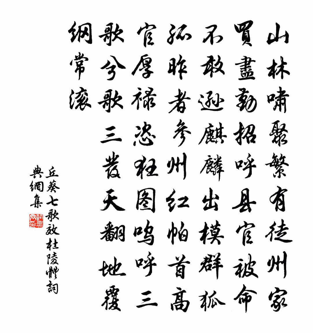 詩詞名句歷史字典書法欣賞書法字典國語詞典說文解字康熙字典古漢語字典標 題 作 者 詩 句 七歌效杜陵體作者:丘葵 朝代:宋代七歌效杜陵體原文山林嘯聚繁有徒,州家買盡勤招呼。縣官被命不敢遜,麒麟出模群狐孤。昨者參州紅帕首,高官厚祿恣狂圖。嗚呼三歌兮歌三發,天翻地覆綱常滾。詩詞問答問:七歌效杜陵體的作者是誰?答:丘葵問:七歌效杜陵體寫於哪個朝代?答:宋代丘葵七歌效杜陵體書法欣賞七歌效杜陵體書法作品詩詞推薦鷓鴣天 漁父洪希文〔元代〕萬頃玻璃浩蕩浮。桃李小岸蓼花洲。春風秋月等閒度,雨笠煙蓑得自由。移桂棹,下綸鉤。功名利祿不須求。得魚用前韻留琴窗文天祥〔宋代〕百年矛上淅,萬事枕中炊。病苦還思老,貪嗔未若痴。雲低天欲動,江長岸如馳。明月西風健,山頭賦別詩。芍藥四首邵雍〔宋代〕一聲啼鴂畫樓東,魏紫姚黃掃地空。多謝化工憐寂寞,尚留芍藥殿春風。【雙調】喬木查白樸〔元代〕對景海棠初雨歇,楊柳輕煙惹,碧草茸茸鋪四野。俄然回首處,亂紅堆雪。【麼篇】恰春光也,梅子黃時節,映日為李縣尉壽白玉蟾〔宋代〕浪萍風絮客他鄉,喜者青春鬢未霜。到處煙霞成莫逆,如今山水已相忘。子還真箇為仙尉,我定終身作懶王。何似野廟吳融〔唐代〕古原荒廟掩莓苔,何處喧喧鼓笛來。日暮鳥歸人散盡,野風吹起紙錢灰。春日田園雜興劉蒙山〔宋代〕桑風吹綠滿原頭,西崦東阜暖氣浮。村婦祈蠶分面絸,老農占歲說泥牛。田鳥飛逐耕煙犢,桑扈鳴隨喚雨鳩。憐叟悟南柯 景金本注云,三首本名南柯子 西虢丘處機〔元代〕白露三秋盡,清霜十月初。群花零落共蕭疏。唯有重陽,嘉景獨魁梧。爛漫真堪愛,馨香不可辜。人人皆插滿頭敷寄集慶開山釋智愚〔宋代〕如意來屍釋梵宮。雨花狼藉濕春風。自慚老矣無靈骨,日在深雲聽講鍾。謁金門趙彥端〔宋代〕休相憶。明夜遠如今日。樓外綠煙村冪冪。花飛如許急。柳岸晚來船集。波底斜陽紅濕。送盡去雲成獨立。酒醒愁詠史下龐士元陳普〔宋代〕放虎山林計已非,蛟龍雲雨意猶遲。士元驥足思騰踏,盍有劉琮不告時。二十七日泛舟偶成吳芾〔宋代〕小舟游漾小池中,偶與吾人笑語同。好把釣竿煙雨里,一蓑放我作漁翁。省試夜(一作韋承貽詩)薛能〔唐代〕白蓮千朵照廊明,一片承平雅頌聲。更報第三條燭盡,文昌風景畫難成。芙蓉亭陶弼〔宋代〕邊柝無聲獄訟疏,芙蓉池上避金鳥。民收果實充田賦,匠寫空形入畫圖。白鳥知機遠冠蓋,紫鱗貪餌落盤盂。主人隆興書堂自警三十五首陳淳〔宋代〕心藏隱奧中,乘間亦易動。須於動之微,堅持勿使縱。送趙公遠往健康張元乾〔宋代〕王孫朝謁去,功業嘆流年。強項今三已。棲遲未九遷。笑談曾擊賊,謀畧合臨邊。秋雨長幹路,歸時且著鞭。送傑老住仙遊唐士恥〔宋代〕差入枬檀林,自古只公選。迺知天定時,丹成骨自換。緣識宋太宗〔宋代〕寒銷暄盛同天色,花柳逢春誰不惜。幾許人心達久長,光陰知道留難得。和子開從駕朝謁景靈宮二首范祖禹〔宋代〕雨師泛灑霽光勻,華蓋香風不起塵。億兆歡呼真帝啟,謀猷左右盡君陳。雲隨仙馭三山遠,日出鹹池六合新。一別偈二十首釋鼎需〔宋代〕子能承父業,賺殺幾多人。家破人亡後,無門寄此身。愁人莫向愁人說,說向愁人愁 * 。名句推薦催促年光,舊來流水知何處。廖世美《燭影搖紅·題安陸浮雲樓》 無我原非你,從他不解伊。曹雪芹《紅樓夢·第二十二回》 勸君莫打枝頭鳥,子在巢中望母歸。白居易《鳥》 冉冉秋光留不住,滿階紅葉暮。李煜《謝新恩·冉冉秋光留不住》 月落沙平江似練。望盡蘆花無雁。張炎《清平樂·候蛩淒斷》 胸中有誓深于海,肯使神州竟陸沉?鄭思肖《二礪》 夫尚賢者,政之本也。墨子《墨子·08章 尚賢(上)》 一看腸一斷,好去莫回頭。白居易《南浦別》 柳葉開銀鏑,桃花照玉鞍。駱賓王《送鄭少府入遼共賦俠客遠從戎》 拆桐花爛漫,乍疏雨、洗清明。柳永《木蘭花慢·拆桐花爛漫》
