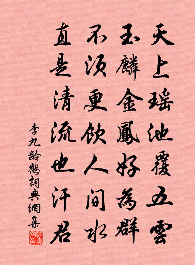 詩詞名句歷史字典書法欣賞書法字典國語詞典說文解字康熙字典古漢語字典標 題 作 者 詩 句 鶴作者:李九齡 朝代:唐代鶴原文天上瑤池覆五雲,玉麟金鳳好為群。不須更飲人間水,直是清流也汗君。詩詞問答問:鶴的作者是誰?答:李九齡問:鶴寫於哪個朝代?答:唐代問:鶴是什麼體裁?答:七絕李九齡鶴書法欣賞鶴書法作品注釋全唐詩:卷730-16詩詞推薦金鼎一溪雲 骷髏喻王丹桂〔元代〕日日迷花酒,朝朝競氣財。偶然命盡掩泉台。郊外暴遺骸。任使磚敲棒打。不似從來尖傻。勸人早悟此因由。物外頌古三十八首釋從瑾〔宋代〕須彌倒卓,海水逆流。同參相訪,作盡冤讎。休休,明日黃花蝶也愁。三老堂秦觀〔宋代〕堂堂三元老,業履冠儔匹。蹇諤橫秋霜,高明麗朝日。並道謁溫宣,連科收甲乙。東南奠藩服,西北馳使驛。解鞅所感吟邵雍〔宋代〕人生無定準,事體有多端。客宦危疑處,家書子細看。既曾憂險阻,方信喜平安。男子平生事,須於痛定觀。二月十六日夜獨酌思歸四首方回〔宋代〕不謝車塵覓餉偎,前行後指亦危哉。一貧牽絆似繩縛,百怪攻攢如箭來。自倚此中惟拙直,未知何故每驚猜。是堯金谷園許渾〔唐代〕三惑沉身是此園,古藤荒草野禽喧。二十四友一朝盡,愛妾墜樓何足言。自東涇度小嶺聞有地可卜庵喜而有賦陸游〔宋代〕小嶺西南煙水間,頗聞有地百弓寬。誰其雲者兩黃鵠,何以報之雙玉盤。竹塢未昏先晻曖,蓮汀當暑亦清寒。一庵踏莎行(蠟梅)毛滂〔宋代〕粟玉玲瓏,雍酥浮動。芳跗染得胭脂重。風前蘭麝作香寒,枝頭煙雪和春凍。蜂翅初開,蜜房香弄。佳人寒睡愁和送蔡子驤用蔡子駿韻秦觀〔宋代〕越絕山川遠相屬,萬壑千岩抱青綠。臥龍一峰稱是奇,遶趾清漪如帶束。鏡水春生鶂尾銜,稽山日暮猿聲續。三休答婦兄林公遇四首劉克莊〔宋代〕自笑如窮鬼,相從不記年。每煩詩餞送,不止辦車船。奉和守歲應制許敬宗〔唐代〕玉琯移玄序,金奏賞彤闈。祥鸞歌里轉,春燕舞前歸。壽爵傳三禮,燈枝麗九微。運廣薰風積,恩深湛露晞。送寒渡易水陳子龍〔明代〕並刀昨夜匣中鳴,燕趙悲歌最不平。易水潺湲雲草碧,可憐無處送荊卿!重別李評事王昌齡〔唐代〕莫道秋江離別難,舟船明日是長安。吳姬緩舞留君醉,隨意青楓白露寒。天仙子佚名〔宋代〕殘月朦朧人瘦損。西江月(小鹿鳴)王千秋〔宋代〕四俊鄉書薦鶚,一夔漕府登賢。明年春晚柳如煙。看取臚傳金殿。冊府牙籤晝閱,詞垣紫誥宵傳。青樓買酒定無緣自船莊過化城留宿翌日炷香宣石橋卯塔程公許〔宋代〕路欲轉前嶺,憎邀宿化城。飲抄青{訊訁換食}軟,茶淪乳花輕。崗雨侵衣潤,松風入夜清。瓣香宣老塔,坐待日岩桂花方岳〔宋代〕誰遣秋風開此花,天香來自玉皇家。鬱金裳浥薔薇露,知是仙人萼綠華。出守黃州上史館相公王禹偁〔宋代〕出入西垣與內廷,十年四度直承明。又為太守黃州去,依舊郎官白髮生。貧有妻賢須薄祿,老無田宅可歸耕。未甘宜興山房十首李曾伯〔宋代〕俄頃鐘聲到枕邊,朦朧曉色試霜天。披衣欲起渾無事,贏得平明一覺眠。贈友五首白居易〔唐代〕一年十二月,每月有常令。君出臣奉行,謂之握金鏡。由茲六氣順,以遂萬物性。時令一反常,生靈受其病。周漢名句推薦惟有綠荷紅菡萏,卷舒開合任天真。李商隱《贈荷花》 垂柳不縈裙帶住。漫長是、系行舟。吳文英《唐多令·惜別》 平生塞北江南,歸來華發蒼顏。辛棄疾《清平樂·獨宿博山王氏庵》 瑕不掩瑜、瑜不掩瑕戴聖《禮記·聘義》 山河破碎風飄絮,身世浮沉雨打萍。文天祥《過零丁洋》 飲酒莫辭醉,醉多適不愁。高適《淇上送韋司倉往滑台》 漢月垂鄉淚,胡沙費馬蹄。岑參《磧西頭送李判官入京》 巴山楚水淒涼地,二十三年棄置身。劉禹錫《酬樂天揚州初逢席上見贈》 多君相門女,學道愛神仙李白《送內尋廬山女道士李騰空二首》 無人信高潔,誰為表予心?駱賓王《詠蟬 / 在獄詠蟬》