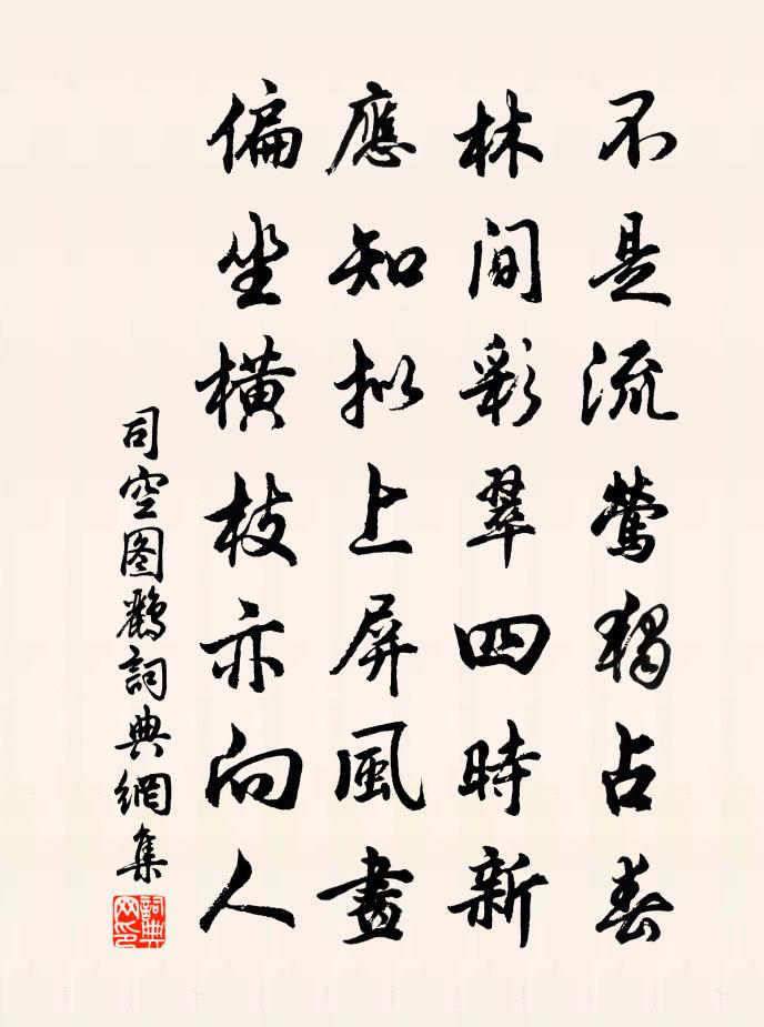 不是流鶯獨占春,林間彩翠四時新。應知擬上屏風畫,偏坐橫枝亦向人。