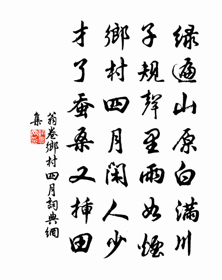 這首詩以清新明快的筆調,出神入化地描寫了江南農村初夏時節的旖旎風光,表達了詩人對鄉村生活的熱愛之情。前兩句寫自然景象。“綠”,寫樹木蔥鬱,“白”,寫水光映天。詩人從視覺角度著眼,描繪出明麗動人的山水色彩。第二句不僅以煙喻雨,寫出了江南梅雨特有的景致,而且以催耕的鳥聲,平添了無限的生機。後兩句寫農家的繁忙。“鄉村四月閒人少”一句,繪盡農家四月人繁忙的景象;而第四句以“蠶桑”照應首句的“綠遍山原”,以“插田”照應首句的“白滿川”,一個“才”和一個“又”兩個虛字極富表現力,不言“忙”而“忙”意自見。