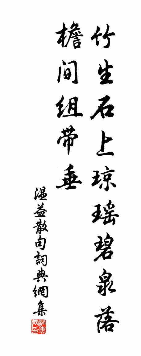 詩詞名句歷史字典書法欣賞書法字典國語詞典說文解字康熙字典古漢語字典標 題 作 者 詩 句 句作者:溫益 朝代:宋代句原文竹生石上瓊瑤碧,泉落檐間組帶垂。詩詞問答問:句的作者是誰?答:溫益問:句寫於哪個朝代?答:宋代溫益句書法欣賞句書法作品詩詞推薦蝶戀花(惜春)張震〔宋代〕梅子初青春已暮。芳草連雲,綠遍西池路。小院繡垂簾半舉。銜泥紫燕雙飛去。人在赤闌橋畔住。不解傷春,還解六州歌頌王野〔宋代〕龍蟠虎踞,今古帝王州。水如淮,山似洛,鳳來游。五雲浮。宇宙無終極,千載恨,六朝事,同一夢休。更莫問間寓淮陽驛二首張耒〔宋代〕悠揚短日下西牆,庭葉吟風作夕涼。客枕甚安無一事,鄰雞不用喚朝陽。初出城留別白居易〔唐代〕朝從紫禁歸,暮出青門去。勿言城東陌,便是江南路。揚鞭簇車馬,揮手辭親故。我生本無鄉,心安是歸處。予從元德弟借到西廊書齋朝夕其間今二年矣戲裘萬頃〔宋代〕朝來寮外望西山,正在雲煙縹緲間。既欲與山為保社,不妨身世似雲閒。上運管張平國華岳〔宋代〕大江南畔五松西,潘岳風流夢有詩。歸路經從定留挽,昔教父老見旌旗。與子上雪中入東園望春楊萬里〔宋代〕草草東園未整齊,卻於看雪最清奇。莫嫌蹈濕青鞋子,自有瓊瑤隔路泥。劉宗古畫過海壽星張鎡〔宋代〕南極煌煌山川精,輝明淵耀為天經。化成仙人渡滄溟,黑風不作魚龍腥。冉冉風氣如雲停,峨冠曳帶從竛竮。修髯韓漳州書報徹上人亡因寄二絕柳宗元〔唐代〕早歲京華聽越吟,聞君江海分逾深。他時若寫蘭亭會,莫畫高僧支道林。頻把瓊書出袖中,獨吟遺句立秋風。桂江寄林謙之黃公度〔宋代〕冰壺玉麈逼人寒,忽漫過逢豁肺肝。千載有人扶古道,一時傾蓋盡儒冠。不妨我輩詩腸在,要取他年酒量寬。萬卷述懷崔櫓〔唐代〕白首成何事,無歡可替悲。空餘酒中興,猶似少年時。鹽梅李龍高〔宋代〕世味明知可口難,到頭終不換寒酸。直須袖卻和羹手,何必貪居鼎鼐間。偈頌一百四十一首釋師範〔宋代〕二由一有,一亦莫守。新羅日午打三更,回首面南看北斗。堪悲堪笑,黃面禪和到處行腳,只管將鼻孔東邊嗅西邊夫差伍員陳普〔宋代〕載籍幾千年,相踵興亡跡。何國非自取,一一有來歷。亡必以失道,與必以有德。有德無不興,不在防寇賊。大綱雪後出遊戲作陸游〔宋代〕小巘平岡雪陸離,幽人又賦探春詩。典琴沽酒元非俗,著屐觀碑又一奇。大度乾坤容落托,多情風月笑衰遲。吾生鷓鴣天李之儀〔宋代〕收盡微風不見江,分明天水共澄光。由來好處輸閒地,堪嘆人生有底忙。心既遠,味偏長,須知粗布勝無裳。從今酬樂天晚夏閒居欲相訪先以詩見貽劉禹錫〔唐代〕池榭堪臨泛,翛然散鬱陶。步因驅鶴緩,吟為聽蟬高。林密添新竹,枝低縋晚桃。酒醅晴易熟,藥圃夏頻薅。老是浣溪沙韓淲〔宋代〕鴉矯荒寒燕復低。門前長草與人齊。長橋南畔小橋西。安得有詩同爾句,可教無酒泛其杯。相思常苦易離攜。謝真人還舊山范傳正〔唐代〕麾蓋從仙府,笙歌入舊山。水流丹灶缺,雲起草堂關。白鹿行為衛,青鸞舞自閒。種松鱗未立,移石蘚仍斑。望路滿江紅 仲庸集賢以冬日桃花並樂章贈漁莊公劉敏中〔元代〕探梅花時候,怯朝寒、倦說梅溪清淺。誰*玄都春一握,烘暖小齊冰硯。何意芳妍,如今又與,前度劉郎花。武陵名句推薦孤花片葉,斷送清秋節。納蘭性德《清平樂·孤花片葉》 分明小像沉香縷,一片傷心欲畫難。納蘭性德《於中好·送梁汾南還為題小影》 雖慚老圃秋容淡,且看黃花晚節香。韓琦《九日水閣》 教民禮順,莫善於悌。孔子及其弟子《孝經·廣要道》 遠牧牛,繞村四面禾黍稠。李涉《牧童詞》 如欲平治天下,當今之世,捨我其誰也。孟子《孟子·公孫丑章句下·第十三節》 不鏡於水,而鏡於人,則吉凶可鑑也王永彬《圍爐夜話·第五二則》 儒有博學而不窮,篤行而不倦戴聖《禮記·儒行》 輕解羅裳,獨上蘭舟。李清照《一剪梅·紅藕香殘玉簟秋》 梅子金黃杏子肥,麥花雪白菜花稀。范成大《四時田園雜興·其二》