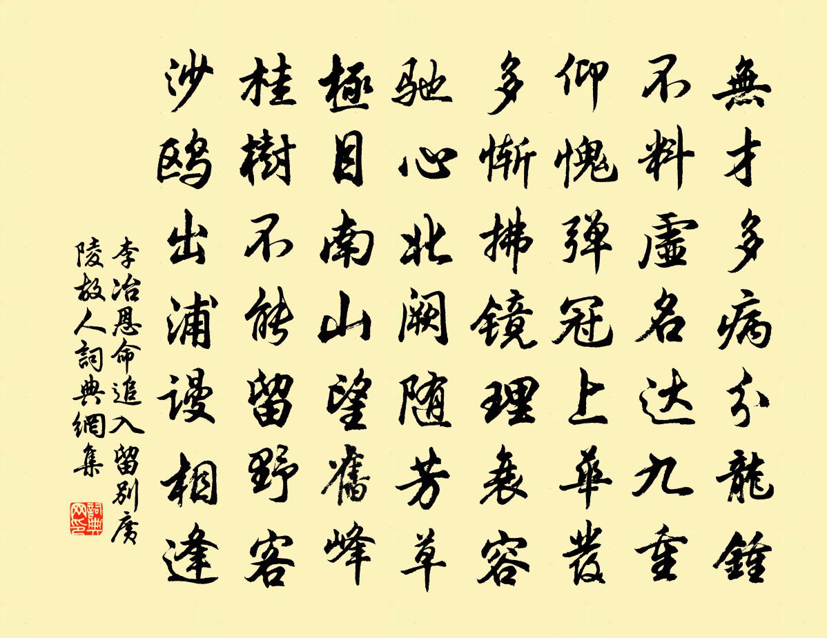 詩詞名句歷史字典書法欣賞書法字典國語詞典說文解字康熙字典古漢語字典標 題 作 者 詩 句 恩命追入,留別廣陵故人作者:李冶 朝代:唐代恩命追入,留別廣陵故人原文無才多病分龍鍾,不料虛名達九重。仰愧彈冠上華發,多慚拂鏡理衰容。馳心北闕隨芳草,極目南山望舊峰。桂樹不能留野客,沙鷗出浦謾相逢。詩詞問答問:恩命追入,留別廣陵故人的作者是誰?答:李冶問:恩命追入,留別廣陵故人寫於哪個朝代?答:唐代李冶恩命追入,留別廣陵故人書法欣賞恩命追入,留別廣陵故人書法作品注釋全唐詩:卷805-9詩詞推薦下第寄池州鄭員外杜荀鶴〔唐代〕省出蓬蒿修謁初,蒙知曾不見生疏。侯門數處將書薦,帝里經年借宅居。未必有詩堪諷誦,只憐無援過吹噓。如今題王敬仲野亭戴表元〔宋代〕王家野亭蒼翠邊,秋山萬疊相鉤連。披衣曉霽伴雲坐,散發夜涼須月眠。主人清豪亦好客,常有車蓋來翩翩。門間偈頌四十一首釋慧暉〔宋代〕禁足護生曲直中,安居收念又機杇。一爐香氣香滿室,黃面老師弄拙巧。念奴嬌俞國寶〔宋代〕雲收霧斂,過一番疏雨,秋容新沐。月滿巴山天似水,滿眼祥雲飛撲。一點長庚,瑞騰光彩,獨照梅仙屋。十洲三游建康碧瑤洞万俟紹之〔宋代〕洞口篔簹幾百竿,洞深襟袂易生寒。鹿眠桃塢春常在,鶴唳松梢夜未闌。瓦鼎香騰秋霧薄,石盤棋撒曉星殘。道人教授李夢符惠宣聖書像用韻奉酬陳傅良〔宋代〕一藝必有師,尚論襄與夔。一國必有師,尚論管與伊。信知師道尊,分與君父夷。吁嗟文王沒,斯文屬之誰。微言又用韻簡李深之文天祥〔宋代〕晚尊和月吸,早飯帶星炊。鵬鷃從高下,螳蟬任黠痴。水澄神自止,雲遠意俱馳。門外誰車馬,故人來課詩。句薛沆〔唐代〕也知別有風光主,花蕾枝枝似去年。次謁茶假寐之句洪皓〔宋代〕僻陋雖無車馬喧,支頤時復抱愁眠。我思蝶夢為園吏,君繼雲封作地仙。茶碗捧來休怨後,詩壇喔罷敢爭先。形如訪寂上人不遇皮日休〔唐代〕何處尋雲暫廢禪,客來還寄草堂眠。桂寒自落翻經案,石冷空消洗缽泉。爐里尚飄殘玉篆,龕中仍鎖小金仙。須將聯句越溪楊女〔唐代〕珠簾半床月,青竹滿林風。 ——楊女何事今宵景,無人解語同。 ——謝生感遇之七陳子昂〔唐代〕白日每不歸。青陽時暮矣。茫茫吾何思。林臥觀無始。眾芳委時晦。鶗鴂鳴悲耳。鴻荒古已頹。誰識巢居子。舟中夜坐戴復古〔宋代〕獨坐觀星斗,一襟秋思長。天河司米價,太乙照時康。月浦孤帆過,風荷一路香。持杯問舟子,今夜宿誰鄉。獨坐看海棠二絕王柏〔宋代〕萬翠千紅各賦形,源源生意到春深。誰開錦帳藏妖艷,應是東皇有盪心。省中橋亭即事項安世〔宋代〕虞閣跨芳沼,陰溪生綠苔。雨晴梅子長,春過芍花開。坐久談微縱,情深首重回。最憐清蔭里,時有細香來。丹青閣胡仲弓〔宋代〕紫芝峰上一憑欄,菸草茫茫天地寬。眼界已隨流水去,丹青無復舊時看。虛飄飄曹勛〔宋代〕虛飄飄,虛飄飄。禹門 * 浪,仙子百花橋,雪霙輕作霰,檐溜凍成條。遊絲千尺綱春色,掣電一抹收遠霄。虛飄題馬遠畫梅四幅楊娃〔宋代〕夭桃艷杏豈相同,紅潤姿容冷淡中。披拂輕煙何所似,動人春色碧紗籠。題洪景伯分繡閣蔡向〔宋代〕傑閣橫空爽氣收,一時勝概壓岩幽。要將繡嶺匿峰色,分入霞城棲月樓。雌霓掛檐供彩筆,雄風拂面快金甌。才華華山畿·啼相憶佚名〔南北朝〕啼相憶,淚如漏刻水,晝夜流不息。名句推薦欹枕數秋天,蟾蜍下早弦。納蘭性德《菩薩蠻·蕭蕭幾葉風兼雨》 春朝物候妍,愁婦鏡台前。鄭愔《春怨》 美女渭橋東,春還事蠶作。李白《陌上桑》 後不乏人,榮之方久,賢者自苦亦惠嗣。來俊臣《羅織經·固榮卷第六》 年華共,混同江水,流去幾時回納蘭性德《滿庭芳·堠雪翻鴉》 易其田疇,薄其稅斂,民可使富也。孟子《孟子·盡心章句上·第二十三節》 戒慎乎其所不睹,恐懼乎其所不聞。子思《禮記·中庸》 憐君片雲思,一棹去瀟湘。杜牧《送薛種游湖南》 乍聽得、鴉啼鶯弄,惹起新愁無限。呂渭老《薄倖·青樓春晚》 心無備慮,不可以應卒。墨子《墨子·05章 七患》