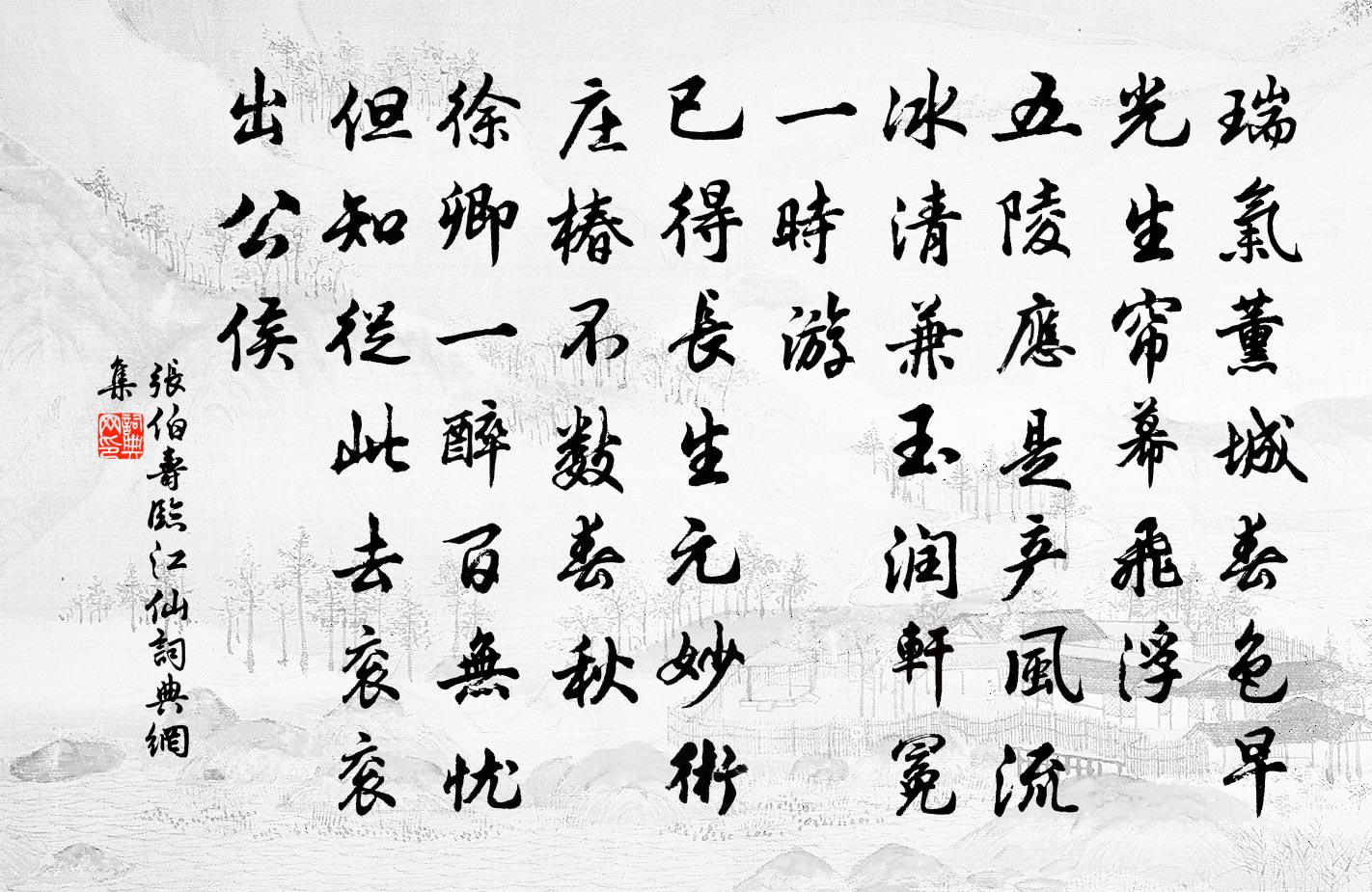 詩詞名句歷史字典書法欣賞書法字典國語詞典說文解字康熙字典古漢語字典標 題 作 者 詩 句 臨江仙作者:張伯壽 朝代:宋代臨江仙原文瑞氣薰城春色早,光生簾幕飛浮。五陵應是產風流。冰清兼玉潤,軒冕一時游。已得長生元妙術,莊椿不數春秋。徐卿一醉百無憂。但知從此去,袞袞出公侯。詩詞問答問:臨江仙的作者是誰?答:張伯壽問:臨江仙寫於哪個朝代?答:宋代問:臨江仙是什麼體裁?答:詞張伯壽臨江仙書法欣賞臨江仙書法作品詩詞推薦華山高楊維楨〔元代〕思美人兮西華山,我欲往兮如天難。上通帝座二氣之呼吸,下沖龍門百折之崑崙源。秦關桃林之寒贔屭於其左兮,過在伯於學中趙蕃〔宋代〕曉出城南日映光,水煙橫堆樹煙長。多聞政欲從君語,造請寧能遣我忙。勝可作亭攄意匠,醉因種竹試傳方。規摹莊子引野語佚名〔先秦〕聞道百以為莫已若。眾人重利。廉士重名。賢士尚志。聖人貴精。和甲辱秋夜讀書有感韻孫應時〔宋代〕物結相尋來,世事不足嘆。侯早知春秋,宿鳥各昏旦。百年相勞苦,且復加餐飯。堂堂白日在,擾擾浮雲散。詩書陳推官幽居十詠重湖泛月王炎〔宋代〕四顧水光無際,自操一葉輕舟。天闊冰輪欲墮,短橈猶在中流。對雪送花走筆況之韓維〔宋代〕春陰黯黯壓城低,亂撲簾帷細點衣。梅蕊更寒猶競發,楊花未暖忽先飛。便思樽酒陪公議,敢望笙歌近使威。絕景次韻王君北都偶成三首蘇轍〔宋代〕河轉金堤近,天高魏闕新。千夫奉儒將,百獸伏麒麟。校獵沙場莫,談兵玉帳春。關南知不遠,誰試問蕃鄰。天寶和剡縣陳明府登縣樓方乾〔唐代〕郭里人家如掌上,檐前樹木映窗欞。煙霞若接天台地,分野應侵婺女星。驛路古今通北闕,仙溪日夜入東溟。彩衣乞紙寄諸葛桂隱白玉蟾〔宋代〕翰墨膏肓二十年,才親筆硯便垂涎。東陽魚卵寒霜幅,嵊縣溪藤妙雪箋。一日禿除千兔穎,霎時磨盡萬松煙。洛陽宣城哭蔣征君華李白〔唐代〕敬亭埋玉樹,知是蔣征君。安得相如草,空餘封禪文。池台空有月,詞賦舊凌雲。獨掛延陵劍,千秋在古墳。鷓鴣天(家居日壽詞)鄒應博〔宋代〕十月二十一日,吾母太淑人生日也。今年九十,仰荷乾坤垂佑,賜以福壽康寧,願益加景覆,令其耳目聰明,手足題時覺寺在在堂十二首舒坦〔宋代〕四山面面玉成圍,只許閒雲去又歸。更有小軒人不到,落花狼籍點苔衣。送客歸峽中(一作將赴京師,津亭別蕭處士)許渾〔唐代〕津亭多別離,楊柳半無枝。住接猿啼處,行逢雁過時。江風颺帆急,山月下樓遲。還就西齋宿,煙波勞夢思。春日六絕句楊萬里〔宋代〕遠目隨天去,斜陽著樹明。犬知何處吠,人在半山行。陳安行舍人閣學輓詞三首楊萬里〔宋代〕循吏今為冠,高文妙草麻。龔黃低一著,班左共三家。風度春無價,身名玉絕瑕。可憐人士淚,滴損紫薇花。秋懷十首趙蕃〔宋代〕吁嗟古詩人,達少窮則多。定逢造物嗔,故此成折磨。懷哉興化令,累然蓬一窠。融州計官滿,歸日定如何。青紫峰亭錢益〔宋代〕壯歲事遠遊,衰齡守鄉井。閒看舊遊地,偶陟黃旗嶺。因登青紫峰,雙目肆遐騁。孤亭倚山巔,當午風日冷。憑欄春日二首曾幾〔宋代〕期頤三萬日,政爾亦無多。佳節已如許,衰年將若何。雨風增落寞,戚友斷經過。問訊庖廚內,猶堪一洗磨。殘春感事十首方回〔宋代〕登高高處望,萬嶂一溪橫。不滿千家市,今休十載兵。訓狐號永夜,猛虎迫荒城。此亦關人事,憂端未易平。偈頌四十二首釋祖先〔宋代〕常獨行,常獨步。咄,莫來攔我毬門路。名句推薦四十年來家國,三千里地山河李煜《破陣子·四十年來家國》 碧玉妝成一樹高,萬條垂下綠絲絛。賀知章《詠柳 / 柳枝詞》 晚食以當肉,安步以當車劉向《戰國策·齊四·齊宣王見顏斶》 呼兒將出換美酒,與爾同銷萬古愁。李白《將進酒》 非我族類,其心必異。左丘明《左傳·成公·成公四年》 一言足以召大禍,故古人守口如瓶,惟恐其覆墜也王永彬《圍爐夜話·第四八則》 嘆息此人去,蕭條徐泗空李白《經下邳圯橋懷張子房》 風無纖埃,雨無微津。左思《三都賦》 白酒新熟山中歸,黃雞啄黍秋正肥。李白《南陵別兒童入京》 一切都是命,半點不由人。佚名《增廣賢文·上集》