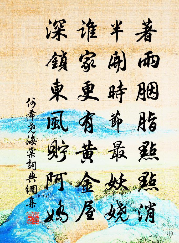詩詞名句歷史字典書法欣賞書法字典國語詞典說文解字康熙字典古漢語字典標 題 作 者 詩 句 海棠作者:何希堯 朝代:唐代海棠原文著雨胭脂點點消,半開時節最妖嬈。誰家更有黃金屋,深鎖東風貯阿嬌。詩詞問答問:海棠的作者是誰?答:何希堯問:海棠寫於哪個朝代?答:唐代問:海棠是什麼體裁?答:七絕何希堯海棠書法欣賞海棠書法作品注釋全唐詩:卷505-28詩詞推薦登快哉亭有屬賀鑄〔宋代〕南浦東風拂水文,汀洲芳草綠羅裙。桃花舊葉應相望,楊葉新聲我獨聞。酸鼻可憐香欲絕,斷腸不待酒初醺。斜陽使東川。嘉陵驛二首(篇末有懷)元稹〔唐代〕嘉陵驛上空床客,一夜嘉陵江水聲。仍對牆南滿山樹,野花撩亂月朧明。牆外花枝壓短牆,月明還照半張床。無人昭武太守王子文日舉李賈嚴羽共觀前輩一兩家戴復古〔宋代〕作詩不與作文比,以韻成章怕韻虛。押得韻來如砥柱,動移不得見工夫。柳梢青石孝友〔宋代〕雲髻盤鴉。眉山遠翠,臉暈微霞。燕子泥香,鵝兒酒暖,曾見來那。秋光已著黃花。又恰恨、尊前見他。越樣風流同諸公登慈恩寺塔杜甫〔唐代〕高標跨蒼天,烈風無時休。自非曠士懷,登茲翻百憂。方知象教力,足可追冥搜。仰穿龍蛇窟,始出枝撐幽。七星靈岩上方周弼〔宋代〕嵯峨樓觀青山頭,昔曾避暑離宮游。吳天旌旆墮冥漠,至今古木涵清秋。誰聽白紵歌聲接,細撲飛塵石榴葉。銀燭續長恨歌范成大〔宋代〕紫薇金屋閉春陽,石竹山花卻自芳。莫道故情無覓處,領巾猶有隔生香。雜詠一百首龐公劉克莊〔宋代〕采芭棲遲穩,燃萁篡奪危。景升不受子,卻念德公兒。嘏辭先秦無名〔先秦〕皇屍命工祝。承致多福無疆。於女孝孫。來女孝孫。使女受祿於天。宜稼于田。眉壽萬年。笏替引之。蘇源明徐鈞〔宋代〕滿朝比比拜邊塵,偽命難污守節臣。褒賞但令知制誥,如何只待作文人。涌雲鄧深〔宋代〕溪神騁技天公拙,非雪之雪白於雪。倚欄小立不禁寒,卻願天日長炎熱。和郭主簿 其一陶淵明〔魏晉〕藹藹堂前林,中夏貯清陰;凱風因時來,回飆開我襟。息交遊閒業,臥起弄書琴。園蔬有餘滋,舊谷猶儲今。營己杜甫引俚語佚名〔唐代〕城南韋杜,去天尺五。郊廟歌辭。儀坤廟樂章。舒和胡雄〔唐代〕送文迎武遞參差,一始一終光聖儀。四海生人歌有慶,千齡孝享肅無虧。次韻子瞻和淵明擬古九首蘇轍〔宋代〕佛法行中原,儒者恥論茲。功施冥冥中,亦何負當時。此方舊雜染,渾渾無名緇。治生守家室,坐使斯人疑。未知元夕端居感事四絕句張舜民〔宋代〕珠簾當面見玲瓏,白鶴仙人上下通。夜半蕊珠重命宴,鳴鞘聲落九霄中。凌霄花為復上人作趙東閣〔宋代〕裊裊枯藤淺絳葩,夤緣直上照殘霞。老僧不作依附想,將謂青松自有花。和張公望苦熱韻姚勉〔宋代〕火傘停空更不移,此身如著甑中炊。蠅方附熱爭投案,蟬欲追涼別過枝。靜話竹窗煎雪浪,倦投水館臥風漪。渠儂招韓武康章皎然〔唐代〕山僧雖不飲,酤酒引陶潛。此意無人別,多為俗士嫌。賢者之孝二百四十首東海王疆林同〔宋代〕史以太伯比,斯評恐未真。我知東海意,不忍母他人。名句推薦寧為百夫長,勝作一書生。楊炯《從軍行》 君子之澤五世而斬孟子《孟子·離婁章句下·第二十二節》 得時無怠,時不再來,天予不取,反為之災。左丘明《國語·越語·越興師伐吳而弗與戰》 不覺新涼似水,相思兩鬢如霜。劉辰翁《西江月·新秋寫興》 玉樹歌殘猶有曲,錦帆歸去已無家。曾棨《維揚懷古》 君馬黃,我馬白。李白《君馬黃》 狡兔有三窟,僅得免其死耳。劉向《戰國策·齊四·齊人有馮諼者》 四月十七,正是去年今日,別君時。韋莊《女冠子·四月十七》 歲月騖過,山陵浸遠范曄《後漢書·列傳·光武十王列傳》 夜來風雨聲,花落知多少。孟浩然《春曉》