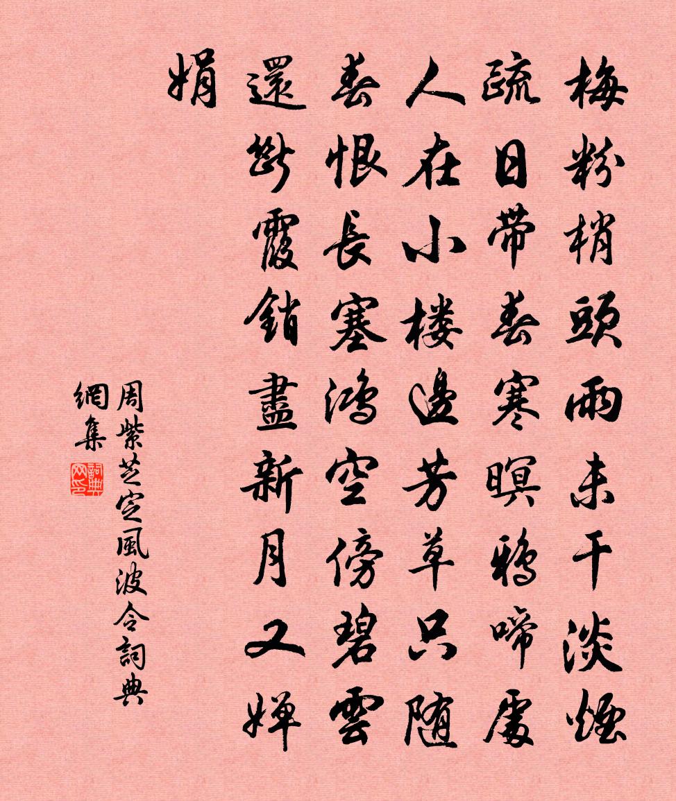 梅粉梢頭雨未乾。淡煙疏日帶春寒。暝鴉啼處,人在小樓邊。