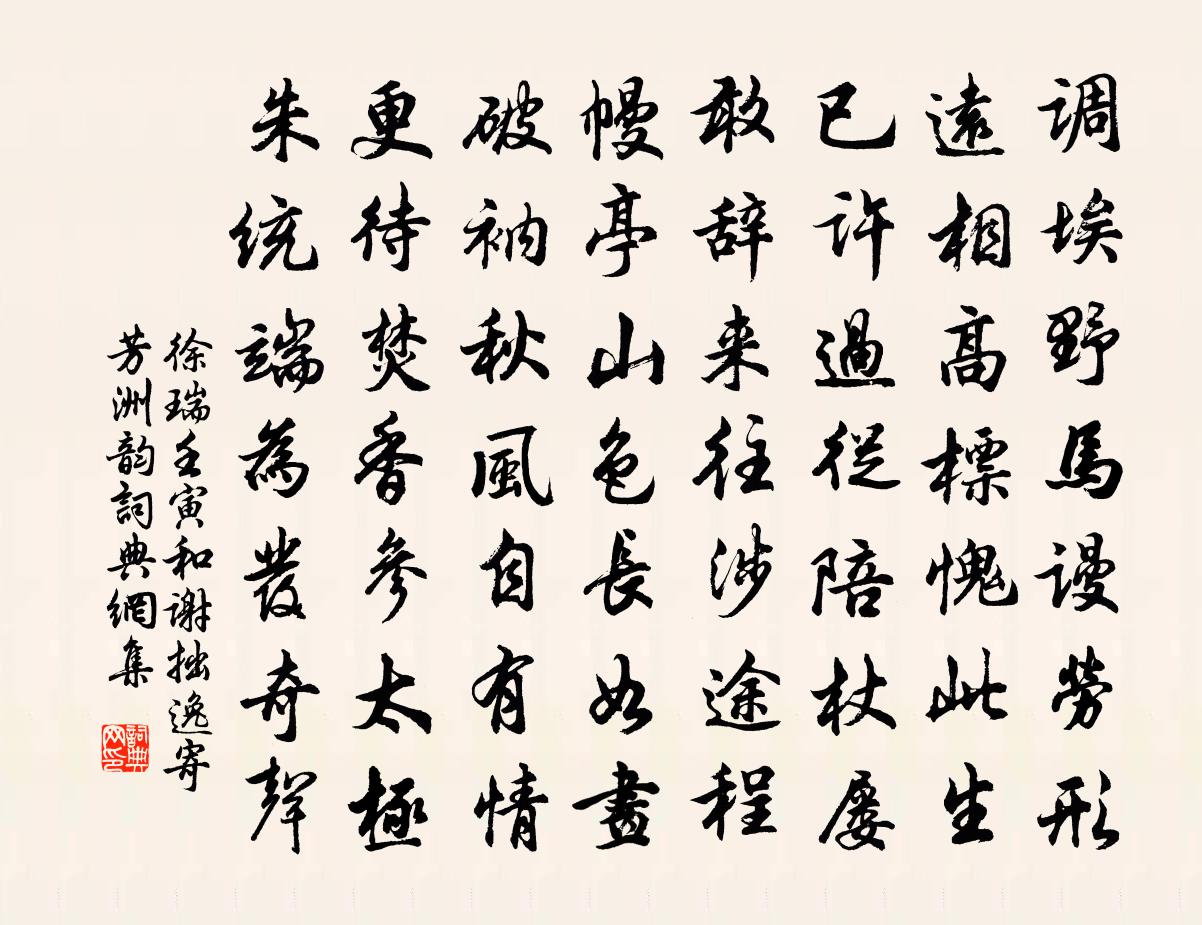 詩詞名句歷史字典書法欣賞書法字典國語詞典說文解字康熙字典古漢語字典標 題 作 者 詩 句 壬寅和謝拙逸寄芳洲韻作者:徐瑞 朝代:宋代壬寅和謝拙逸寄芳洲韻原文調埃野馬謾勞形,遠相高標愧此生。已許過從陪杖屢,敢辭來往涉途程。幔亭山色長如畫,破衲秋風自有情。更待焚香參太極,朱統端為發奇聲。詩詞問答問:壬寅和謝拙逸寄芳洲韻的作者是誰?答:徐瑞問:壬寅和謝拙逸寄芳洲韻寫於哪個朝代?答:宋代徐瑞壬寅和謝拙逸寄芳洲韻書法欣賞壬寅和謝拙逸寄芳洲韻書法作品詩詞推薦和富公權宗丞十站王之道〔宋代〕閒想當年嘯詠聲,一時人物斗崢嶸。江山清壯今猶昔,文謂丹青畫不成。送一老住廬山歸宗樓鑰〔宋代〕歸宗法窟寖湮微,拭眼餘風靡孑遺。法鼓一聲精彩變,要如光弼用軍時。水調歌頭(送制參向君玉歸里)李曾伯〔宋代〕薄酒長亭別,飽飯故園歸。兩年婉婉席上,甘苦每同之。騄驥群中獨步,糜鹿興前不瞬,孰可與爭馳。力挽不能寸初到廬山喻良能〔宋代〕匡廬山水甲南州,況是曾經靖節游。眼底總堪供賦詠,新詩不礙細雕鎪。題凝祥觀文天祥〔宋代〕前路風塵走且僵,我來一日此徜徉。歐公自是游嵩觀,迂叟原非過太行。始信神仙還有國,不知蠻觸是何鄉。世間春晚雜興十二首方回〔宋代〕芳草茸茸沒屨深,清和天氣潤園林。霏微小雨初晴處,暗數青梅立樹陰。野航蘇泂〔宋代〕山青水綠思悠悠,幾處灘頭復渡頭。任是無人競來往,不妨終日自橫舟。漫興張元乾〔宋代〕老答書題懶,貧營口腹忙。未能忘壯志,詎肯變剛腸。晷短催寒急,燈明伴漏長。床頭褚衾在,不怕滿檐霜。頌一百則釋重顯〔宋代〕雙收雙放若為宗,騎虎由來要絕功。笑罷不知何處去,只應千古動悲風。韓乾馬蘇軾〔宋代〕少陵翰墨無形畫,韓乾丹青不語詩。此畫此詩真已矣,人間駑驥漫爭馳。和清源太保寄湖州潘郎中徐鉉〔唐代〕老大離群一倍愁,谿山風物且淹留。{左酉右昷}成春酒誰斟酌,抄得新書自校讎。莫似牧之矜曠達,須教子重讓望淮山硤石寺予幼年過此今十載矣張耒〔宋代〕十年落泊竟何成,人事紛紛幾廢興。今日扁舟淮上去,青山似與客相迎。漢宮春周紫芝〔宋代〕然如身在孤山,雪後園林、水邊籬落,使人神氣俱清。又明日,乃作此詞歌於妙香寮中,亦仆西來一可喜事也香滿朝中措元好問〔金代〕簾旌烘日繡波翻。霜曉試輕寒。高宴黃堂初啟,雲外列仙班。晝明麗錦,香浮寶鴨,身在蓬山。三見揚塵滄海,春愁台王安石〔宋代〕頹垣斷漸有平沙,老木荒榛 * 家。河勢東南吹地坼,天形西北倚城斜。傾壺語罷還登眺,岸幘詩成卻嘆嗟。萬事木犀史彌寧〔宋代〕壽藤伴我倚秋風,老去無詩意轉慵。只是看花非覓句,清香錯認惱沖龍。醉余再賦真山民〔宋代〕堪嘆詩翁酒興豪,醉余猶復一登高。西風抵死相搖撼,爭奈儒冠裹得牢。奉和始平公酬大將佩和吳侍郎司馬光〔宋代〕道盛經綸業,文高翰墨場。雍容偃藩地,密邇釣璜鄉。回首紅塵遠,清心白日長。山形抱城堞,豀影照公堂。{左傷秦姝行劉禹錫〔唐代〕長安二月花滿城,插花女兒彈銀箏。南宮仙郎下朝晚,曲頭駐馬聞新聲。馬蹄逶遲心蕩漾,高樓已遠猶頻望。此時冬夜答客鮑溶〔唐代〕冬日誠可愛,不如夜漏多。幸君霜露里,車馬犯寒過。學耕不逢年,稂莠敗黍禾。豈唯親賓散,鳥鼠移巢窠。獨見名句推薦送數聲驚雁,下離煙水,嘹唳度寒雲。孔夷《南浦·旅懷》 方慚不耕者,祿食出閭里。韋應物《觀田家》 白首相知猶按劍,朱門先達笑彈冠。王維《酌酒與裴迪》 若是前生未有緣,待重結、來生願。樂婉《卜運算元·答施》 見出以知入,觀往以知來列子及其弟子《列子·說符》 拜華星之墜幾,約明月之浮槎。文天祥《回董提舉中秋請宴啟》 激氣已能驅粉黛,舉杯便可吞吳越。史達祖《滿江紅·中秋夜潮》 吃著碗裡看著鍋里曹雪芹《紅樓夢·第十六回》 樓上幾日春寒,簾垂四面,玉闌乾慵倚。李清照《念奴嬌·春情》 風雨淒淒,雞鳴喈喈。佚名《風雨》
