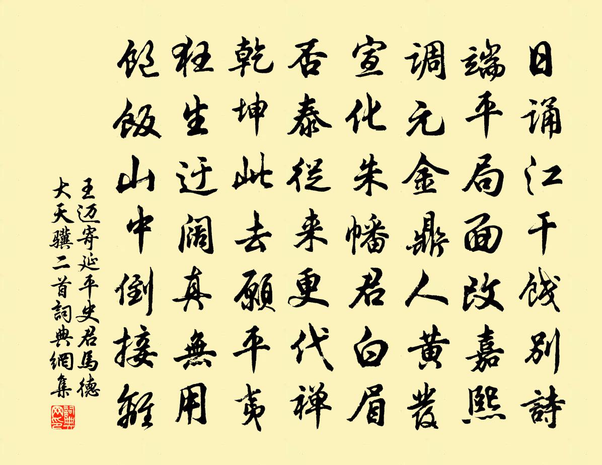 詩詞名句歷史字典書法欣賞書法字典國語詞典說文解字康熙字典古漢語字典標 題 作 者 詩 句 寄延平史君馬德大天驥二首作者:王邁 朝代:宋代寄延平史君馬德大天驥二首原文日誦江乾餞別詩,端平局面改嘉熙。調元金鼎人黃髮,宣化朱幡君白眉。否泰從來更代禪,乾坤此去願平夷。狂生迂闊真無用,飽飯山中倒接離。詩詞問答問:寄延平史君馬德大天驥二首的作者是誰?答:王邁問:寄延平史君馬德大天驥二首寫於哪個朝代?答:宋代王邁寄延平史君馬德大天驥二首書法欣賞寄延平史君馬德大天驥二首書法作品詩詞推薦後秋思五言五首方回〔宋代〕詩與風騷迫,文兼史漢長。半山非不爾,僻學汴梁亡。易水辭白玉蟾〔宋代〕天為燕丹畜趙高,風鳴易水止荊軻。不令劉季身秦怨,卻速吳陳此水過。秦王環柱劉光急,尺八匕首手死執。伊獨洞庭寄所思趙嘏〔唐代〕目斷蘭台空望歸,錦衾香冷夢來稀。書中空有刀頭約,天上頻看破鏡飛。孤浪謾疑回笑臉,輕雲忽似舞羅衣。遙知點絳唇(餞劉恭父)張孝祥〔宋代〕綺燕高張,玉潭月麗玻璃滿。旆霞行卷。無復長安遠。夏木陰陰,路裊薰風轉。空留戀。細吹銀管。別意隨聲緩。挽張世英母夫人陳棣〔宋代〕異鄉萍梗寄生涯,朝露俄驚嘆落花。蒿里歌傳風正慘,萱堂香冷月空斜。魂歸故國三千里,地卜高原一萬家。明日偈公六十五首釋鹹傑〔宋代〕諸佛不說說,祖師不聞聞。留下一轉語,千古鎮乾坤。夜行宿湖頭寺陸游〔宋代〕臥載籃輿黃葉村,疏鍾杳杳隔溪聞。清霜十里伴微月,斷雁半行穿亂雲。去國不堪心破碎,平戎空有膽輪囷。泗濱游靈岩鮮于侁〔宋代〕千峰環郡宇,二水繞城堞。每憐山水佳,況復開岩穴。川流數里近,放棹攀巀嵲。靈岩駭神化,環陰數畝闊。何人宮詞宋白〔宋代〕春宵宮女著春綃,鈴索無風自動搖。晝下珠口簾猧子睡,紅蕉窠下對芭蕉。僧房避暑嚴維〔唐代〕支公好閒寂,庭宇愛林篁。幽曠無煩暑,恬和不可量。蕙風清水殿,荷氣雜天香。明月談空坐,怡然道術忘。贊護教釋印肅〔宋代〕以南權正,無心應物。威德標宗,不可輕忽。頌古一百則釋正覺〔宋代〕痴兒刻意止啼錢,良駟追風顧影鞭。雲掃長空巢月鶴,寒清入骨不成眠。頌證道歌證道歌釋印肅〔宋代〕利物應機終不吝,毗耶假說眾生病。眾生了病即通光,領取舊持元本柄。又登碧雲亭感懷三十首吳芾〔宋代〕晚上危亭顧四隅,小松環繞幾千株。他年黛色侵天去,應記栽時是老夫。塞上王操〔宋代〕無定河邊路,風高雪灑春。沙平寬似海,鵰遠立如人。絕域居中土,多年息戰塵。邊城吹暮角,久客自悲辛。晚興陸游〔宋代〕斸芋挑蔬自鬻羹,雪檐收滴暮寒生。不嫌終日無來客,時聽荒園斫木聲。辛酉歲冬十一月隨駕幸岐下作韓偓〔唐代〕曳裾談笑殿西頭,忽聽征鐃從冕旒。鳳蓋行時移紫氣,鸞旗駐處認皇州。曉題御服頒群吏,夜發宮嬪詔列侯。雨露再用前韻簡丁端叔陳傅良〔宋代〕閉關饒著一丸泥,我亦前扳更後躋。四海弟兄君看取,苛風不斷雁行齊。菊節宿白沙次友人韻姚勉〔宋代〕野市難為側帽紗,家山猶遠雪鷗沙。退之尚有衣堪準,悔不留君醉菊花。訴衷情楊 * 〔宋代〕侵晨呵手怯清霜。閒寫兩三行。都將舊遊新恨,收拾入行裝。人乍別,路尤長。漫嗟傷。不如歸去,只者溫柔,便名句推薦故國神遊,多情應笑我,早生華髮。蘇軾《念奴嬌·赤壁懷古》 頑老情懷,都無歡事,良宵愛幽獨。吳文英《一寸金·秋感》 若說沒奇緣,今生偏又遇著他,若說有奇緣,如何心事終虛化?曹雪芹《紅樓夢·第五回》 赤闌橋盡香街直,籠街細柳嬌無力。陳克《菩薩蠻·赤闌橋盡香街直》 日日深杯酒滿,朝朝小圃花開。朱敦儒《西江月·日日深杯酒滿》 借問漢宮誰得似,可憐飛燕倚新妝。李白《清平調·其二》 池館隳摧古榭荒,此延嘉客會重陽。韓琦《九日水閣》 秋霜欲下手先知,燈底裁縫剪刀冷。白居易《空閨怨》 霖雨泥我塗,流潦浩縱橫。曹植《贈白馬王彪·並序》 君為女蘿草,妾作菟絲花。李白《古意》