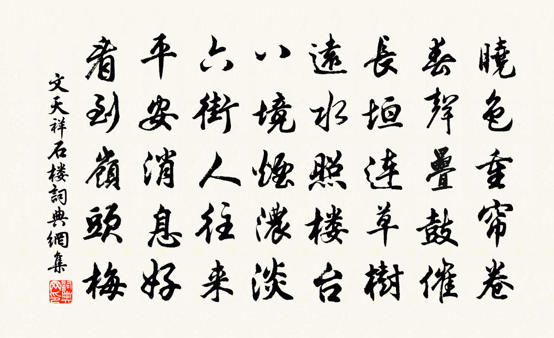 曉色重簾卷,春聲疊鼓催。長垣連草樹,遠水照樓台。