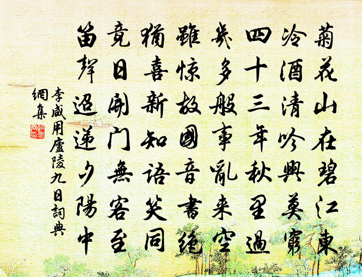- 木葉紛紛下,東南日煙霜。劉昚虛《暮秋揚子江寄孟浩然》