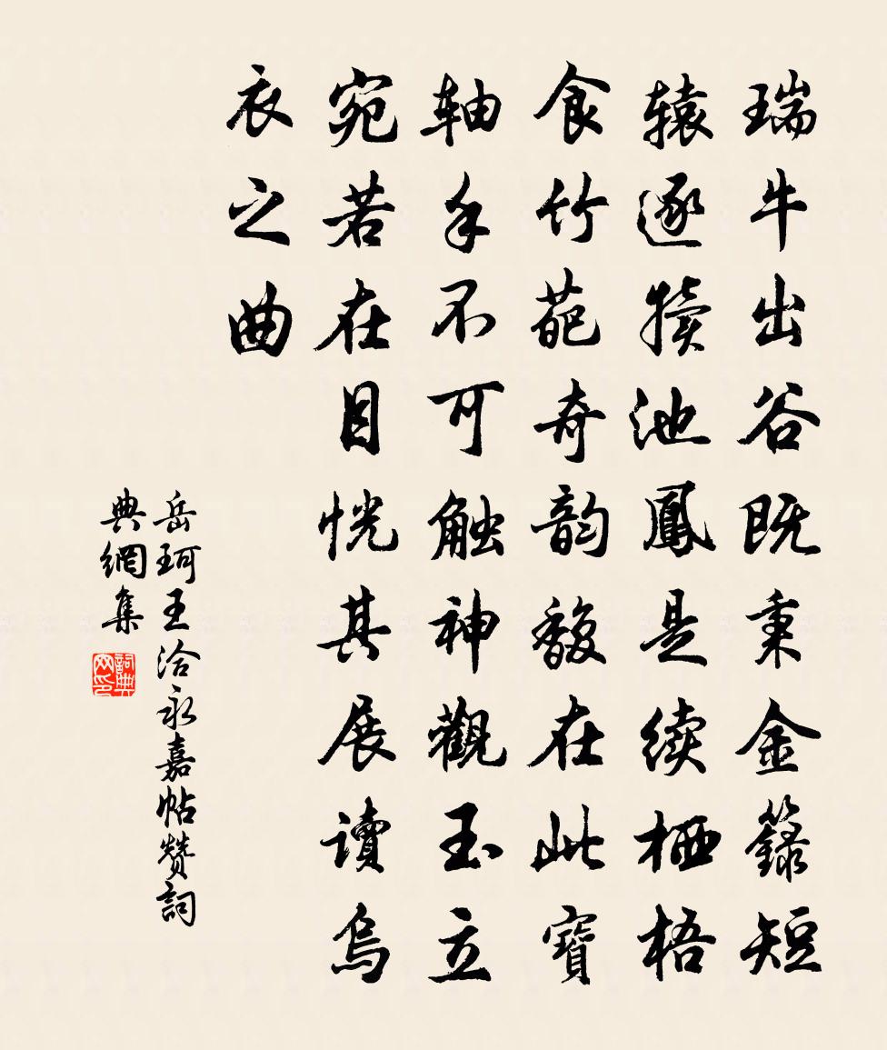 詩詞名句歷史字典書法欣賞書法字典國語詞典說文解字康熙字典古漢語字典標 題 作 者 詩 句 王洽永嘉帖贊作者:岳珂 朝代:宋代王洽永嘉帖贊原文瑞牛出谷,既秉金籙。短轅逐犢,池鳳是續。棲梧食竹,葩奇韻馥。在此寶軸,手不可觸。神觀玉立,宛若在目。恍其展讀,烏衣之曲。詩詞問答問:王洽永嘉帖贊的作者是誰?答:岳珂問:王洽永嘉帖贊寫於哪個朝代?答:宋代岳珂王洽永嘉帖贊書法欣賞王洽永嘉帖贊書法作品詩詞推薦至啟伏蒙台慈以南至之後見寄佳篇豈曰奉酬輒李至〔宋代〕流年冉冉不曾停,合向勞生養道情。萬物已憐成復象,一陽還見動勾萌。南躔日轉階前影,北陸風吹枝杪聲。看即鷓鴣天王安中〔宋代〕茜霧紅雲捧建章。鳴珂星使渡銀潢。親將聖主如絲語,傳與陪都振鷺行。香裊裊,佩鏘鏘。昇平歌管趁飛觴。明時歸途次韻黃彥平〔宋代〕霏戲點點胭脂雨,唾碧濺濺罨畫溪。送客歸來問山館,一聲啼鳥日平西。同道損世則元輔游西湖於卞氏借雙鶴以觀梅堯臣〔宋代〕塘蒲蔭綠水,菡萏艷修渚。想像華亭野,但欠鳴鶴侶。同來三四人,趣向頗相與。思見此清禽,無能覿翔羽。城隅和遠老四首吳芾〔宋代〕世人老去不知休,只羨三公與五侯。爭似山僧都不會,困來衲被便蒙頭。秋晚即事三首李彌遜〔宋代〕華發鬅鬙一榻書,舟移斜日到籧篨。似聞載酒江邊寺,更倒青錢留白魚。卜居蘇轍〔宋代〕我歸萬里初無宅,鳳去千年尚有台。誰為繞池先種竹,可憐當砌已栽梅。囊資只數腰金在,歸計長遭鬢雪催。欲就武夷精舍十詠隱屏精舍袁樞〔宋代〕先生出雲谷,看盡東南山。吳越幾往來,衡廬屢躋攀。恨無璚瑤英,駐此冰雪顏。有懷武夷仙,相期蒼翠間。俠客行·朝入主人門何景明〔明代〕朝入主人門,暮入主人門,思殺主讎謝主恩。主人張鐙夜開宴,千金為壽百金餞。秋堂露下月出高,起視廄中有駿題虢州西樓岑參〔唐代〕錯料一生事,蹉跎今白頭。縱橫皆失計,妻子也堪羞。明主雖然棄,丹心亦未休。愁來無去處,只上郡西樓。湖上寓居雜詠 其十二姜夔〔宋代〕釣窗不忍見南山,下有三雛骨未寒。惆悵古今同此味,二陵風雨晉師還。慶文公八十會口號司馬光〔宋代〕元勛茂德古無倫,海內高間第一人。台席已酬調鼎志,磻溪還作釣魚身。師臣首冠三旌貴,歲歷行開九十新。願過方叔元振元老同令侄舍人見訪姜特立〔宋代〕聯翩三鳳接華裀,小阮驅車復後塵。嵇呂相思千古事,後來命駕更無人。古今豪逸自放之士鮮不嗜酒胡寅〔宋代〕美祿無過酒,星泉奠兩儀。端由皆作聖,意趣少人知。肇命惟元祀,迎春祝壽祺。功深資藥石,力厚起疲贏。若羨賀吳繼仲母氏生日王炎〔宋代〕青都仙子玉鏈顏,五雲深處乘青鸞。桃花欲實王母老,桂花半落嫦娥寒。芝英瓊蕊薄滋味,絳霄倒景窺人間。風微題汪水雲詩卷十一首劉師復〔宋代〕天造西湖錦繡堆,柳邊漁父小篷開。能言景定年間事,公主鸞簫錦櫂來。苔徐夤〔唐代〕印留麋鹿野禽蹤,岩壁漁磯幾處逢。金谷曉凝花影重,章華春映柳陰濃。石橋羽客遺前跡,陳閣才人沒舊容。歸去讀史感興黃文雷〔宋代〕空山有大木,琅玕葉敷腴。末至更摧落,豈復潤朽株。東西四百載,天明拱黃圖。哀哀李杜死,諸賢亦淪胥。庸蜀用伯修韻迓虞提刑洪咨夔〔宋代〕從來圖易必思艱,運甓工夫莫放閒。萬里功名終竟在,百年元氣早須還。安危著眼棋枰外,中否留心弩括間。寄似聽航船歌十首方回〔宋代〕家住斜塘大戶邊,時荒米貴欠他錢。從此駕船歸不得,無錢且駕小航船。名句推薦遊人記得承平事,暗喜風光似昔年。韋莊《長安清明》 袨服華妝著處逢,六街燈火鬧兒童。元好問《京都元夕》 何當載酒來,共醉重陽節。孟浩然《秋登蘭山寄張五》 柳色黃金嫩,梨花白雪香。李白《宮中行樂詞八首》 使人有乍交之歡,不若使人無久處之厭。陳繼儒《小窗幽記·集醒篇》 一人飛升,仙及雞犬。蒲松齡《聊齋志異·卷四·促織》 雲雨朝還暮,煙花春復秋。李珣《巫山一段雲·古廟依青嶂》 治民者,禁奸於未萌。韓非及後人《韓非子·心度》 山城過雨百花盡,榕葉滿庭鶯亂啼。柳宗元《柳州二月榕葉落盡偶題》 君子不鏡於水,而鏡於人。鏡於水,見面之容;鏡於人,則知吉與凶。墨子《墨子·18章 非攻(中)》