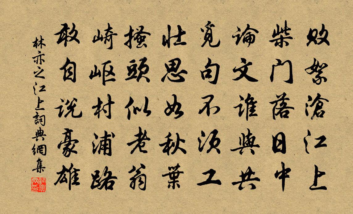 詩詞名句歷史字典書法欣賞書法字典國語詞典說文解字康熙字典古漢語字典標 題 作 者 詩 句 江上作者:林亦之 朝代:宋代江上原文敗絮滄江上,柴門落日中。論文誰與共,覓句不須工。壯思如秋葉,搔頭似老翁。崎嶇村浦路,敢自說豪雄。詩詞問答問:江上的作者是誰?答:林亦之問:江上寫於哪個朝代?答:宋代林亦之江上書法欣賞江上書法作品詩詞推薦題破山寺後禪院常建〔唐代〕清晨入古寺,初日照高林。竹徑通幽處,禪房花木深。山光悅鳥性,潭影空人心。萬籟此俱寂,但余鐘磬聲。十月初七日山中感興舒岳祥〔宋代〕日暮空歸里,時艱未到家。稼收遷野鼠,柿熟亂慈鴉。冬暖生蘆筍,人閒對菊花。亡書何處補,無用自咨嗟。寄韓子云二首吳芾〔宋代〕去歲花時許我來,花前竟阻共銜杯。如今又是花開也,忍使衰翁獨看梅。龔帥以久別寄詩遠惠因次其韻吳芾〔宋代〕性便野服厭朝裾,一意歸休學二疏。門外渾無俗士駕,案頭惟有道家憶。勝游但欲尋蓬島,舊事那能記石渠。亦擬禪人並化主寫真求贊釋正覺〔宋代〕槁木之形,穀神之靈。水冷看秋色,天空垂曉星。一點心明兮非台之鏡,大千卷出兮破塵之經。讀漢史李山甫〔唐代〕四百年間反覆尋,漢家興替好沾襟。每逢奸詐須挼手,真遇英雄始醒心。王莽弄來曾半破,曹公將去便平沈。當時蝶戀花·鳳棲梧柳永〔宋代〕蜀錦地衣絲步障。屈曲迴廊,靜夜閒尋訪。玉砌雕闌新月上。朱扉半掩人相望。 旋暖熏爐溫斗帳。玉樹瓊枝,迤涼夜有懷 自此後詩並為應舉時作。白居易〔唐代〕清風吹枕席,白露濕衣裳。好是相親夜,漏遲天氣涼。擬寵居士詩晃逈〔宋代〕人愛居而富,我愛白而虛。富貴榮辱會,虛白吉祥居。和丘員外題湛長史舊居韋夏卿〔唐代〕道勝物能齊,累輕身易退。苟安一丘上,何必三山外。雲霞長若綺,松石常如黛。徒有昔王過,竟遺青史載。詩因【雙調】折桂令_村庵即事掩張可久〔元代〕村庵即事掩柴門嘯傲煙霞,隱隱林巒,小小仙家。樓外白雲,窗前翠竹,井底硃砂。五畝宅無人種瓜,一村庵有客重九懷獨孤景略陸游〔宋代〕昔逢重九日,初識獨孤君。並轡洮河馬,聯詩劍閣雲。已悲吳蜀遠,更嘆死生分。安得持卮酒,澆君丈五墳。陳寔徐鈞〔宋代〕世多揚激伯夷隘,公獨謙虛下惠和。吊死自慚知己少,逃生卻喜活人多。瑞鷓鴣王哲〔元代〕我咱別有赤窮窮。物物俱無事事通。清里清來全寂闃,閒中閒至住虛空。能邀*照堪親日,會捉輕飈便害風。此際江行夜宿龍吼灘,臨眺思峨眉隱者,兼寄幕中岑參〔唐代〕官舍臨江口,灘聲入慣聞。水煙晴吐月,山火夜燒雲。且欲尋方士,無心戀使君。異鄉何可住,況復久離群。蒼嶺杜師旦〔宋代〕休嗟道險未堪行,卻到層巒足較輕。山險還如山險否,心平履險險仍平。哭鄒德久二首用前韻張元乾〔宋代〕窮達那知十二宮,由來與世不相容。乃翁極諫牽龍袞,百謫同愁割劍峰。前輩品題推玉樹,平生憂患挺蒼松。傷心採蓮曲何應龍〔宋代〕採蓮時節懶勻妝,日到波心撥棹忙。莫向荷花深處去,荷花深處有鴛鴦。公美約同游龍安地僧留小飲歸途一絕陳文蔚〔宋代〕幾年無便到招提,沙路徐行趁碧溪。花竹禪房成小款,笑談不覺到斜西。和季平哭小女時避地靈峰鄭剛中〔宋代〕荒山藤束木皮棺,見此令人鼻骨酸。自是杏殤風易剪,不須慚痛淚闌乾。名句推薦西塞山前白鷺飛,桃花流水鱖魚肥。張志和《漁歌子·西塞山前白鷺飛》 風引龍虎旗,歌鐘昔追攀。李白《登邯鄲洪波台置酒觀發兵》 十有九人堪白眼,百無—用是書生。黃景仁《雜感》 為問暗香閒艷,也相思、萬點付啼痕魯逸仲《南浦·旅懷》 郭門臨渡頭,村樹連谿口。王維《新晴野望》 霜輕未殺萋萋草,日暖初乾漠漠沙。白居易《早冬》 雨中黃葉樹,燈下白頭人。司空曙《喜外弟盧綸見宿》 滿載一船秋色,平鋪十里湖光。張孝祥《西江月·阻風山峰下》 誠者,非自成己而已也。所以成物也。成己仁也。成物知也。性之德也,合外內之道也。故時措之宜也。子思《中庸·第二十五章》 殘酒憶荊高,燕趙悲歌事未消。陳維崧《南鄉子·邢州道上作》