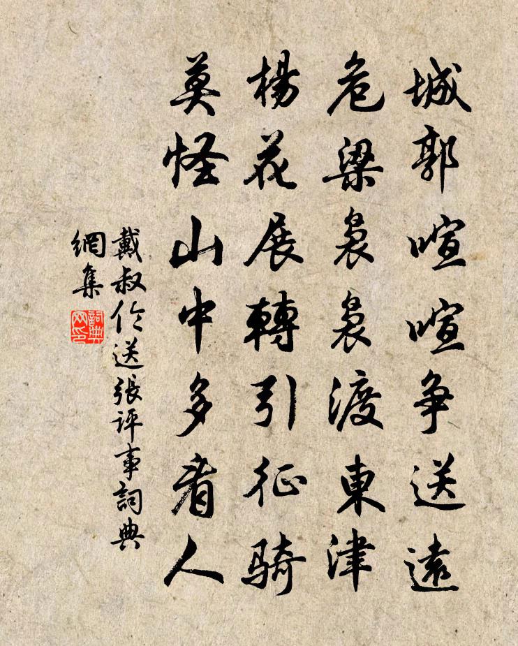 城郭喧喧爭送遠,危梁裊裊渡東津。楊花展轉引征騎,莫怪山中多看人。