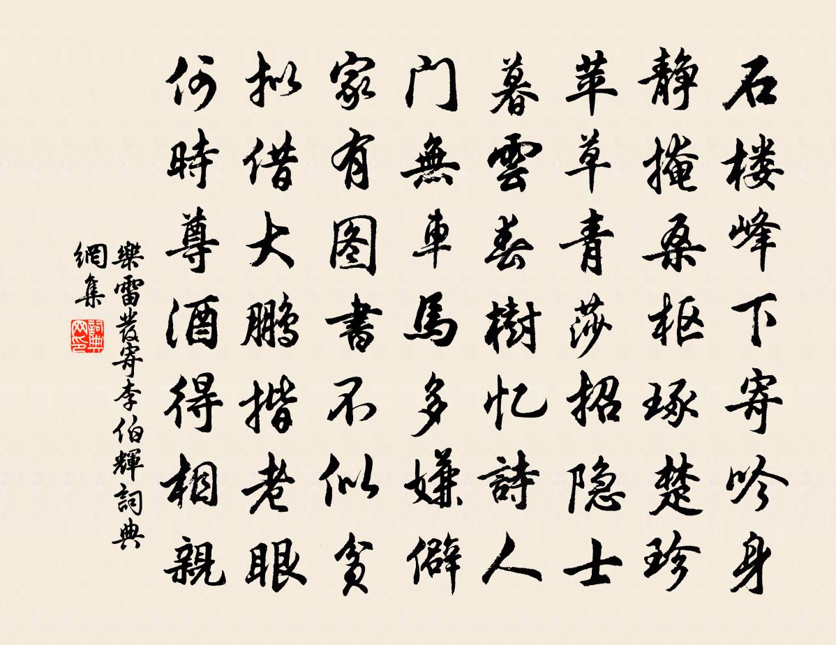 詩詞名句歷史字典書法欣賞書法字典國語詞典說文解字康熙字典古漢語字典標 題 作 者 詩 句 寄李伯輝作者:樂雷發 朝代:宋代寄李伯輝原文石樓峰下寄吟身,靜掩桑樞琢楚珍。苹草青莎招隱士,暮雲春樹憶詩人。門無車馬多嫌僻,家有圖書不似貧。擬借大鵬揩老眼,何時尊酒得相親。詩詞問答問:寄李伯輝的作者是誰?答:樂雷發問:寄李伯輝寫於哪個朝代?答:宋代樂雷發寄李伯輝書法欣賞寄李伯輝書法作品詩詞推薦奉新宰楊廷秀攜詩訪別次韻送之周必大〔宋代〕誠齋詩名牛斗寒,上規大雅非小山。向來志氣薄黃散,忽為五斗輟萬卷。兒童笑君非良圖,丈夫出處寧知渠。吳公賦得池塘生春草(一作陳陶詩)陳潤〔唐代〕謝公遺詠處,池水夾通津。古往人何在,年來草自春。色宜波際綠,香愛雨中新。今日青青意,空悲行路人。依韻和御製秋晚曲宴詩韓元吉〔宋代〕巍巍舜漢浹嘉生,宴俎豐年萬寶成。禁幄雲深開曉色,上林風迥起秋聲。威加鼉鼓雷霆轉,喜動龍旗日月明。應手唐多令·柳絮曹雪芹〔清代〕粉墮百花洲,香殘燕子樓。一團團、逐隊成球。飄泊亦如人命薄,空繾綣,說風流。草木也知愁,韶華竟白頭。嘆謝徐正十一兄惠牡丹顏帖趙孟堅〔宋代〕左攜珍帖右花王,雅貺何殊照乘光。拆壁漏痕含蠆尾,珍珠露顆帶天香。數千葉密憐檀暈,怕六丁收謹匣藏。答謝聞鷓鴣尤侗〔清代〕鷓鴣聲里夕陽西,陌上征人首盡低。遍地關山行不得,為誰辛苦盡情啼?和酬郎簽判殿丞釋重顯〔宋代〕向國心存了了身,大方無外且同塵。江城早晚重相見,解笑宗雷十八人。八月十七日,復登望海樓,自和前篇,是日榜蘇軾〔宋代〕眼昏燭暗細行斜,考閱精強外已夸。明日失杯君莫怪,早知安足不成蛇。春日胡仲弓〔宋代〕春事都無十日留,何妨款段出城游。榴花不入詩人眼,柳絮偏供客子愁。枝上五禽言似訴,籠中二鼠去如流。斜風題畫廿四首唐寅〔明代〕雪深山路滑於苔,自跨青驢得得來。為是仙翁詩帖報,鹿場僧寺鮮莓開。駕詣景寧宮行春趙師睪〔宋代〕風傳御道蹕聲清,兩道紗籠列火城。雲護帝尊天未曉,眾星環拱極星明。送葛都官南歸林之奇〔宋代〕不羨新為赤縣尹,惟羨暫向江南歸。江南羃羃梅雨時,風帆差差並鳥飛。罾竿夾岸長若桅,水籠畜魚鮮且肥。家在贈日者朱俊甫二首劉克莊〔宋代〕謝公閉墅懶圍棋,董相還家且下帷。見說金甌殊未定,問君魁柄屬之誰。效趙學士體成口號十章獻開府太師司馬光〔宋代〕公廚敕許釀芳樽,屢喚賓朋醉後園。謔浪略無名位間,誰人知道太師尊。過鳳山高氏以榴實薦酒張鎡〔宋代〕灣洄綠處昨雞聲,俯檻山宜柳外明。京洛泓塵衣半黑,邯鄲炊黍夢曾驚。榴皮就為翁題好,竹葉能邀我興成。辦此仲春初二絕葛天民〔宋代〕初交二朋草蒙茸,鄰里紛紛去折蓬。柳下閉門非懶出,苦無筋力趁兒童。聞范秀才自蜀游江湖杜牧〔唐代〕蜀道下湘渚,客帆應不迷。江分三峽響,山並九華齊。秋泊雁初宿,夜吟猿乍啼。歸時慎行李,莫到石城西。禪人並化主寫真求贊釋正覺〔宋代〕淨而純中無一塵,純而淨中有萬應。眼睛明,鼻孔正。更將折筋攪滄溟,令彼龍魚知水為命。點絳唇謝應芳〔元代〕點檢龜巢,素琴弦斷余何有。夫妻白首。相敬如賓友。三四孫兒,五色斑斕袖。梅花酒。為翁稱壽。羅拜爺娘後。代人和御製上巳錫宴詩毛滂〔宋代〕曲水傳觴盛,皇只布德初。海波翻雅奏,雲露濕華裾。晴送君恩暖,寒收物意舒。春耕無嘆息,庶不負於胥。名句推薦白髮漁樵江渚上,慣看秋月春風。楊慎《臨江仙·滾滾長江東逝水》 人生天地之間,若白駒之過隙,忽然而已。莊子《莊子·外篇·知北游》 山高月小,水落石出。蘇軾《後赤壁賦》 七夕今宵看碧霄,牽牛織女渡河橋。林傑《乞巧》 佳節清明桃李笑,野田荒冢只生愁。黃庭堅《清明》 坐開桑落酒,來把菊花枝。杜甫《九日楊奉先會白水崔明府》 酒市漸閒燈火,正敲窗、亂葉舞紛紛。孔夷《南浦·旅懷》 又莫是東風逐君來,便吹散眉間一點春皺蘇軾《洞仙歌·詠柳》 故聲聞過情,君子恥之。孟子《孟子·離婁章句下·第十八節》 君王遊樂萬機輕,一曲霓裳四海兵。李約《過華清宮》