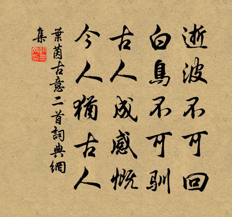 詩詞名句歷史字典書法欣賞書法字典國語詞典說文解字康熙字典古漢語字典標 題 作 者 詩 句 古意二首作者:葉茵 朝代:宋代古意二首原文逝波不可回,白鳥不可馴。古人成感慨,今人猶古人。詩詞問答問:古意二首的作者是誰?答:葉茵問:古意二首寫於哪個朝代?答:宋代葉茵古意二首書法欣賞古意二首書法作品詩詞推薦水調歌頭(送劉恭父趨朝)張孝祥〔宋代〕鰲禁輟頗牧,熊軾賴龔黃。一時林莽千險,蜂午要驅攘。金版六韜初試,煙斂山空野迥,低草見牛羊。旒纊釋南顧題婺州仁風堂寄韓侍郎崔敦禮〔宋代〕丹扆憂勤德意通,使君元侍玉皇宮。親傳天上舜琴曲,散作人間莊籟風。已喜清微消滯郁,亦知委曲到鰥窮。騷人度浮橋至南台陸游〔宋代〕客中多病廢登臨,聞說南台試一尋。九軌徐行怒濤上,千艘橫系大江心。寺樓鐘鼓催昏曉,墟落雲煙自古今,白髮侄梠隨知命舟行黃庭堅〔宋代〕莫去沙邊學釣魚,莫將百丈作轆轤。清江濯足窗下坐,燕子日長宜讀書。答兄平原詩陸雲〔魏晉〕悠悠塗可極。別促怨會長。銜思戀行邁。興言在臨觴。南津有絕濟。北渚無河梁。神往同逝感。形留悲參商。衡軌次韻郭刪定觀潮四絕喻良能〔宋代〕憶昔初為總角兒,年年秋後厭旌旗。只今廓廓渾無事,樽酒何妨樂聖詩。夜陰梅堯臣〔宋代〕月色明還暗,雲寒散復濃。古堂移魍魎,積霧合蛟龍。濕菌飛瑩出,蒼苔上朽重。獨吟嗟向老,氣澀覺偏慵。病起書院偶成盛世忠〔宋代〕蓄水滋蘭畹,開窗近竹林。敗糊黃蟣閧,斷簡老蟲侵。酒尚欺人病,詩能對客吟。晨昏一飲足,此外不關心。喜遷鶯佚名〔宋代〕芳春天曉。聽綠樹、數聲如簧鶯巧。寄尋梅戴復古〔宋代〕寄聲說與尋梅者,不在山邊即水涯。又恐好枝為雪壓,或生幽處被雲遮。蜂黃塗額半含蕊,鶴膝翹空疏帶花。此是題駱秀才葺故廬疏何應龍〔宋代〕家在西湖合澗橋,短籬圍得數椽茅。歸來頗費支撐力,羞見春風燕子巢。淳佑辛酉立秋後一日游鼓山釋道沖〔宋代〕野徑斜連石澗傍,草根昵昵語寒螿。郊原經雨多秋意,庭院無人自夕陽。風卷暮雲歸碧嶂,葉隨野水入寒塘。數家秋思陸游〔宋代〕弊衣但故絮,糲食惟黃齏。餘年如登山,步步勤攀躋。從子念寂寞,千里致鹿麑。秋風石帆下,伴我扶青藜。和韋尚書答梓州兄南亭宴集張九齡〔唐代〕棠棣聞餘興,烏衣有舊遊。門前杜城陌,池上曲江流。暇日嘗繁會,清風詠阻修。始知西峙岳,同氣此相求。紹興祀岳鎮海瀆四十三首佚名〔宋代〕嚴嚴天齊,自古在昔。虜寸之雲,四方其澤。惟時東作,祀事迺飭。惠我無疆,恩沾動植。醉落魄/一斛珠李呂〔宋代〕休休莫莫。當年不負西湖約。一技初見橫籬落。嚼蕊聞香,長是醉鄉落魄。而今對酒空斟酌。老來多病情非昨。誰緣識宋太宗〔宋代〕聖人棄智妄中尋,質實先明朴在心。坦蕩玄門常不達,那非那是秘源深。歲晚出橫門詩庾信〔南北朝〕年華改歲陰。遊客喜登臨。據鞍垂玉帖。橫腰帶錦心。冰弱浮橋沒。沙虛馬跡深。倚弓依石岸。回床向柳陰。智瓊浣溪沙毛滂〔宋代〕小雨初收蝶做團。和風輕拂燕泥乾。鞦韆院落落花寒。莫對清尊追往事,更催新火續餘歡。一春心緒倚闌乾。小舟楊萬里〔宋代〕豎起青篙便是桅,片帆掛了即帆間。漁郎袖手船頭坐,一葉如飛不用催。名句推薦亦有白骨歸鹹陽,營家各與題本鄉。王建《渡遼水》 出耒在明晨,山寒易霜霰。王守仁《謫居糧絕請學於農將田南山詠言寄懷》 東風楊柳欲青青。煙淡雨初晴。晏殊《訴衷情·東風楊柳欲青青》 莊生曉夢迷蝴蝶,望帝春心托杜鵑。李商隱《錦瑟》 勝法之務莫急於去奸,去奸之本莫深於嚴刑。商鞅《商君書·開塞》 淮南秋雨夜,高齋聞雁來。韋應物《聞雁》 善歌者,使人繼其聲;善教者,使人繼其志。戴聖《禮記·學記》 誰知得酒尚能狂,脫帽向人時大叫。陸游《三月十七日夜醉中作》 就解佩旗亭,故人相遇。吳文英《掃花游·西湖寒食》 天命之謂性;率性之謂道子思《中庸·第一章》