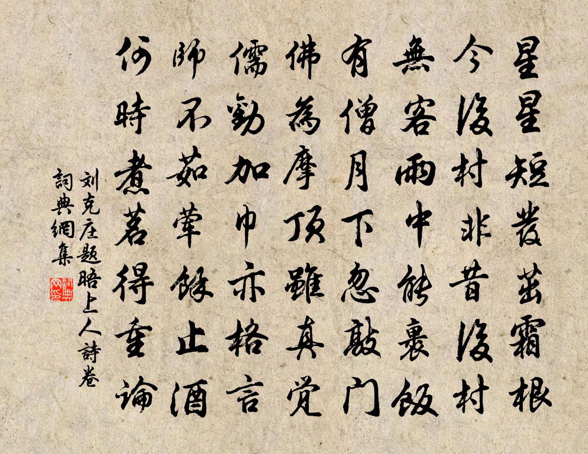 星星短髮茁霜根,今後村非昔後村。無客雨中能裹飯,有僧月下忽敲門。