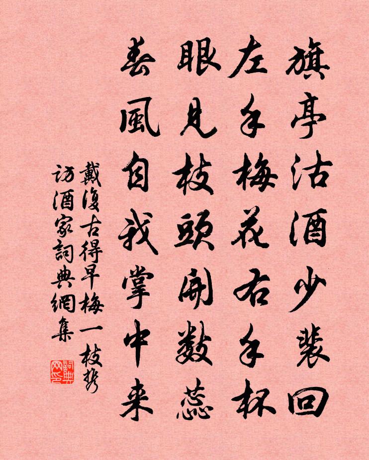 旗亭沽酒少裴回,左手梅花右手杯。眼見枝頭開數蕊,春風自我掌中來。
