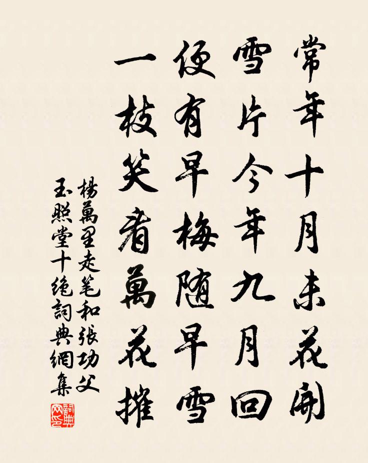 常年十月未花開,雪片今年九月回。便有早梅隨早雪,一枝笑看萬花摧。
