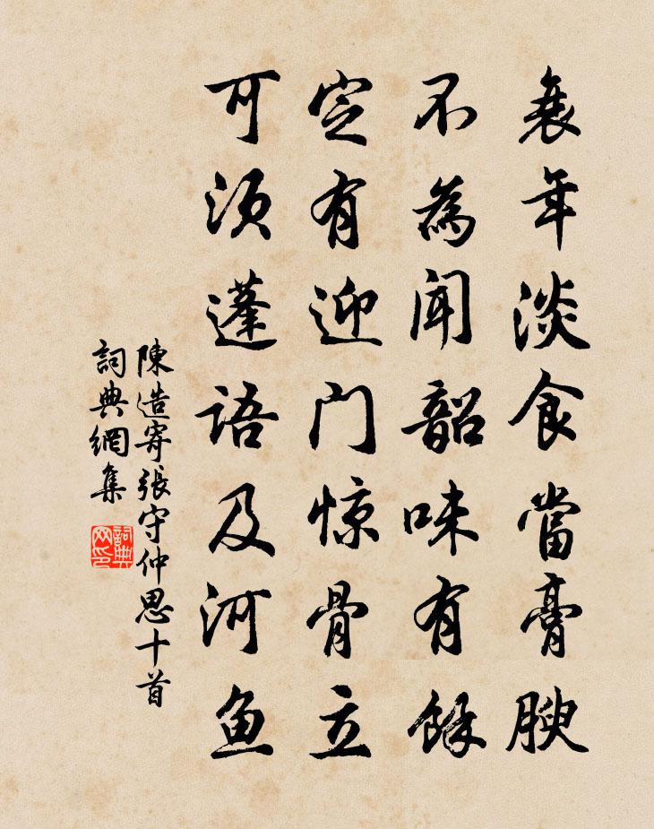 詩詞名句歷史字典書法欣賞書法字典國語詞典說文解字康熙字典古漢語字典標 題 作 者 詩 句 寄張守仲思十首作者:陳造 朝代:宋代寄張守仲思十首原文衰年淡食當膏腴,不為聞韶味有餘。定有迎門驚骨立,可須蓬語及河魚。詩詞問答問:寄張守仲思十首的作者是誰?答:陳造問:寄張守仲思十首寫於哪個朝代?答:宋代陳造寄張守仲思十首書法欣賞寄張守仲思十首書法作品詩詞推薦春日旅舍李頻〔唐代〕未識東西南北路,青春白日坐銷難。如何一別故園後,五度花開五處看。句黃晦叔〔宋代〕大安婦翁舍,時來枕流眠。赴官鹹平蔡河阻水泊舟宛兵皇華亭下三首張耒〔宋代〕怒河憑雨正奔流,踏跕卑梁滯去舟。淹泊我生應有定,不須歸怨一污溝。和中齋韻文天祥〔宋代〕見說黃沙接五原,飄零隻影向南轅。江山有恨銷人骨,風雨無情斷客魂。淚似空花千點落,鬢如碩果數根存。肉飛元石吳文震〔宋代〕卷石之中有道存,岩岩氣象峻於天。巍乎近取舜為法,早爾如群孔在前。跨六鰲頭觀戴極,出群龍首要承乾。聖門仙茅齊唐〔宋代〕仙方上品夸靈種,忽怪靈芝拆紫苞。玉澤返嬰看驗術,少微山是小三茅。鶴沖天·梅謝粉歐陽修〔宋代〕梅謝粉,柳拖金。香滿舊園林。養花天氣半晴陰。花好卻愁深。花無數。愁無數。花好卻愁春去。戴花持酒祝東風楊廷秀秘監萬花川谷中洛花甚富乃用野人韻為周必大〔宋代〕萬花川谷第芳菲,也許湘靈媵伏妃。翠葉迎風牽荇帶,紅綃浴日濕宮衣。共船不妒龍陽釣,警乘猶疑洛渚飛。誰把宿水陸寺華岳〔宋代〕蕭寺廓廡闊,無人獨自行。吳儂非好僻,楚客為誰清。花落憑風掃,燈殘借月明。江湖有煙浪,且此寄餘生。梁寺汪遵〔唐代〕立國從來為戰功,一朝何事卻談空。台城兵匝無人敵,閒臥高僧滿梵宮。題椿桂堂王信〔宋代〕鄉與子直游膠庠,是時子明居侍旁。友於學問相激昂,聲華日馳翰墨場。仲氏一第如探囊,伯氏隨即凌雲翔,已快和李上舍冬日書事韓駒〔宋代〕北風吹日晝多陰,日暮擁階黃葉深。倦鵲繞枝翻凍影,飛鴻摩月墮孤音。推愁不去如相覓,與老無期稍見侵。顧藉送孫從之司業持節湖南二首楊萬里〔宋代〕金家先遯卻誰知,匹馬西歸也大奇。出盡莫嫌三宿戀,壞麻不待七年遲。風生折檻人無古,水遶圜橋士有師。六一國士一首蘇籀〔宋代〕五陵少年銅乳臭,哲肅何甘作牛後。曲合汙世鄉愿徒,俗學聾瞽紛蕪莠。文士規模正始間,風流可喜未曾有。志士又和岳祠謝發題岳寺平法華庵司馬光〔宋代〕宴坐幾何年,庭蕪與砌連。焚修真諦苦,功地得無圓。闕里詩三百,瀨級文五千。厭煩猶不讀,何況淤泥蓮。過桃川萬壽宮二首王阮〔宋代〕人共桃花事一空,兔葵無數舞春風。傷心俯仰成今古,知與劉郎事不同。生民佚名〔先秦〕厥初生民,時維姜嫄。生民如何?克禋克祀,以弗無子。履帝武敏歆,攸介攸止,載震載夙。載生載育,時維后稷風入松·桂吳文英〔宋代〕蘭舟高盪漲波涼。愁被矮橋妨。暮煙疏雨西園路,誤秋娘、淺約宮黃。還泊郵亭喚酒,舊曾送客斜陽。蟬聲空曳別白牡丹白居易〔唐代〕白花冷澹無人愛,亦占芳名道牡丹。應似東宮白贊善,被人還喚作朝官。吾族盤石將挾堪與家出遊索詩送行徐瑞〔宋代〕天星聞地化為石,盤石即是星之精。觀天必識以續家,相地始知流峙情。豹林將軍累世韻,龍罔文章千載名。古人名句推薦西山白雪三城戍,南浦清江萬里橋。杜甫《野望》 榮寵有初,鮮有終者;吉凶無常,智者少禍。來俊臣《羅織經·固榮卷第六》 一朝哭都市,淚盡歸田畝。元結《農臣怨》 荷葉生時春恨生,荷葉枯時秋恨成。李商隱《暮秋獨游曲江》 雨中黃葉樹,燈下白頭人。司空曙《喜外弟盧綸見宿》 亂雲低薄暮,急雪舞迴風。杜甫《對雪》 時來風送滕王閣,運去雷轟薦福碑。佚名《增廣賢文·上集》 雁啼紅葉天,人醉黃花地,芭蕉雨聲秋夢裡。張可久《清江引·秋懷》 執一者至貴也,至貴者無敵。呂不韋《呂氏春秋·覽·離俗覽》 玉露金風報素秋,穿針樓上獨含愁。德容《七夕二首·其一》