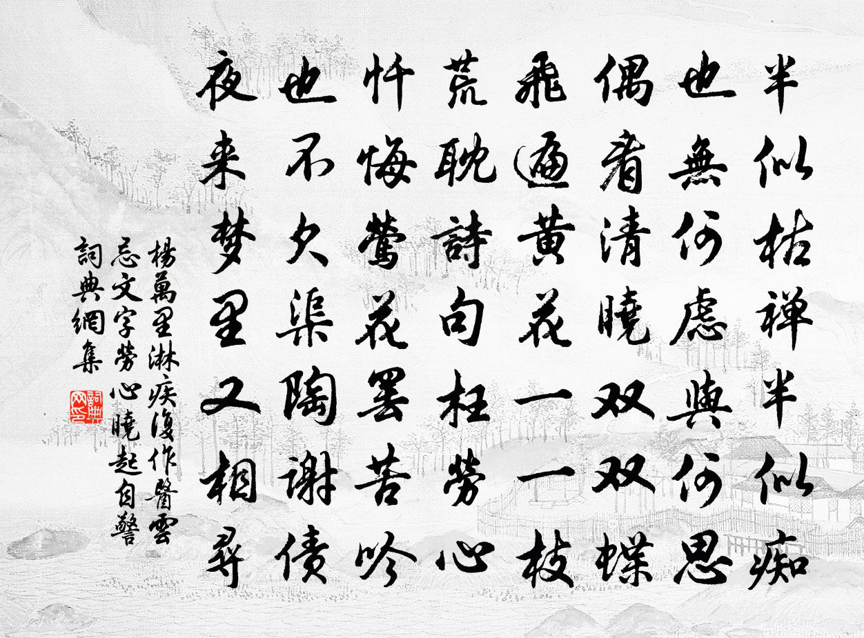 半似枯禪半似痴,也無何慮與何思。偶看清曉雙雙蝶,飛遍黃花一一枝。