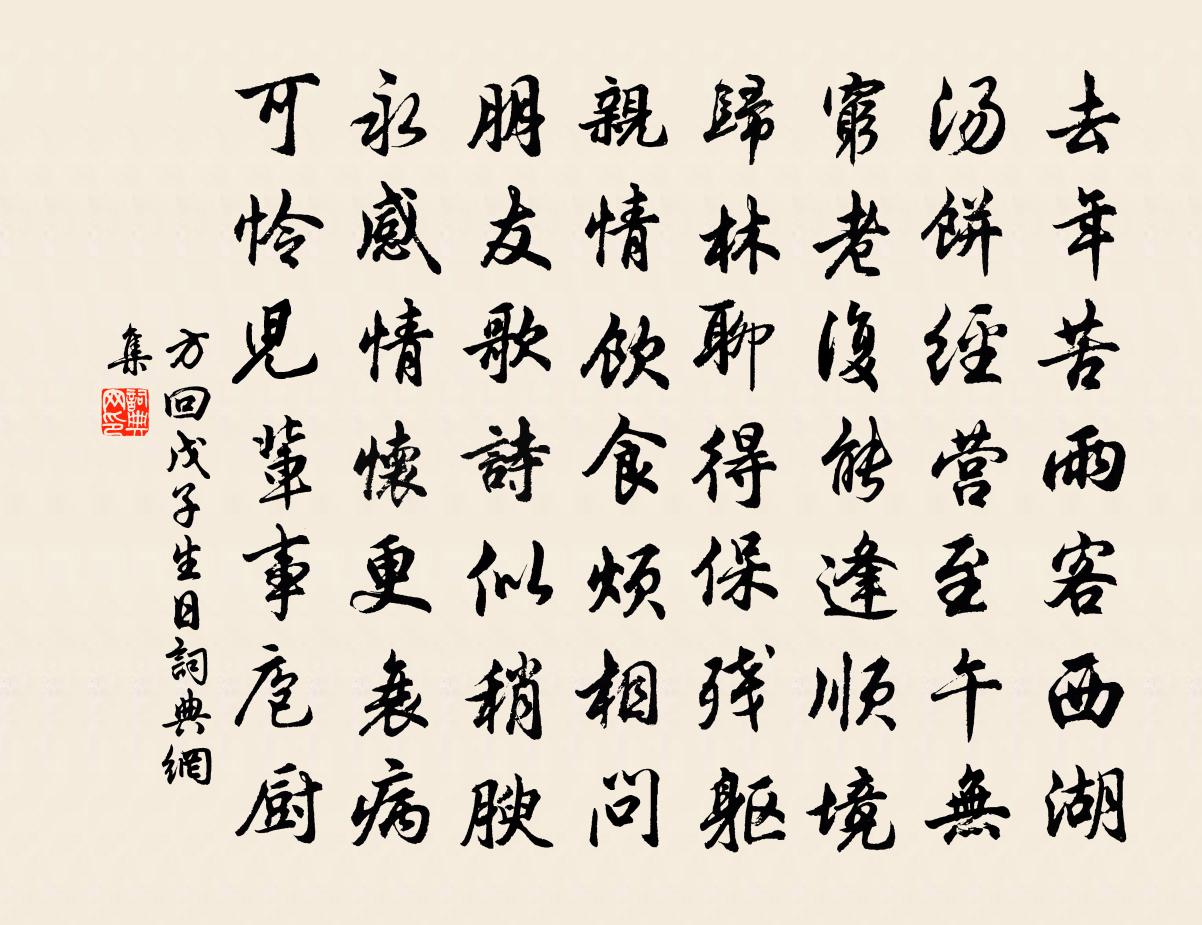 詩詞名句歷史字典書法欣賞書法字典國語詞典說文解字康熙字典古漢語字典標 題 作 者 詩 句 戊子生日作者:方回 朝代:宋代戊子生日原文去年苦雨客西湖,湯餅經營至午無。窮老復能逢順境,歸林聊得保殘軀。親情飲食煩相問,朋友歌詩似稍腴。永感情懷更衰病,可憐兒輩事庖廚。詩詞問答問:戊子生日的作者是誰?答:方回問:戊子生日寫於哪個朝代?答:宋代方回戊子生日書法欣賞戊子生日書法作品詩詞推薦夜坐陸游〔宋代〕葉盡木無聲,天高夜自明。映窗燈半滅,掠野雁孤征。瓦裂人間事,雲浮身後名。惟應托長鑱,寂寞送浮生。過黃州和共山高寒韻李曾伯〔宋代〕千古江山一覽間,老瞞於此膽曾寒。憑高要起乘風志,肯把閒情作鴨欄。句沈端節〔宋代〕讀書渾不問家事,得酒但知看延友生。出村李復〔宋代〕風露已淒淒,郊原百草腓。負樵山木下,轉粟戍人歸。野曠羊牛遠,場荒鳥雀稀。南山經月雨,猶有亂雲飛。聞升甫南池觀魚所獲無幾戲成小詩奉呈強至〔宋代〕巨鱗非尺澤,多目漫污池。網漏從今日,筌忘復幾時。饔人顏慘澹,漁子興參差。豈似任公捷,群鰲一釣絲。讀書歐陽修〔宋代〕吾生本寒儒,老尚把書卷。眼力雖已疲,心意殊未倦。正經首唐虞,偽說起秦漢。篇章異句讀,解詁及箋傳。是非菩薩蠻(贈舞姬)毛滂〔宋代〕當時學舞鈞天部。驚鴻吹下江湖去。家住百花橋。何郎偏與嬌。杏梁塵拂面。牙板聞鶯燕。勸客玉梨花。月侵釵燕三山杜門作歌陸游〔宋代〕寬恩四賦仙祠祿,每忍慚顏救枵腹。五秉初辭官粟紅,一瓢自酌岩泉綠。天公乘除不負汝,宿疾微平歲中熟。鳴呼奉酬顏使君真卿見過郭中寺寺無山水之賞…以答焉皎然〔唐代〕州西柳家寺,禪舍隱人間。證性輕觀水,棲心不買山。履聲知客貴,雲影悟身閒。彥會前賢事,方今可得攀。覽古四十二首 其十八楊維楨〔元代〕庴陽有高士,生產不曾治。何以遺妻子,鹿門有深期。籍籍齒牙論,龍鳳名諸兒。諸葛拜床下,可是圯橋師?贈竇五判官韋渠牟〔唐代〕故舊相逢三兩家,愛君兄弟有聲華。文輝錦彩珠垂露,逸興江天綺散霞。美玉自矜頻獻璞,真金難與細披沙。終須奉和韋侍御陪相公游開義五言六韻李德裕〔唐代〕羊公追勝概,茲地暫逍遙。風景同南峴,丹青見北朝。石渠清夏氣,高樹激鮮飆。念法珍禽集,聞經醉象調。偶分游長安諸寺聯句常樂坊趙景公寺吳畫聯句段成式〔唐代〕慘澹十堵內,吳生縱狂跡。風雲將逼人,神鬼如脫壁。 ——段成式其中龍最怪,張甲方汗栗。黑送程子方歸蜀仇遠〔宋代〕風雪飄蕭季子裘,大江西泝過荊州。洲家無計歸蔥肆,歲晚何人付麥舟。長子應門寬後慮,輕帆入峽及春遊。明年和張亨泉宴鹿鳴吳泳〔宋代〕平生湖海獨元龍,門作丹梯倚太空。還我蛾眉千頃月,借渠羊角一帆風。文隨腳跡機難活,學到源頭理自通。何代答外龍輔〔宋代〕郎書來問近何如,性癖如郎只似初。忍冷臨風因愛雪,抱疴點燭為看書。舟還浯溪再留二絕留筠〔宋代〕為愛浯溪風景幽,重臨釣石系歸舟。不妨細讀豐碑下,墨本空看幾白頭。送綦毋秘(一作校)書棄官還江東王維〔唐代〕明時久不達。棄置與君同。天命無怨色。人生有素風。念君拂衣去。四海將安窮。秋天萬里淨。日暮澄(一作九)得家書張鎡〔宋代〕北堂萱獨雁行疎,旅夢通宵只敝廬。未暇拆封忙喚仆,先將安否問何如。送白珙秀才梅堯臣〔宋代〕溪上桃花發,山前桂舸移。水流過峽急,風逆出江遲。南國魚蝦厭,東都夢寐思。逢人若有問,不似在朝時。名句推薦山河風景元無異,城郭人民半已非。文天祥《金陵驛二首·其一》 斟酌乎質文之間,而隱括乎雅俗之際,可與言通變矣。劉勰《文心雕龍·通變》 霸圖今已矣,驅馬復歸來。陳子昂《燕昭王》 城外蕭蕭北風起,城上健兒吹落耳。劉基《北風行》 黃昏寒立更披襟,露浥清香悅道心。司空圖《白菊雜書四首》 朝來入庭樹,孤客最先聞。劉禹錫《秋風引》 落盡梨花春又了。滿地殘陽,翠色和煙老。梅堯臣《蘇幕遮·草》 有田不耕倉廩虛,有書不讀子孫愚。佚名《增廣賢文·上集》 學之染人,甚於丹青。房玄齡《晉書·列傳·第五十二章》 午醉未醒紅日晚,黃昏簾幕無人卷。蘇軾《蝶戀花·蝶懶鶯慵春過半》
