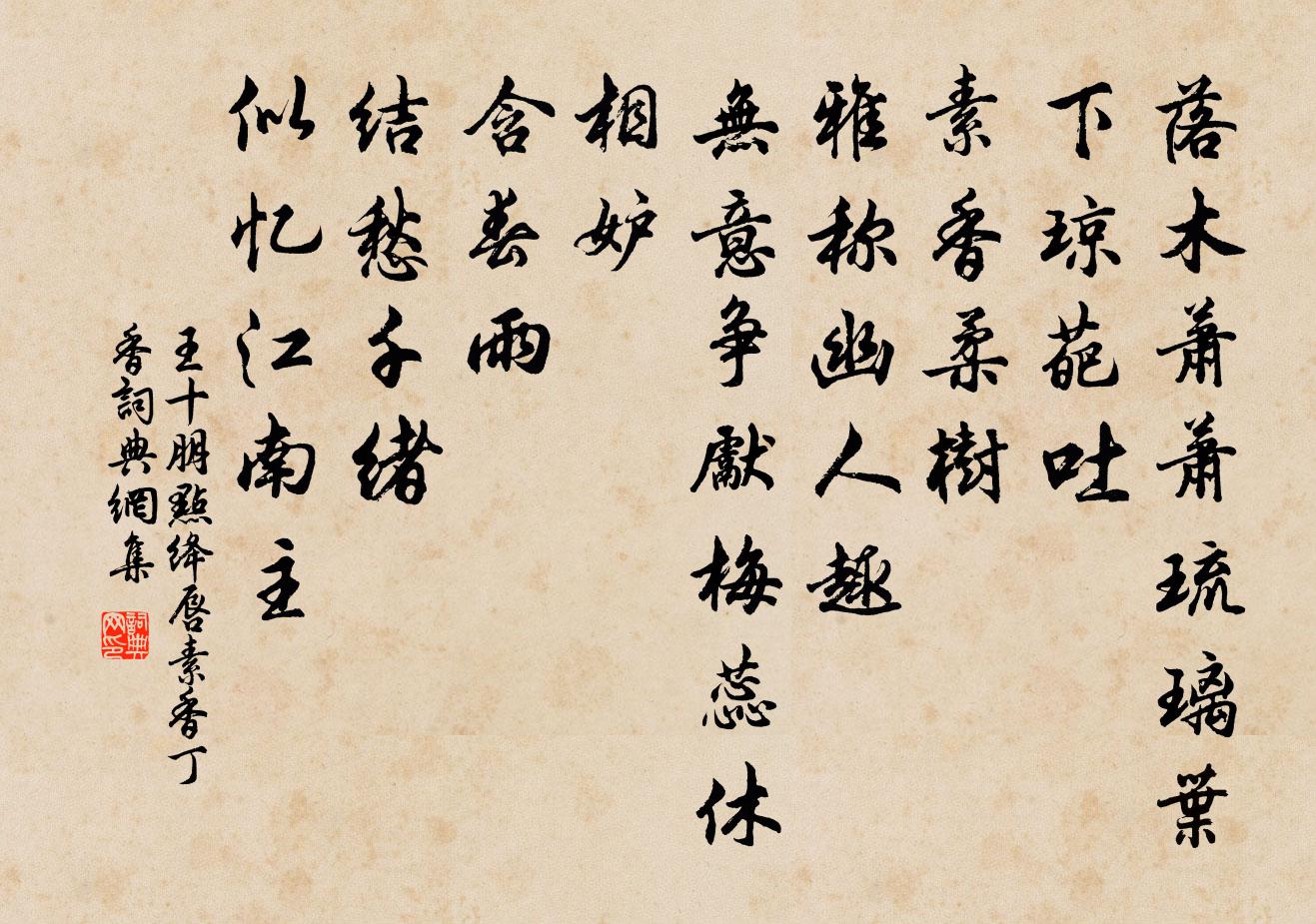 全詞多處用典,內涵深遠。“落木蕭蕭”出自唐杜甫七律《登高》:“無邊落木蕭蕭下”;“素香柔樹,雅稱幽人趣”脫胎於杜甫五古《丁香》:“丁香體柔弱,亂結枝猶墊。細葉帶浮毛,疏花披素艷。深栽小齋後,庶近幽人占。晚墮蘭麝中,休懷粉身念”;“無意爭先,梅蕊休相妒”與陸游《卜運算元·詠梅》“無意苦爭春,一任群芳妒”有異曲同工之妙;而“含春雨,結愁千緒,憶似江南主”疑即指“丁香空結雨中愁”的作者南唐中主李璟或善寫愁詞的婉約詞人南唐後主李煜。(作者:阿群)