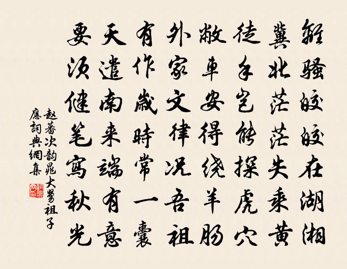 詩詞名句歷史字典書法欣賞書法字典國語詞典說文解字康熙字典古漢語字典標 題 作 者 詩 句 次韻晁大舅祖子應作者:趙蕃 朝代:宋代次韻晁大舅祖子應原文離騷皎皎在湖湘,冀北茫茫失乘黃。徒手豈能探虎穴,敝車安得繞羊腸。外家文律況吾祖,有作歲時常一囊。天遣南來端有意,要須健筆寫秋光。詩詞問答問:次韻晁大舅祖子應的作者是誰?答:趙蕃問:次韻晁大舅祖子應寫於哪個朝代?答:宋代趙蕃次韻晁大舅祖子應書法欣賞次韻晁大舅祖子應書法作品詩詞推薦寄寧海李明府周賀〔唐代〕山縣風光異,公門水石清。一官居外府,幾載別東京。故疾梅天發,新詩雪夜成。家貧思減選,時靜憶歸耕。把疏溯江至武昌孟浩然〔唐代〕家本洞庭上,歲時歸思催。客心徒欲速,江路苦邅回。殘凍因風解,新正度臘開。行看武昌柳,仿佛映樓台。歌舞李商隱〔唐代〕遏雲歌響清,回雪舞腰輕。只要君流眄,君傾國自傾。讀本朝史有感十首劉克莊〔宋代〕垂簾復辟身俱穩,送呂迎章話又新。瞞得庭中相泣者,難瞞屏後竊聽人。張仲通追賦洛中雜題和嘗歷覽者六章其一伊川梅堯臣〔宋代〕山斷瀉伊流,灘聲朝暮急。東渡馬將登,西堤人已立。日看東西舟,爭途如不及。誰見捕魚郎,寒蓑雨中濕。留客住王哲〔元代〕但人做。限百年、七旬難與。奪名爭利強憑,徒勞辛苦。金飛玉起催逼,老死還被,兒孫拖入土。余今省悟。舍攀游姑蘇張氏園二首曾幾〔宋代〕郭內名園舊所聞,扶攜老穉及良辰。重重碧樹深留客,一一華堂極可人。綠暗池塘初破夏,清和時節尚關春。恁誰答安陸王工部早春郡園見寄次韻宋祁〔宋代〕五馬新回金絡頭,方春稀訟釋南囚。荊岑漢滸聯形勝,渚月颱風遞宴遊。自許良辰偏有感,不知清唱遂無儔。比來西江月(腰痛,舊傳陳復齋名方,歲久失之)劉克莊〔宋代〕思邈方書去失,休文老病來攻。新年筋力太龍鍾。腰似鐵錨兒重。雅拜怎生搢笏,徐行也要扶筇。田翁邀飲不能從堂中安奉高宗壽皇今上御書碑張鎡〔宋代〕路轉修林特地殊,九光霞氣羃仙廬。蒼瑤不刻飛天篆,儘是三清玉帝書。詠懷六首庾信〔南北朝〕其一楚材稱晉用,秦臣即趙冠。離宮延子產,羈旅接陳完。寓衛非所寓,安齊獨未安。雪泣悲去魯,悽然憶相韓。殘花楊凝〔唐代〕五馬踟躕在路岐,南來只為看花枝。鶯銜蝶弄紅芳盡,此日深閨那得知。如夢令許有壬〔元代〕牆角黃葵都謝。開到玉簪花也。老子恰知秋,風露一庭清夜。瀟灑。瀟灑。高臥碧窗下。九日試霧中僧所贈茶陸游〔宋代〕少逢重九事豪華,南陌雕鞍擁鈿車。今日蜀州生白髮,瓦爐獨試霧中茶。夏日劉復〔唐代〕映日紗窗深且閒,含桃紅日石榴殷。銀瓶綆轉桐花井,沉水煙銷金博山。文簟象床嬌倚瑟,彩奩銅鏡懶拈環。明朝晚樓凝思張玉孃〔宋代〕鴛鴦繡罷閣新愁,獨抱雲和散書樓。風竹入統歸別調,湘簾卷月笑銀鈞。行天雁向寒煙沒,倚檻人將清滬流。自是代人上師垣生辰仲並〔宋代〕直把孤忠動帝聰,平生房杜不言功。沖霄鸞鳳謀謨合,遮道豺狼黨與空。韜略暇時談笑裹,勛名他日畫圖中。中書題處士林亭李濤〔唐代〕帝里高人宅,蒼苔繞徑深。捲簾山入戶,摘葉鳥移林。石沼養龜水,月台留客琴。生涯一樽酒,名利不關心。南歌子(晚春)蘇軾〔宋代〕日薄花房綻,風和麥浪輕。夜來微雨洗郊坰。正是一年春好、近清明。已改煎茶火,猶調入粥餳。使君高會有餘清雨霖鈴 以上重陽集卷之八王哲〔元代〕東方甲乙。見青芽吐,早應時律。南陽正現紅焰,初將熾、炎炎濃密。西動金風颯颯,致清爽、往來飄逸。北氣候名句推薦棘枝風哭酸,桐葉霜顏高。孟郊《秋懷十五首》 王者之宰民也,莫不同四海,一遠近, 為父母而子之。令狐德棻《周書·本紀·卷四》 暮雨相呼失,寒塘欲下遲。崔塗《孤雁二首·其二》 士君子立言,貴平正,尤貴精詳。王永彬《圍爐夜話·第二五則》 淚濕闌乾花著露,愁到眉峰碧聚。毛滂《惜分飛·淚濕闌乾花著露》 風定落花深,簾外擁紅堆雪。李清照《好事近·風定落花深》 落日無人松徑里,鬼火高低明滅。薩都剌《念奴嬌·登石頭城次東坡韻》 聖人忘情,最下不及情;情之所鍾,正在我輩。劉義慶《世說新語·傷逝》 請君看取東流水,方識人間別意長。嚴仁《鷓鴣天·惜別》 客睡何曾著,秋天不肯明杜甫《客夜》