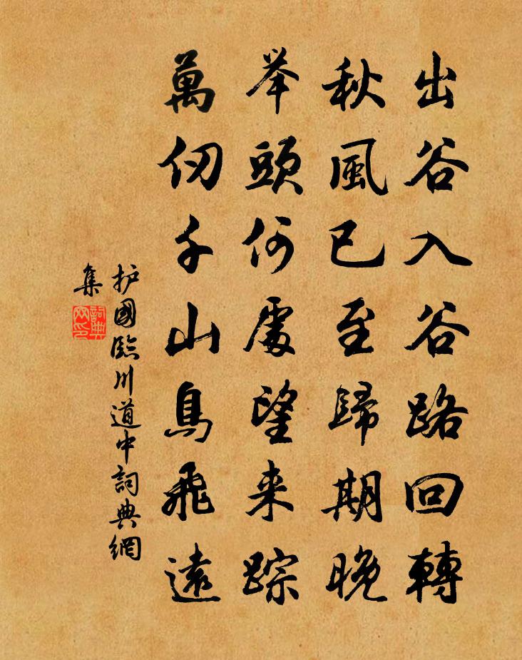 詩詞名句歷史字典書法欣賞書法字典國語詞典說文解字康熙字典古漢語字典標 題 作 者 詩 句 臨川道中作者:護國 朝代:唐代臨川道中原文出谷入谷路迴轉,秋風已至歸期晚。舉頭何處望來蹤,萬仞千山鳥飛遠。詩詞問答問:臨川道中的作者是誰?答:護國問:臨川道中寫於哪個朝代?答:唐代問:臨川道中是什麼體裁?答:七古護國臨川道中書法欣賞臨川道中書法作品注釋全唐詩:卷811-11詩詞推薦途中二首曾幾〔宋代〕小麥青青大麥黃,新蠶滿箔稻移秧。綠陰馬倦休亭午,芳草牛閒臥夕陽。題花十絕句程公許〔宋代〕揚花漠漠亂晴空,翠幰箯輿御晚風。試與徐園評絕品,紫球曲柄狀元紅。題武擔寺西台段文昌〔唐代〕秋天如鏡空,樓閣盡玲瓏。水暗餘霞外,山明落照中。鳥行看漸遠,松韻聽難窮。今日登臨意,多歡語笑同。題涪州雙魚次劉郎中韻丘無逸〔宋代〕誰將江石作魚鐫,奮鬣揚鬐似戲蓮。今報豐登當此日,昔模形狀自何年。雪因呈瑞爭高下,星以分宮較後先。八使道中連雨方岳〔宋代〕蚤晏逢人問,荒村店亦稀。竹輿穿雨過,沙鳥帶雲飛。野渡疑無樹,春山盡有薇。不緣詩是伴,誰與倚荊扉。次韻胡庭芳別考亭夫子祠下汪炎昶〔宋代〕與易俱胩無何鄉,紫陽風采獨堂堂。伊洛諸老前慷慨,字落琬琰嗅有香。餘或闖首藩籬傍,占辭象例終茫洋。公剪晝臥聞百舌陸游〔宋代〕雨後郊原已遍犁,陰陰簾幙燕分泥。閒眠不作華胥計,說與春烏自在啼。思惟相觀音贊釋心月〔宋代〕春禽晝啼,秋蟲夜吟。有耳皆聞,何獨觀音。如是而知,如是而覺。面目現前,超諸餘學。柏谷詞楊維楨〔元代〕柏谷險,君勿趨。君一趨,龍為魚。槳長豈識真龍軀,賴爾老婦能挽夫。論報不賜誅,槳長本無辜。舉之羽林郎,時世妝-儆戎也白居易〔唐代〕時世妝,時世妝,出自城中傳四方。時世流行無遠近,腮不施朱面無粉。烏膏注唇唇似泥,雙眉畫作八字低。妍媸寄名山李著作范祖禹〔宋代〕劍外雖雲遠,外山信日聞。漏天常泄雨,蒙頂半藏雲。萬里飛鳧舄,三年隱豹文。茗芽春後好,應許故人分。臨刑詩江為〔唐代〕街鼓侵人急,西傾日欲斜。黃泉無旅店,今夜宿誰家。展敬上鳳林寺詩薛道衡〔隋代〕凈土連幽谷。寶塔對危峯。林棲丹穴鳳。地邇白沙龍。獨岩樓逈出。復道閣相重。洞開朝霧斂。石濕曉雲濃。高筱除日送龍涎香與宋評事二首曾豐〔宋代〕除夕風霜節,家人錦綺筵。舌頭余鳳髓,鼻觀欠龍涎。玉餅聊分餉,金爐試一燃。更將國香匹,何似海南煙。挽范丞相五首吳芾〔宋代〕蚤歲登三事,皇朝第一人。聲名塞寰宇,功業在生民。千載風雲會,三朝柱石臣。堂堂無復見,空憶吐車茵。東皋十首晁補之〔宋代〕尺五城南未足高,只今小杜更飄颻。暮煙疏雨從君勝,玉子文楸聽我饒。偶作呈曾存子吳則禮〔宋代〕北窗永日捐群書,自憐所得才腐餘。東風吹花欲爛漫,強自羈縶轅駒。曲肱靜聽百鳥語,圭竇翁牖思吾廬。遙憐春薛德之之江東簡熊西玉諸公林景熙〔宋代〕乍逢還又別,龍竹葛陂陰。野水流春遠,江雲入暮深。新知滿湖海,遺老在山林。解後如相問,憑君道素心。折楊柳行曹丕〔魏晉〕端居若無悰。駕游博望山。送曹深叟之越趙汝鐩〔宋代〕幾時重握手,未可便輕離。路指千岩去,程寬一月期。捫蘿窺禹穴,剝蘚讀曹碑。必自蘭亭過,方當春暮時。名句推薦此日六軍同駐馬,當時七夕笑牽牛。李商隱《馬嵬·其二》 石門流水遍桃花,我亦曾到秦人家。李白《下途歸石門舊居》 雪岸叢梅發,春泥百草生。杜甫《陪裴使君登岳陽樓》 夫孝,天之經也,地之義也,民之行也。孔子及其弟子《孝經·三才》 范增一去無謀主,韓信原來是逐臣。嚴遂成《烏江項王廟》 獨出前門望野田,月明蕎麥花如雪。白居易《村夜》 諸葛大名垂宇宙,宗臣遺像肅清高。杜甫《詠懷古蹟五首·其五》 世治不輕,世亂不沮;同弗與,異弗非也。戴聖《禮記·儒行》 斜髻嬌娥夜臥遲,梨花風靜鳥栖枝。唐寅《美人對月》 流年莫虛擲,華發不相容。方乾《送從兄郜 / 韋郜 / 途中別孫璐》