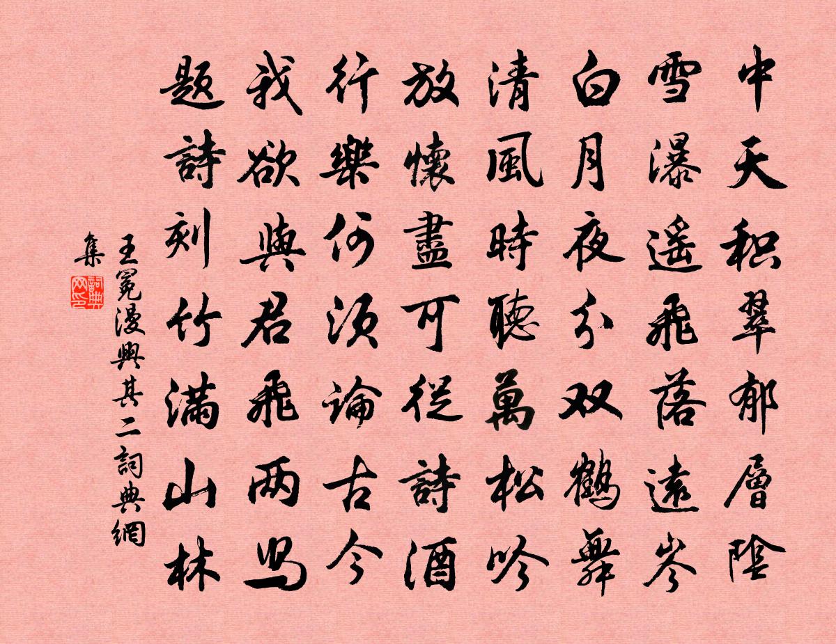 中天積翠郁層陰,雪瀑遙飛落遠岑。白月夜分雙鶴舞,清風時聽萬松吟。