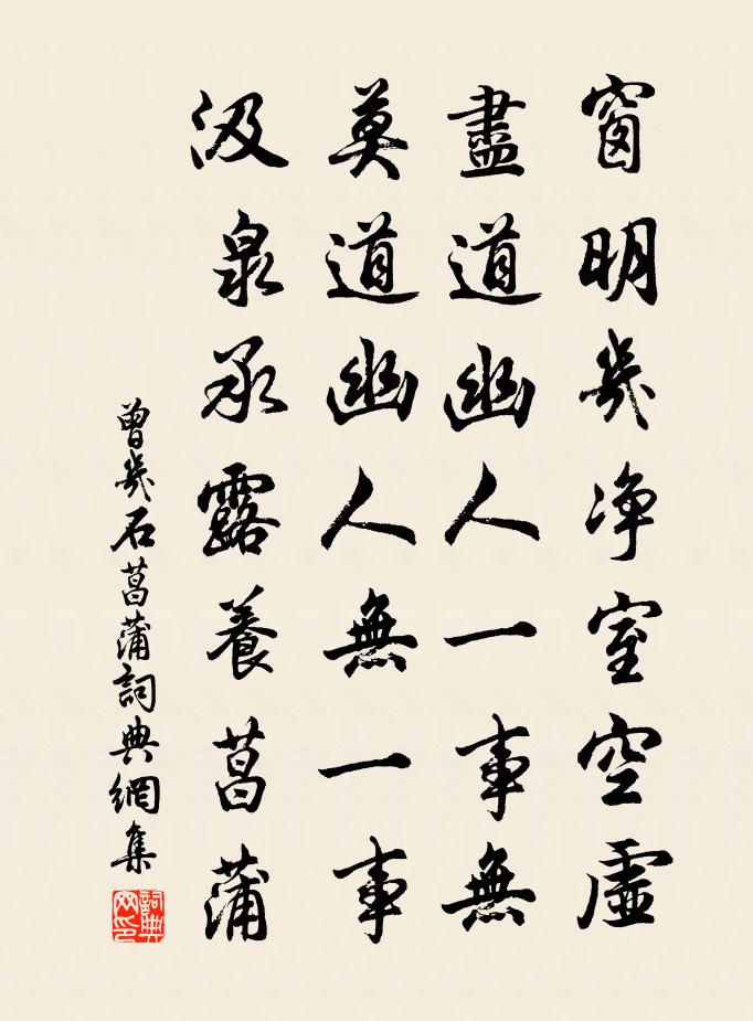 窗明几淨室空虛,盡道幽人一事無。莫道幽人無一事,汲泉承露養菖蒲。