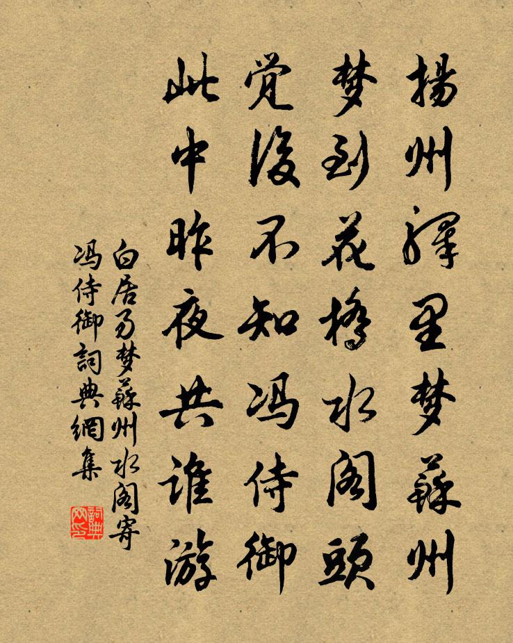 揚州驛里夢蘇州,夢到花橋水閣頭。覺後不知馮侍御,此中昨夜共誰游?