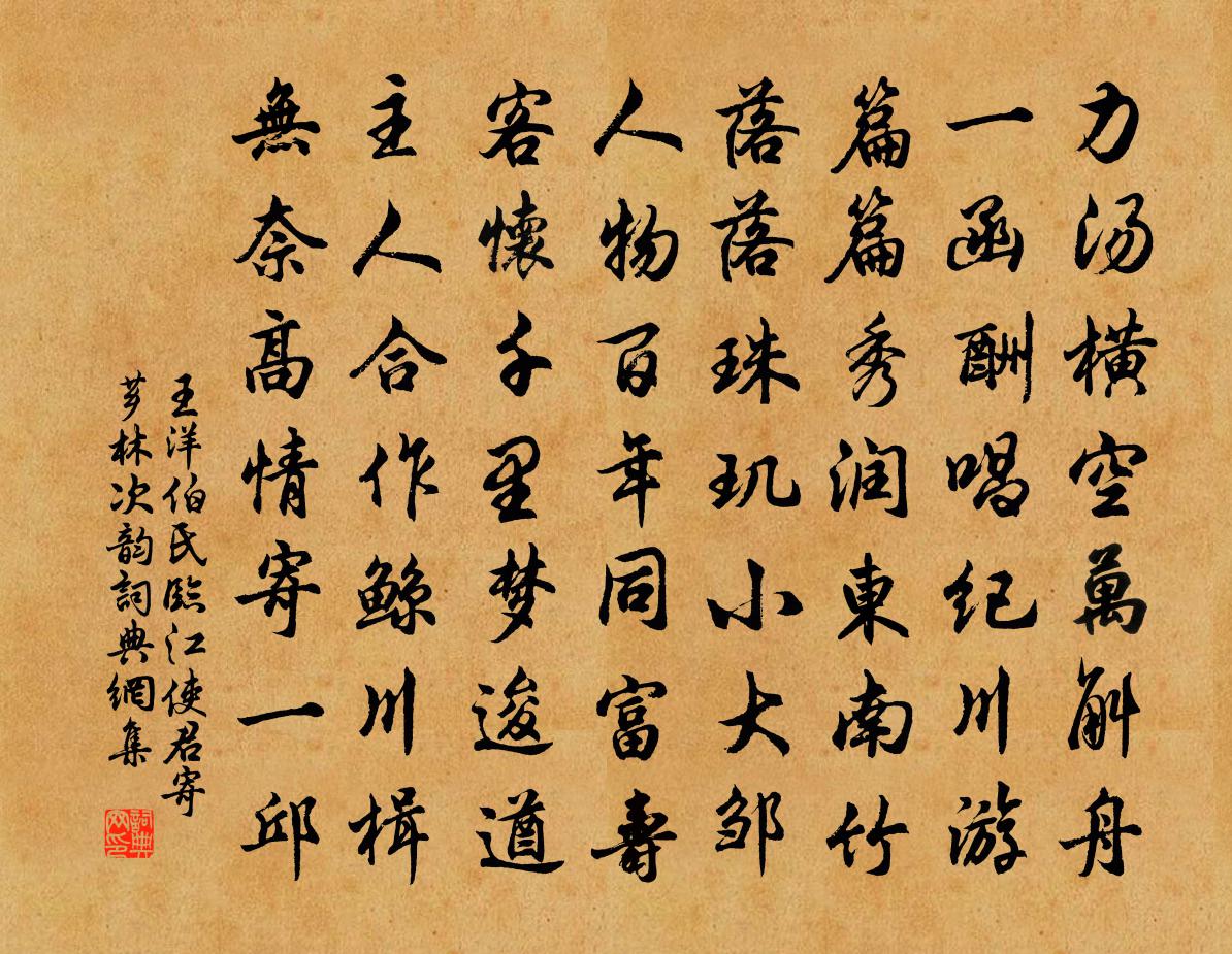 詩詞名句歷史字典書法欣賞書法字典國語詞典說文解字康熙字典古漢語字典標 題 作 者 詩 句 伯氏臨江使君寄薌林次韻作者:王洋 朝代:宋代伯氏臨江使君寄薌林次韻原文力湯橫空萬斛舟。一函酬唱紀川游。篇篇秀潤東南竹,落落珠璣小大鄒。人物百年同富壽,客懷千里夢逡遒。主人合作鯨川楫,無奈高情寄一邱。詩詞問答問:伯氏臨江使君寄薌林次韻的作者是誰?答:王洋問:伯氏臨江使君寄薌林次韻寫於哪個朝代?答:宋代王洋伯氏臨江使君寄薌林次韻書法欣賞伯氏臨江使君寄薌林次韻書法作品詩詞推薦潘何詩賦語佚名〔唐代〕潘緯十年吟古鏡,何涓一夜賦瀟湘。讀道藏蘇軾〔宋代〕嗟余亦何幸,偶此琳宮居。宮中復何有?戢戢千函書。盛以丹錦囊,冒以青霞裾。王喬掌關龠,蚩尤守其盧。乘閒天高高鄭起〔宋代〕天高高兮色青青,夜沉沉兮星熒熒。不知余命何,所系兮何星。複次前韻答潛師蘇轍〔宋代〕憐君古木依岩槁,西江飲盡須彌倒。野花幽草亦何為,嶮韻高篇空自惱。萬點浮溪輒長嘆,一枝過嶺仍夸早。拾香生查子王千秋〔宋代〕春江波面渾,春岸蘆芽嫩。不見木蘭舟,羞帶駢枝杏。輕綃搵淚痕,急雨沖花陣。暗禱紫姑神,覓個巴陵信。夢回羅與之〔宋代〕酒薄難成醉,輕寒襲破衾。夢回孤客枕,聽徹草蟲吟。寂莫三秋夜,淒涼一片心。山林與朝市,底處豁愁襟。和湖州杜員外冬至日白蘋洲見憶李郢〔唐代〕白蘋亭上一陽生,謝朓新裁錦繡成。千嶂雪消溪影淥,幾家梅綻海波清。已知鷗鳥長來狎,可許汀洲獨有名。多愧訴衷情晏幾道〔宋代〕淨揩妝臉淺眉,衫子素梅兒。苦無心緒梳洗,閒淡也相宜。雲態度,柳腰肢,入相思。夜來月底,今日尊前,未當前調(山中清明後一日大雪)李洪〔宋代〕碧澗蒼崖玉四圍。東君剪水散明璣。半開桃杏不勝威。疑是群仙遊閬苑,歌雲舞蝶高飛。珠幢玉節送人歸。偈頌一百二十三首釋崇岳〔宋代〕秋光清淺時,白露和煙島。良哉觀世音,全身入荒草。一鏃破三關,低頭何處討。贈胡泟將軍王建〔唐代〕書生難得是金吾,近日登科記總無。半夜進儺當玉殿,未明排仗到銅壺。朱牌面上分官契,黃紙頭邊押敕符。恐要夏日山居好十首舒岳祥〔宋代〕夏日山居好,清風報斷梅。林深蚊卻退,山合鳥飛回。一霎過雲雨,數聲深水雷。繞園尋蠹筍,聊以薦山杯。遊仙一首劉克莊〔宋代〕懶為隨駕處士,寧作閉門隱君。跨青牛導紫氣,乘黃鶴上白雲。江流晁公溯〔宋代〕江流日日上平蕪,細徑侵沙漸欲無。裊裊紫苞開露筍,森森青節亂風蒲。晴川默數千艘過,深硤遙看一水趨。傳道歷代詩西晉楊簡〔宋代〕晉人司馬氏,相魏敢專權。壹師昭不帝,追謚宣景文。武帝受魏禪,惠帝實童昏。劉聰害懷愍,由此失中原。菩薩蠻·牡丹含露真珠佚名〔宋代〕牡丹含露真珠顆,美人折向庭前過。含笑問檀郎,花強妾貌強?檀郎故相惱,須道花枝好。一面發嬌嗔,碎挪花打太白戲聖俞歐陽修〔宋代〕開元無事二十年,五兵不用太白閒。太白之精下人間,李白高歌蜀道難。蜀道之難難於上青天,李白落筆生雲煙。用韻簡如晦許月卿〔宋代〕龍溪毓秀自平陽,千載詩葩分外香。錦里篤生天下士,玉堂曾看甲科郎。龍溪季子代無乏,鶚薦明年定破荒。桂樹黃西有以清江李侯書來袁見招不果就既去西有趙文〔宋代〕地僻谷自淳,此世有羲軒。行攜二三子,讀書秋樹根。不擬山水窟,忽枉君侯轓。攜持貴人意,仆口不憚煩。居然中興歌鮑照〔南北朝〕北出湖邊戲。前還苑中游。飛縠繞長松。馳管逐波流。名句推薦柳外斜陽,水邊歸鳥,隴上吹喬木。辛棄疾《念奴嬌·登建康賞心亭呈史致道留守》 今日聽君歌一曲,暫憑杯酒長精神。劉禹錫《酬樂天揚州初逢席上見贈》 責人之心責己,恕己之心恕人。佚名《增廣賢文·上集》 悅其名而喪其實。尹文《尹文子·大道上》 戚施不可使仰左丘明《國語·晉語·胥臣論教誨之力》 桃花三十六陂,鮫宮睡起,嬌雷乍轉。吳文英《瑞龍吟·德清清明競渡》 士有妒友,則賢交不親;君有妒臣,則賢人不至。荀子《荀子·大略》 寒雨連江夜入吳,平明送客楚山孤。王昌齡《芙蓉樓送辛漸》 知臣莫若於君,知子莫若於父。魏徵《隋書·帝紀·卷二》 百結愁腸郁不開,此生惆悵異鄉來。秋瑾《九日感賦》